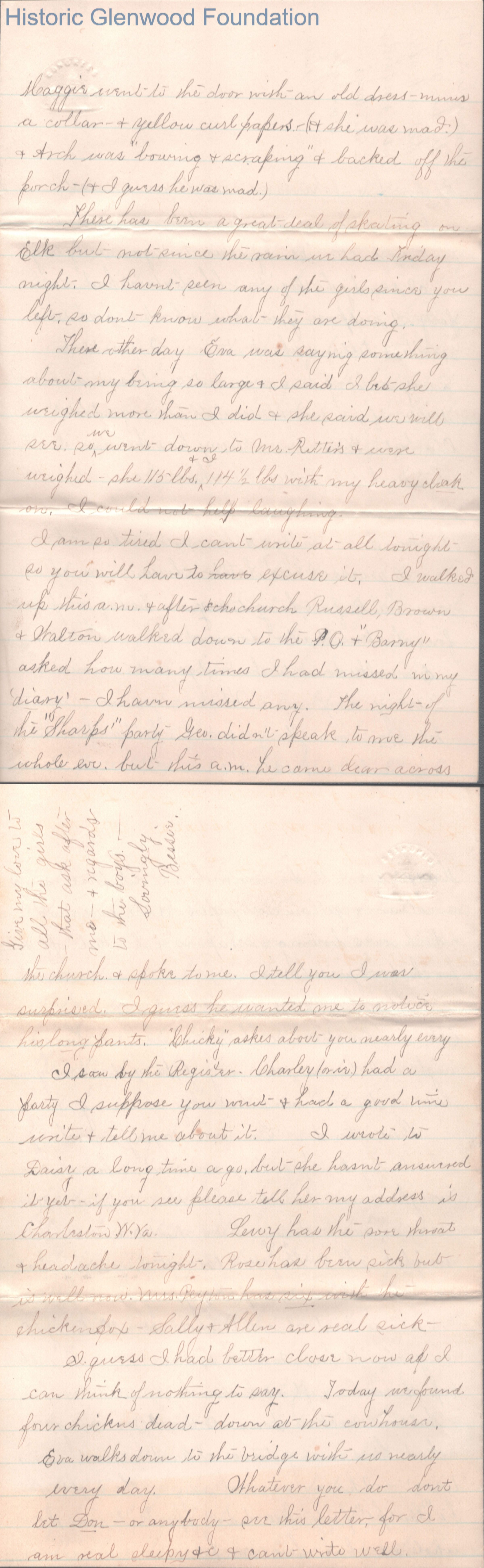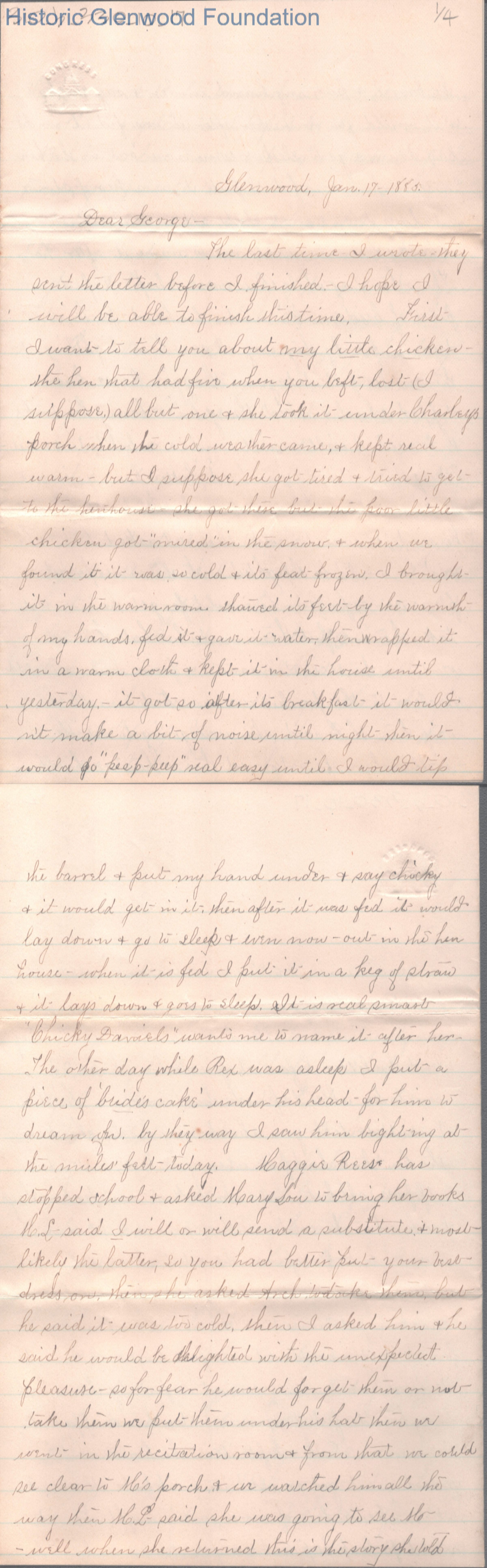 Four-page letter to George W. Summers from his sister Elizabeth S. Quarrier, Jan 17, 1885.