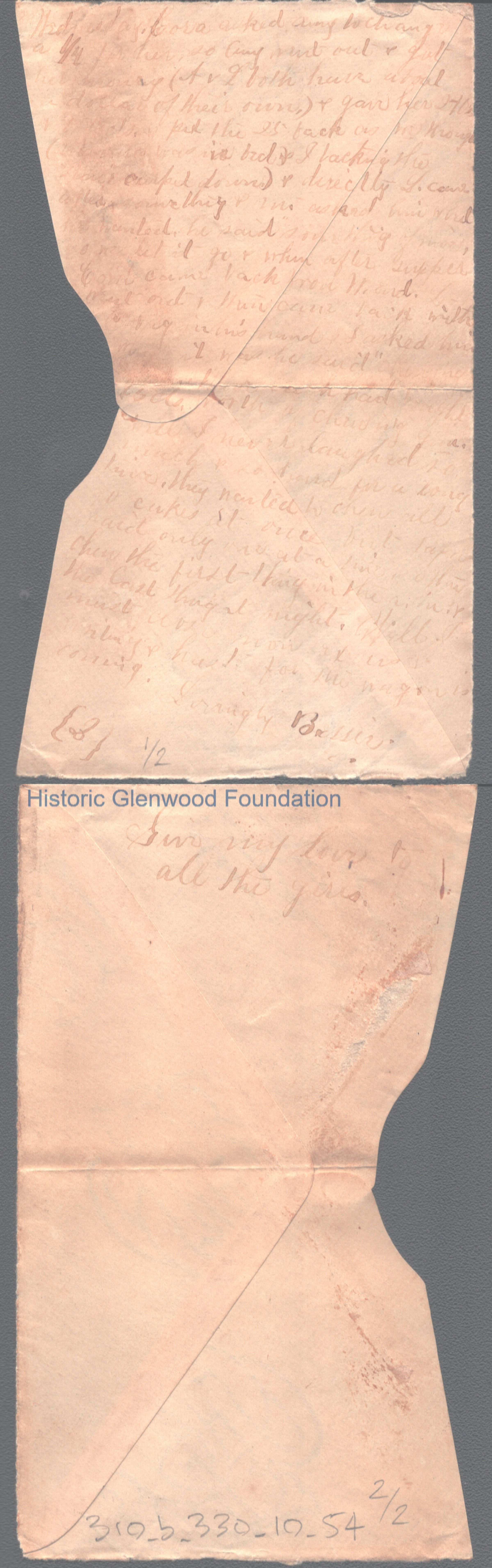 Letter on back of envelope to George W. Summers from his sister Elizabeth S. Quarrier, no date.