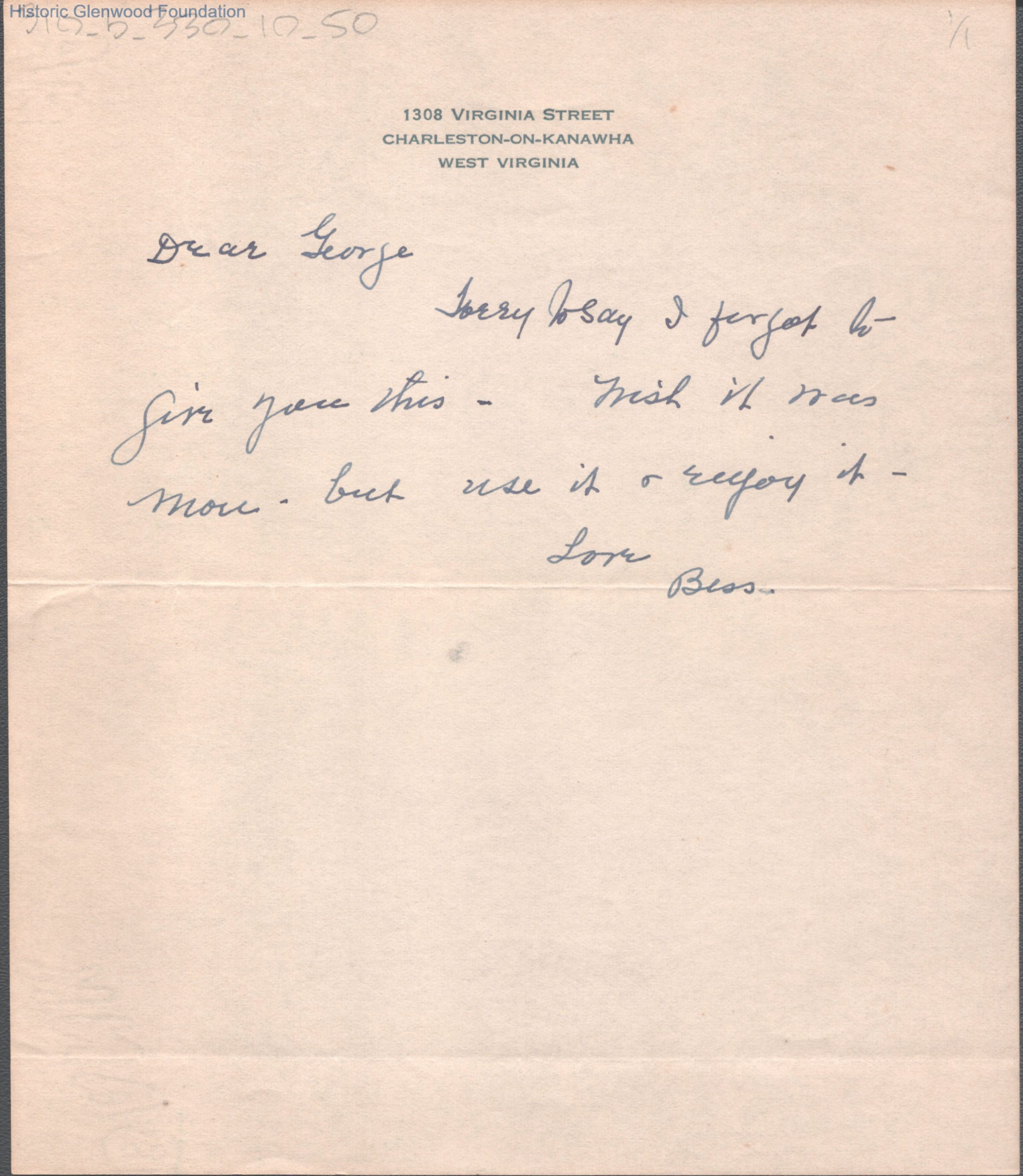 George W. Summers from Elizabeth S. Quarrier, no date