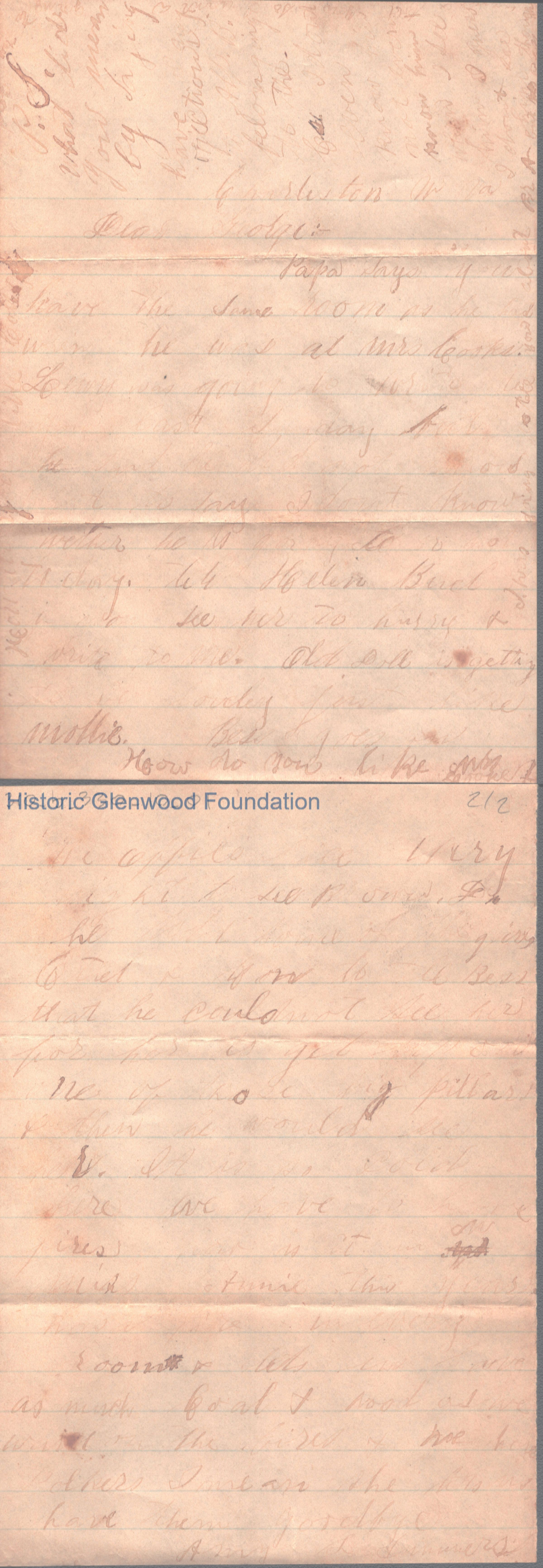 Two-page letter to George W. Summers from his sister Elizabeth S. Quarrier, no date.