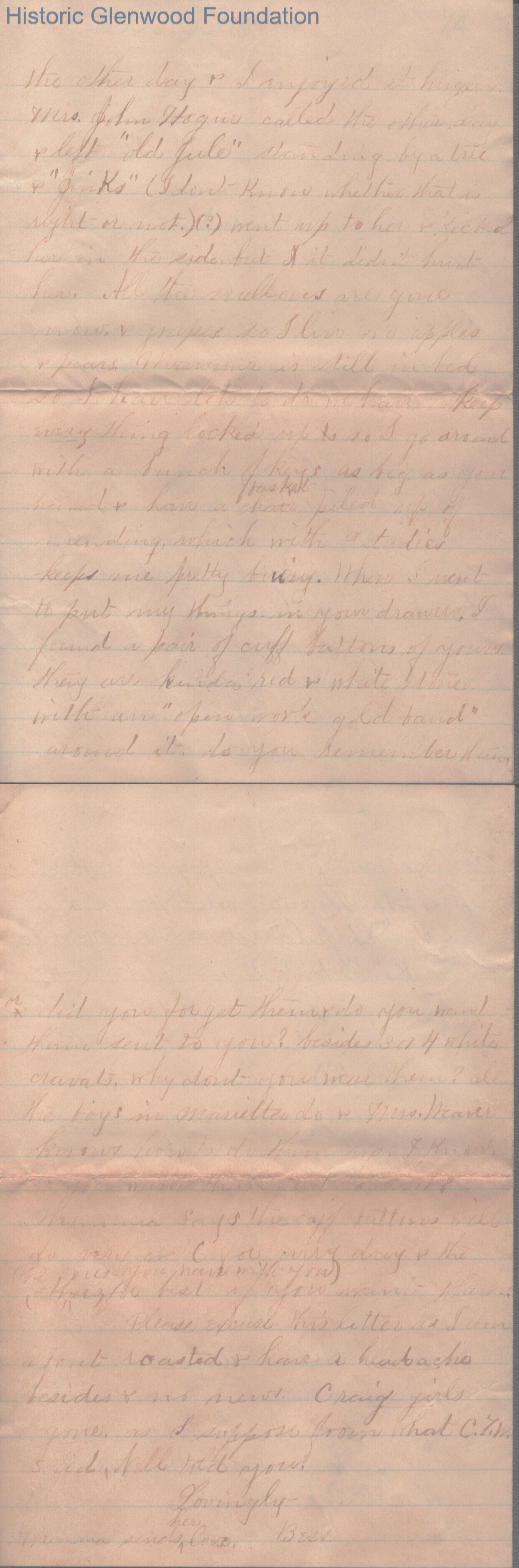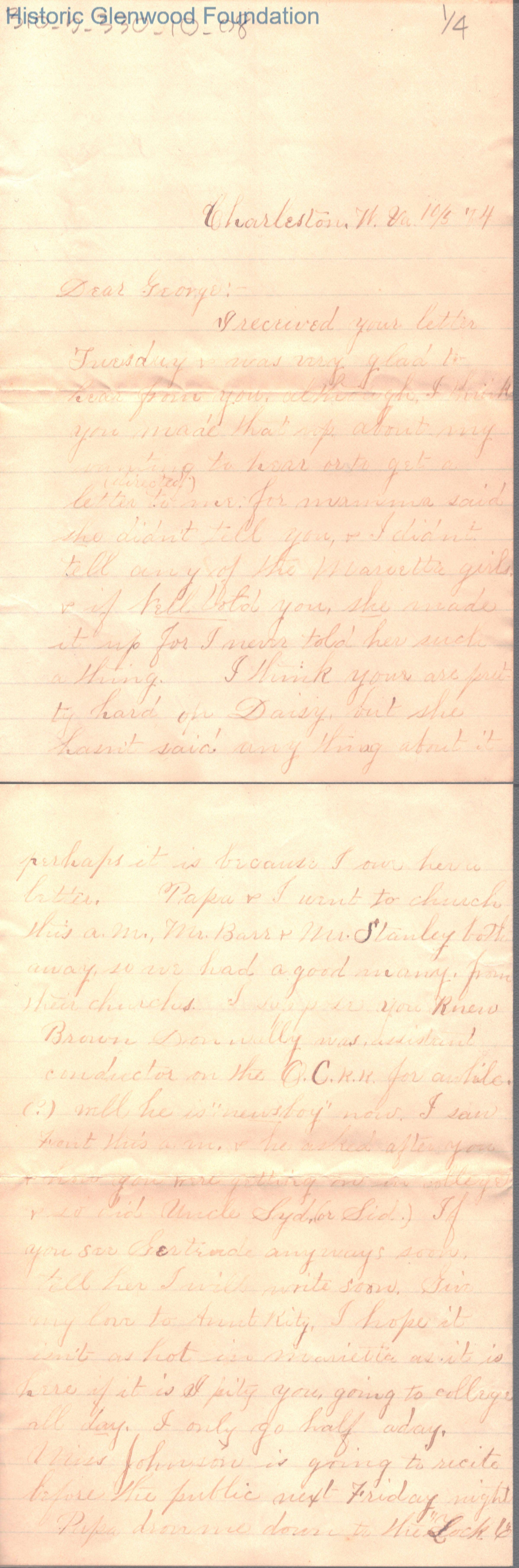 Four-page letter to George W. Summers from his sister Elizabeth S. Quarrier, Oct 5, 1884.