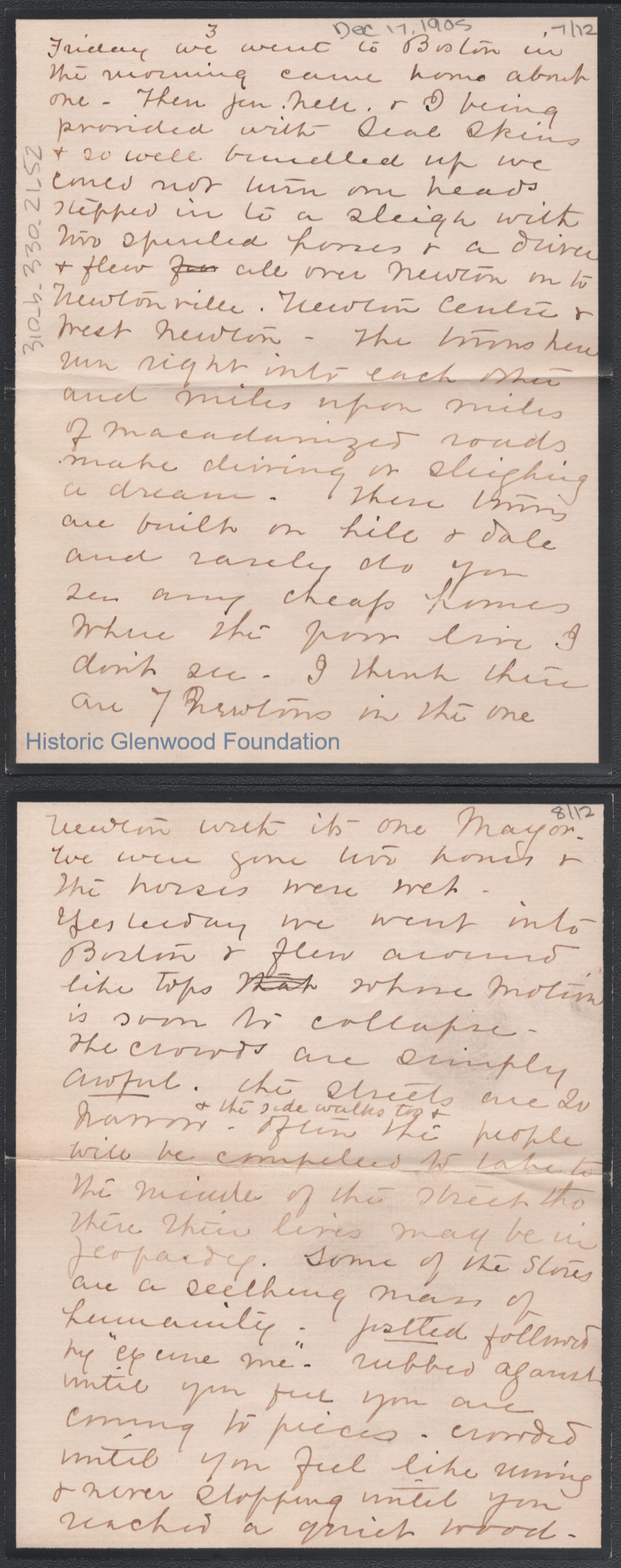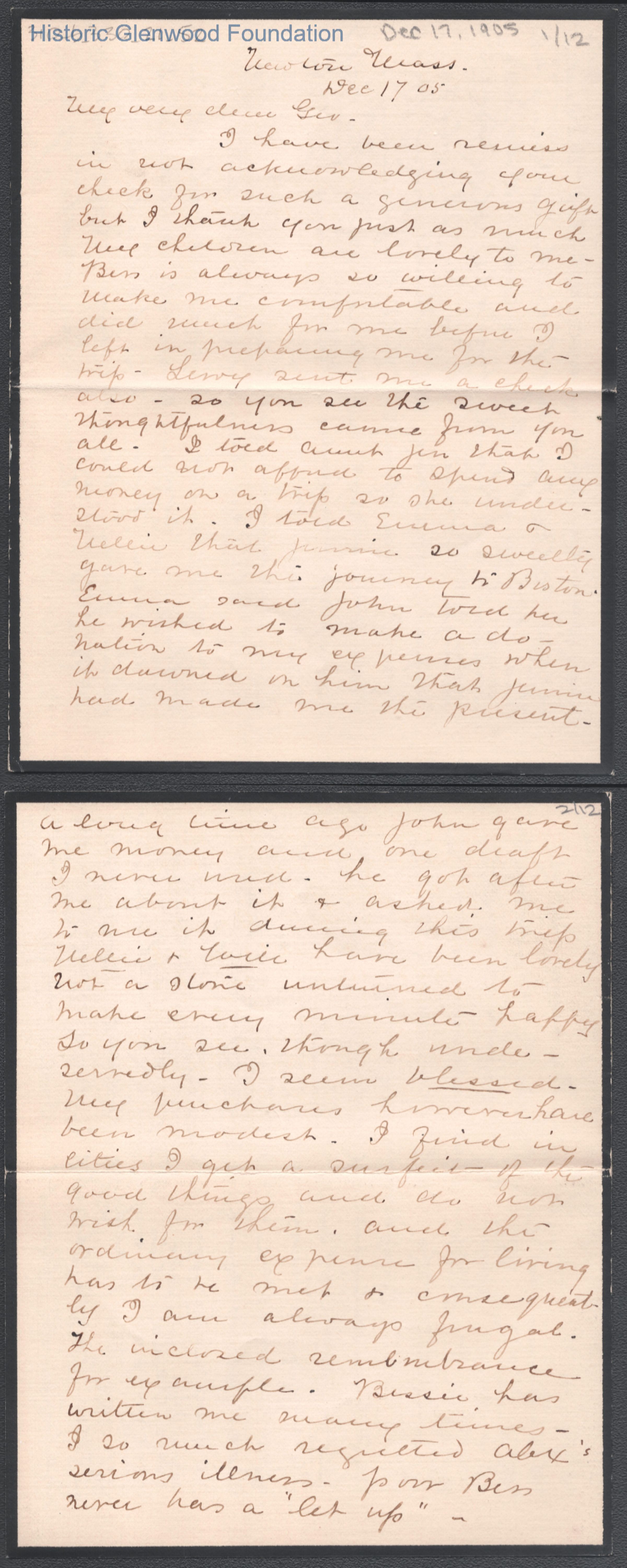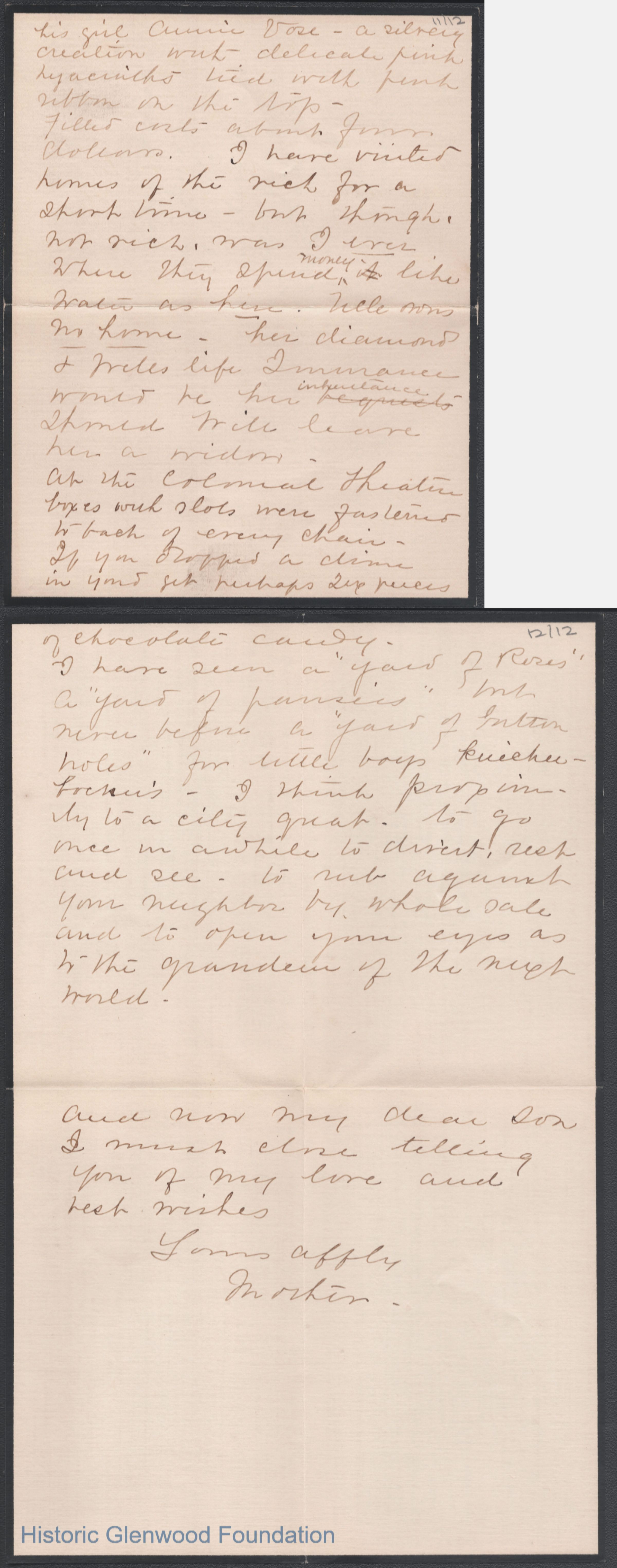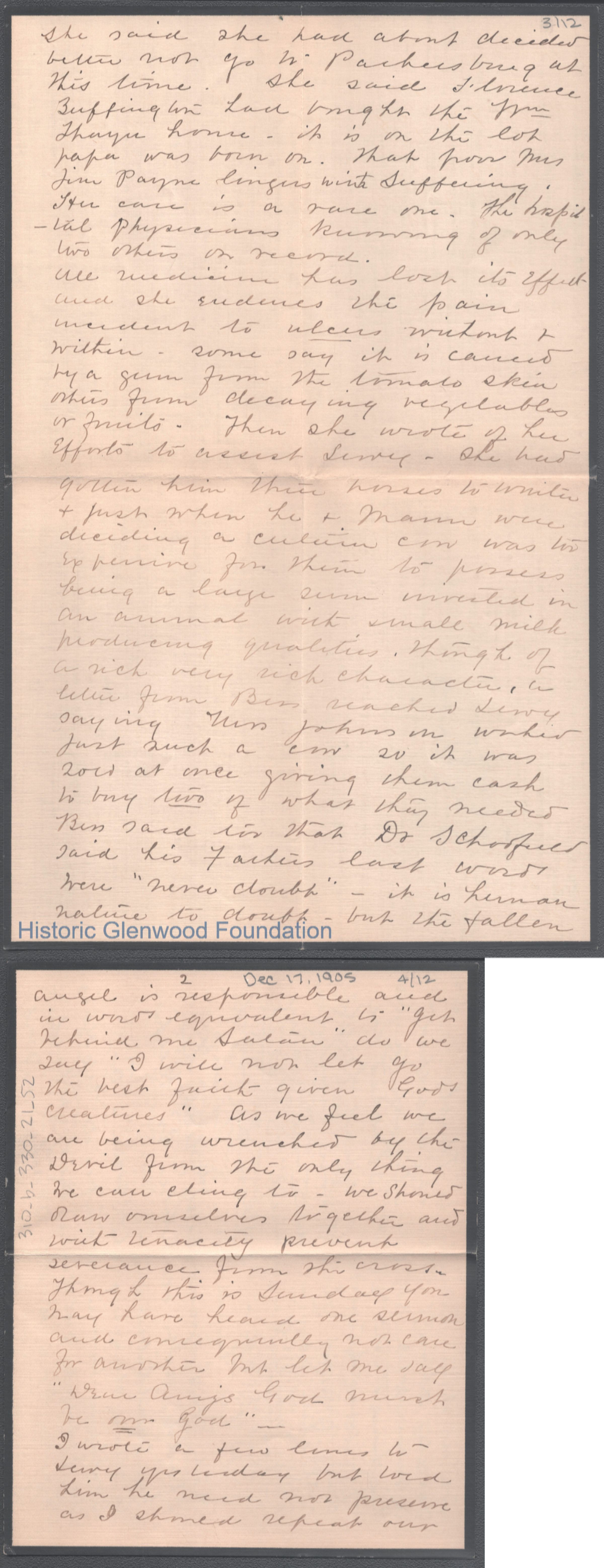 Twelve-page letter to George W. Summers from his mother Lucy W. Summers, Dec 17, 1905.