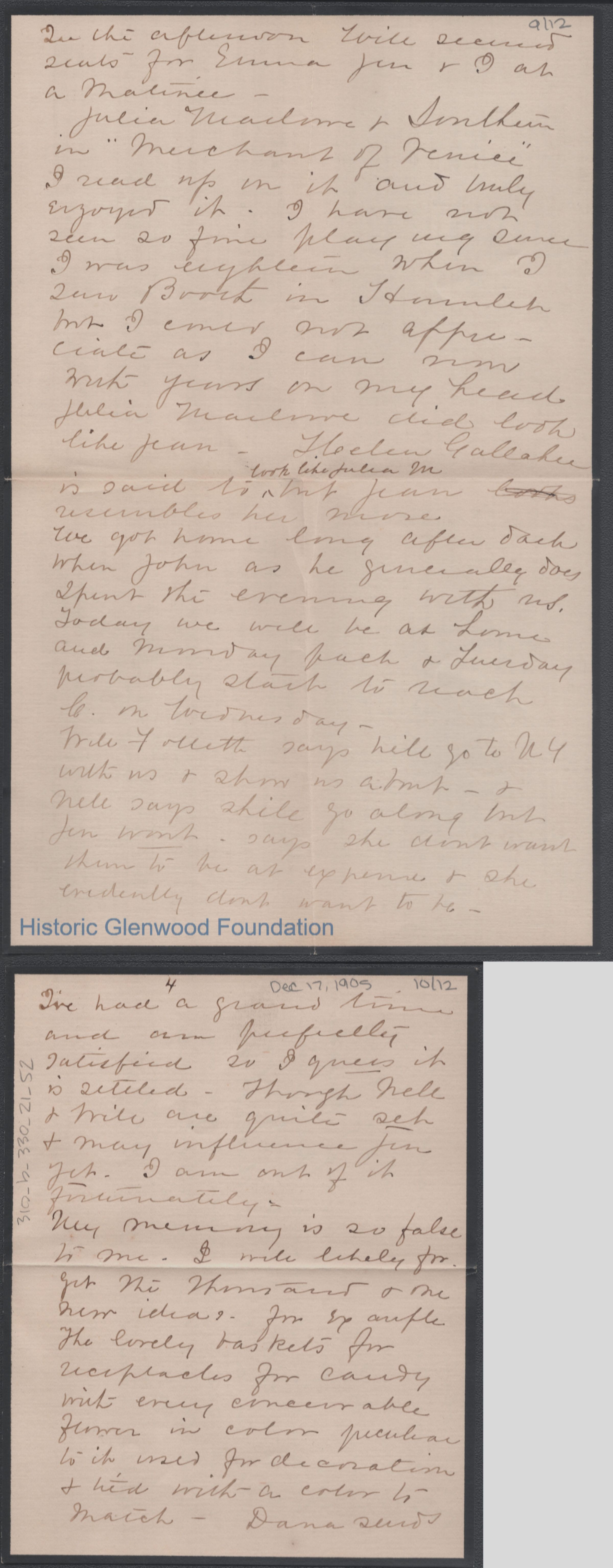 George W. Summers from Lucy W. Summers, Dec 17, 1905