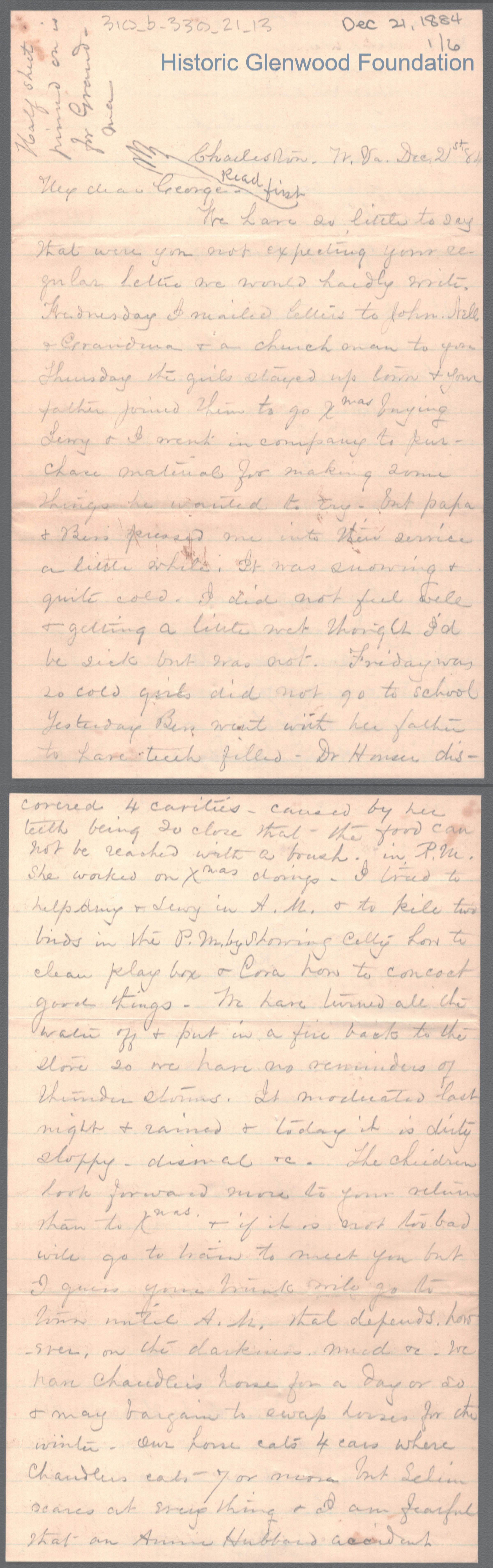 George W. Summers from Lucy W. Summers, Dec 21, 1884
