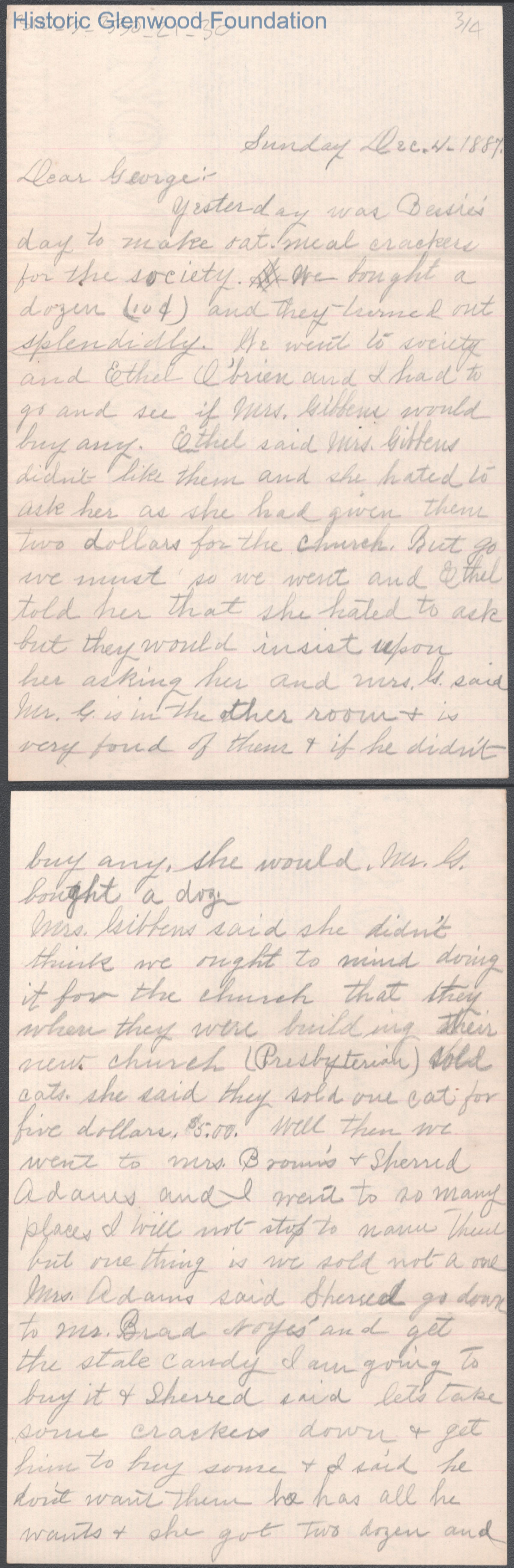 George W. Summers from Lucy W. Summers, Dec 4, 1887