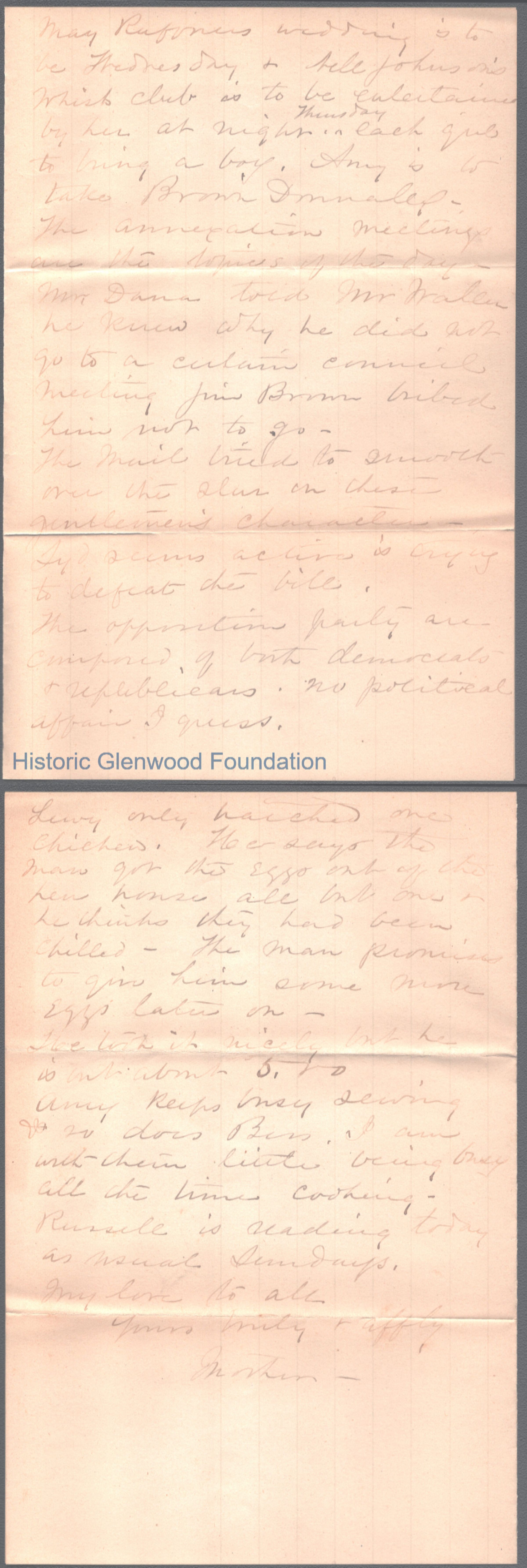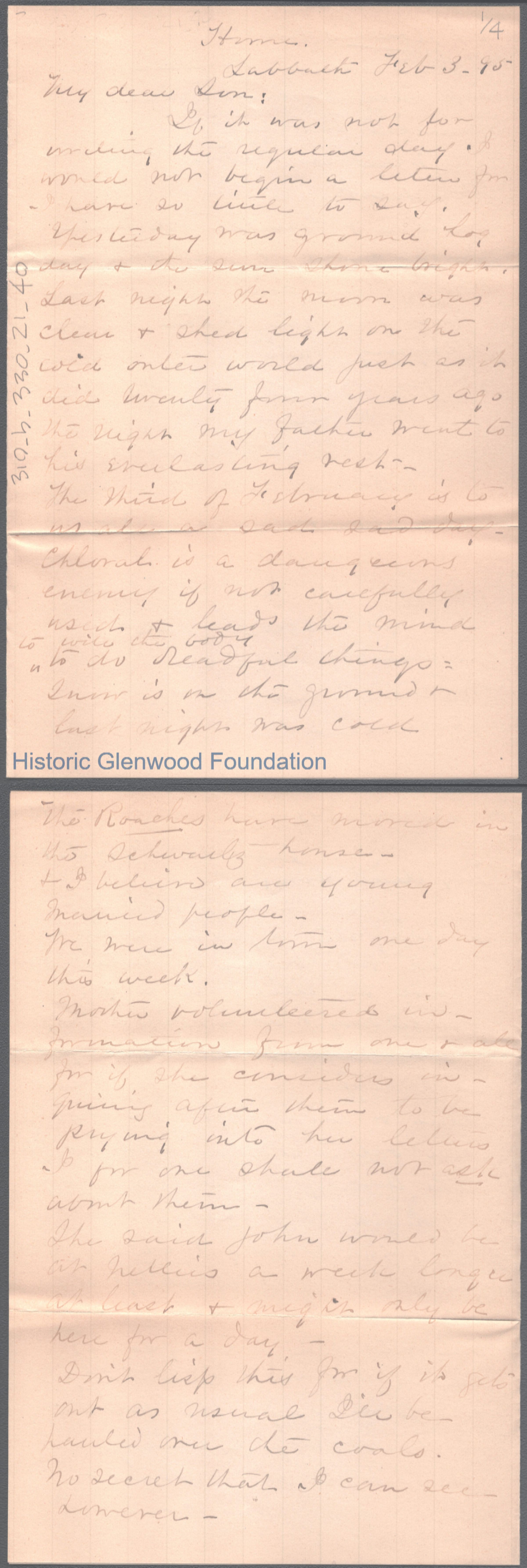 Four-page letter to George W. Summers from his mother Lucy W. Summers, Feb 3, 1895.