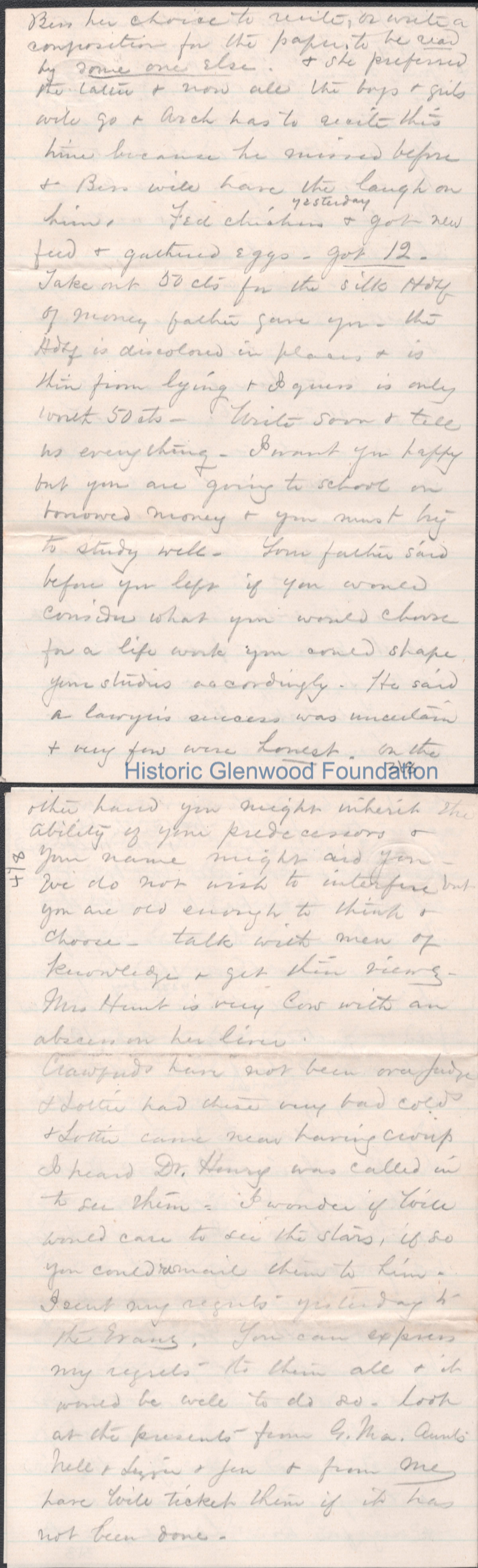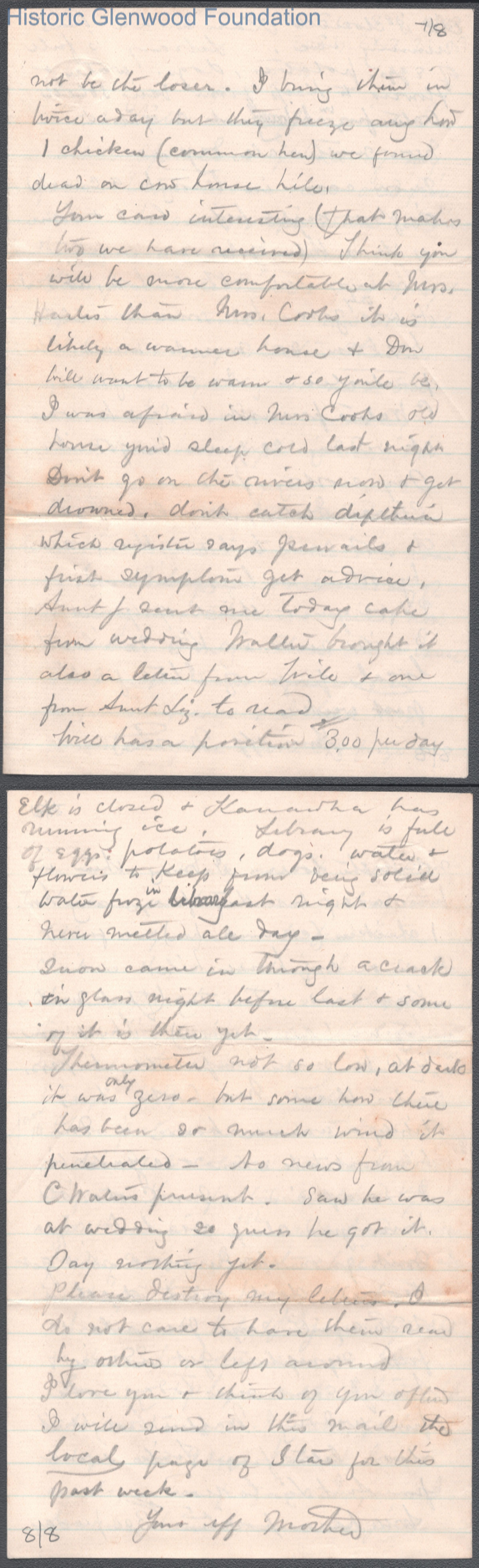 Eight-page letter to George W. Summers from his mother Lucy W. Summers, Jan 6, 1886.