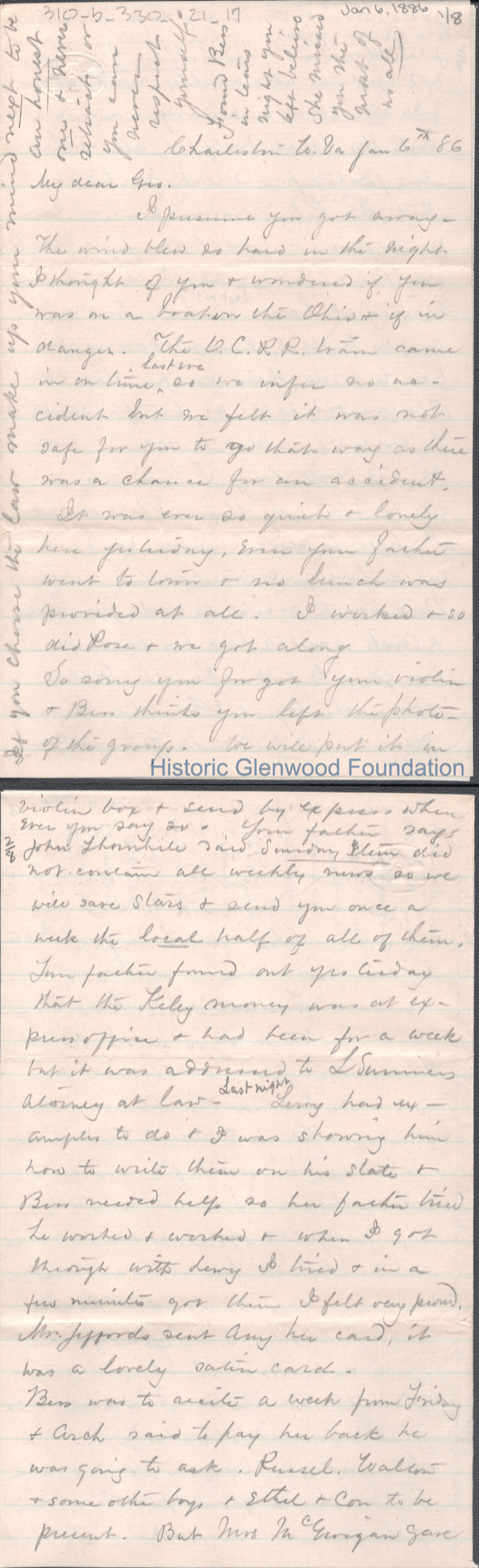George W. Summers from Lucy W. Summers, Jan 6, 1886