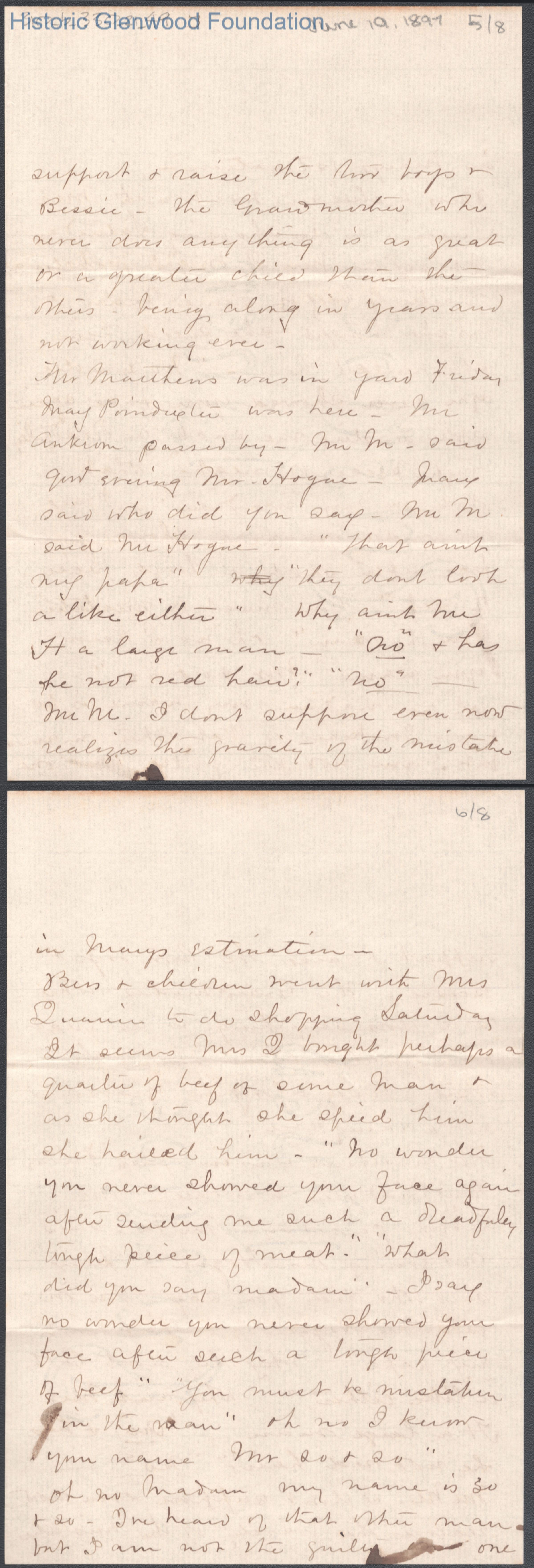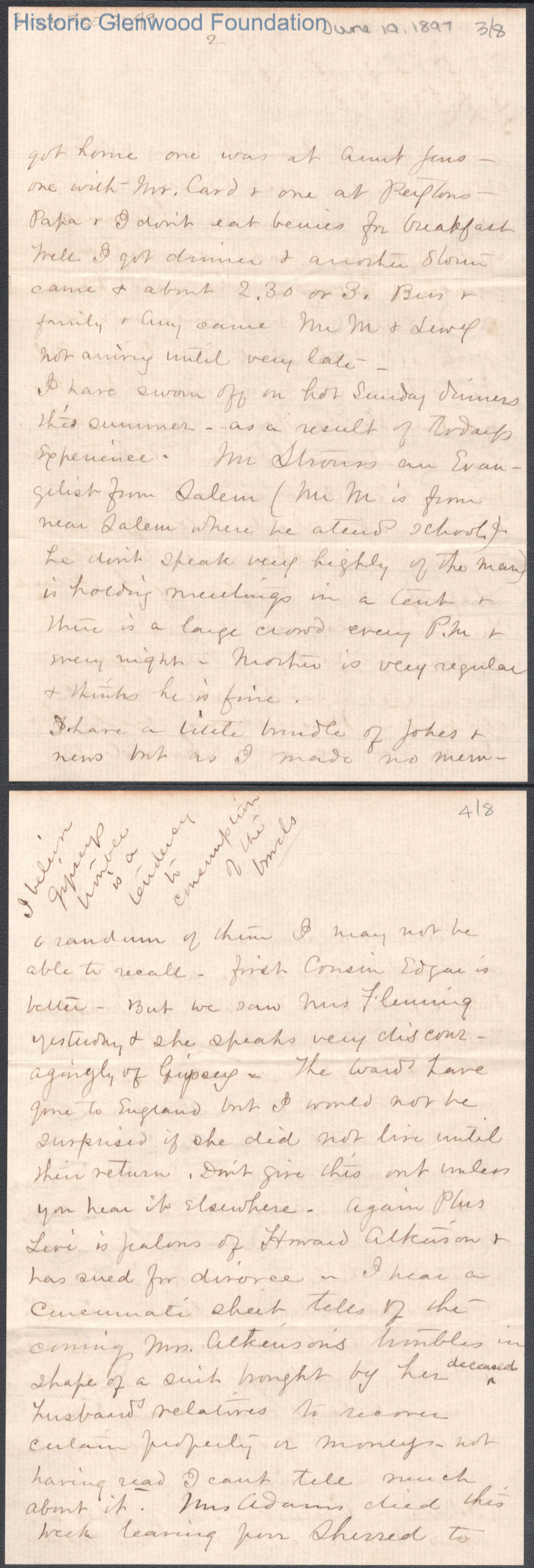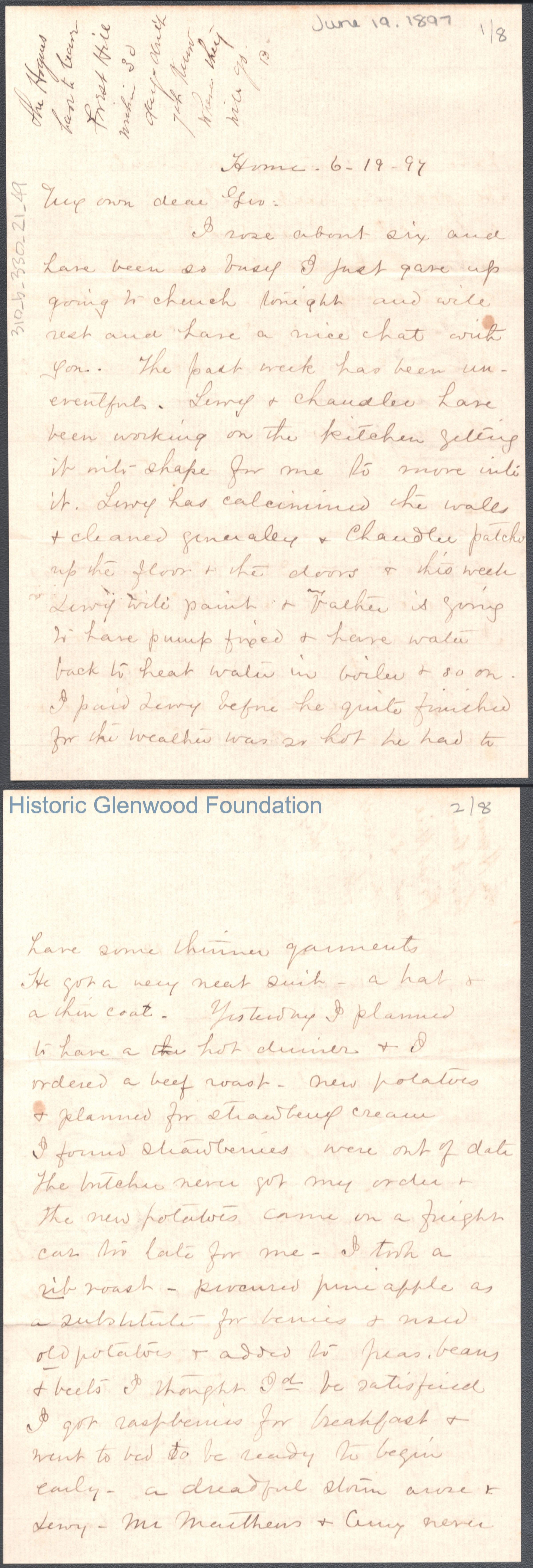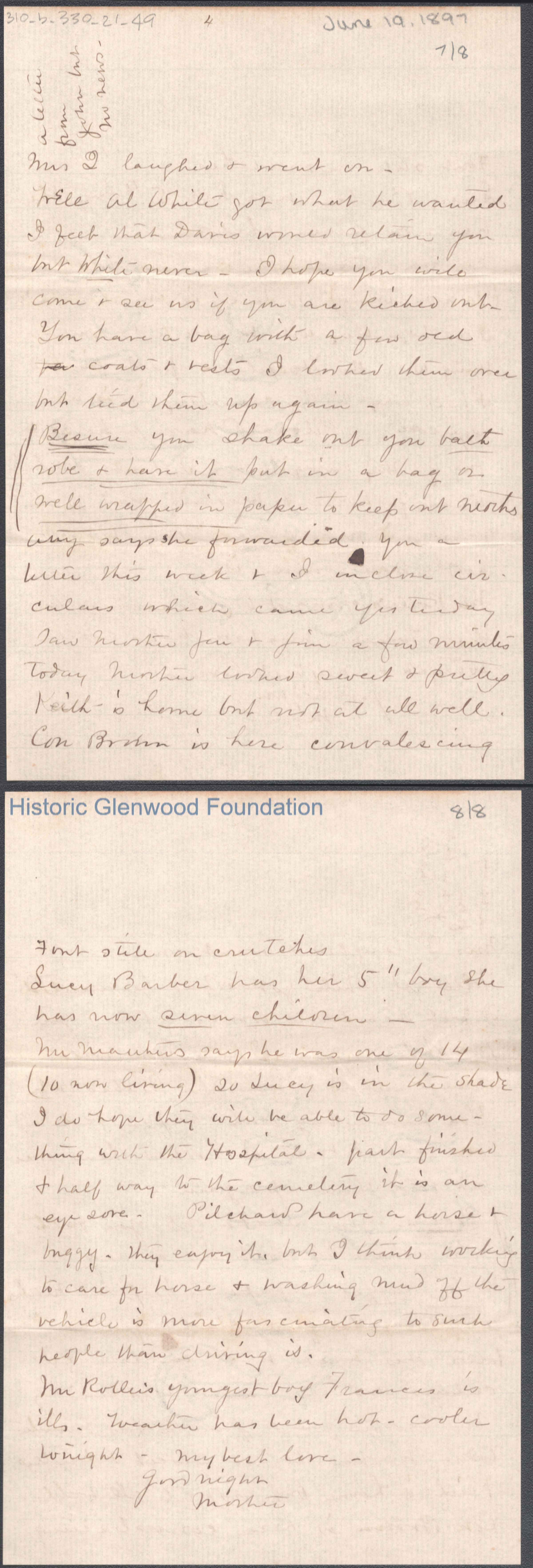 Eight-page letter to George W. Summers from his mother Lucy W. Summers, Jun 19, 1897.