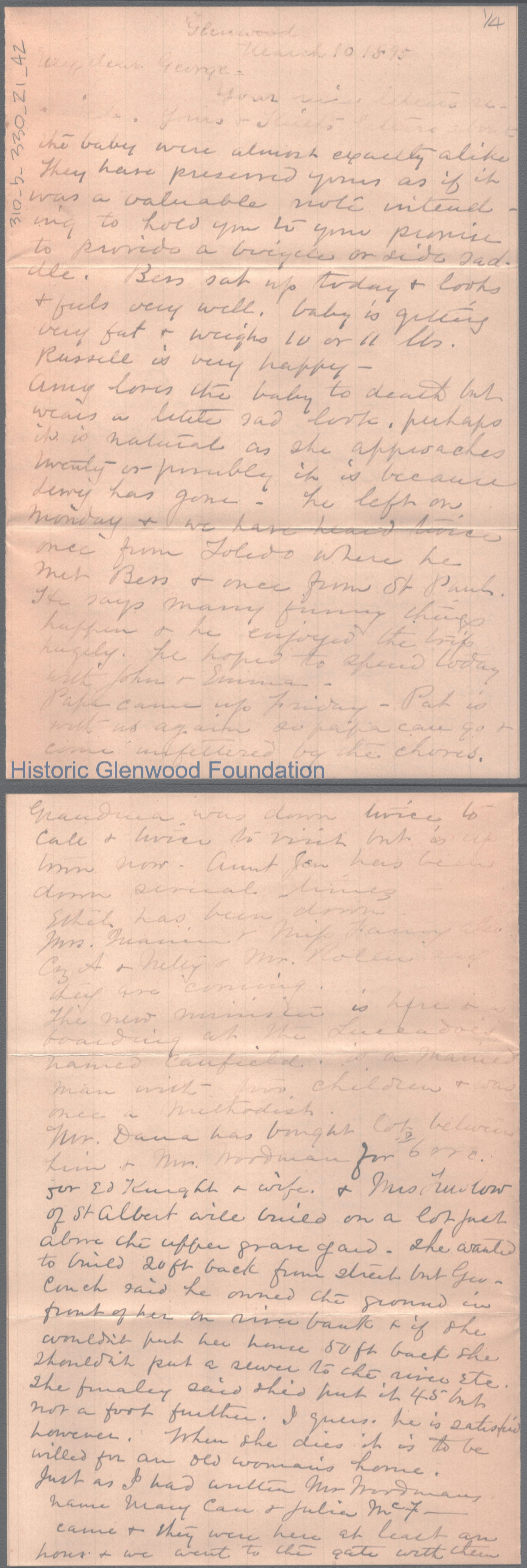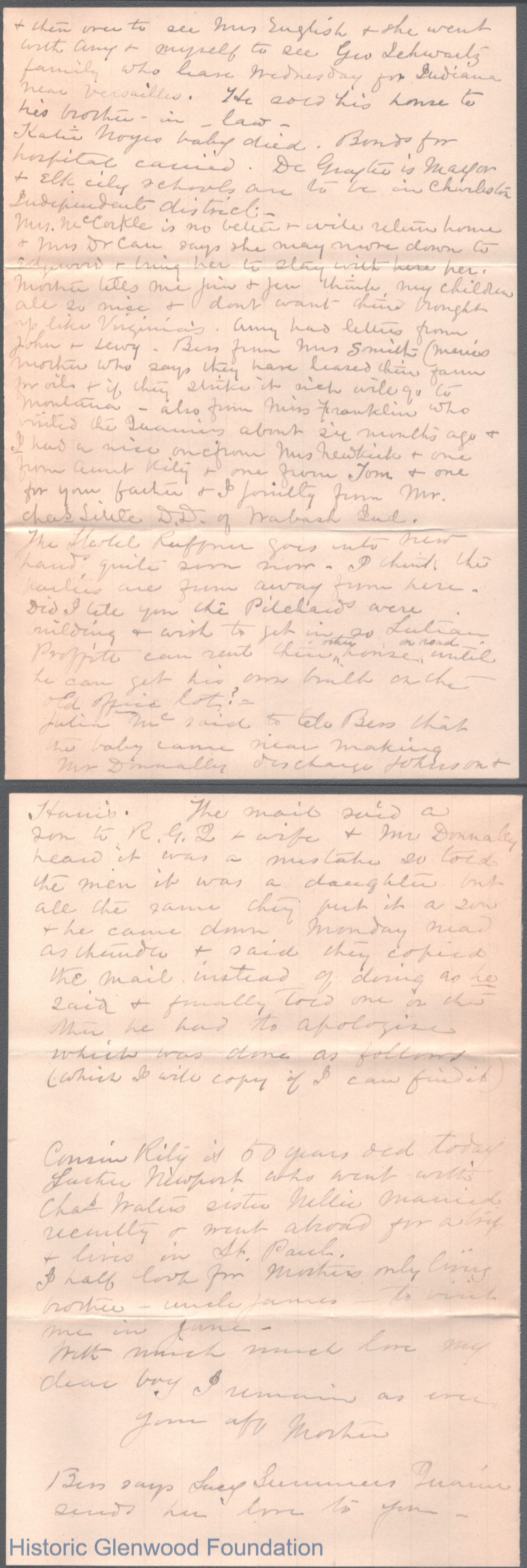 Four-page letter to George W. Summers from his mother Lucy W. Summers, Mar 10, 1895.