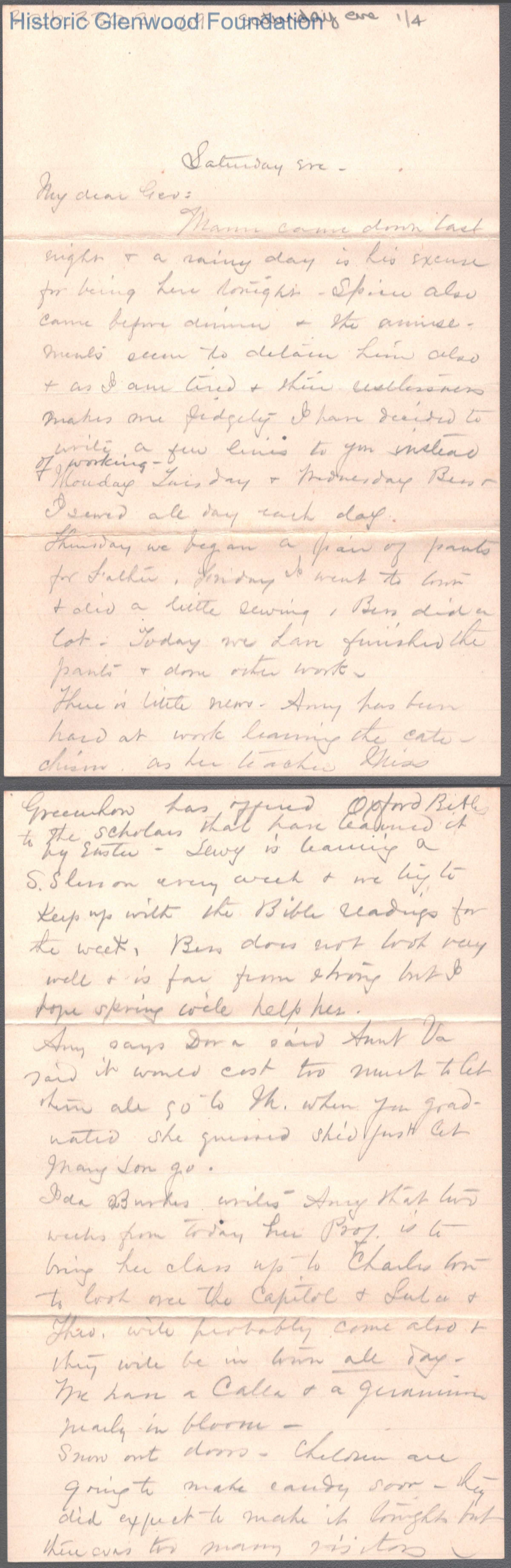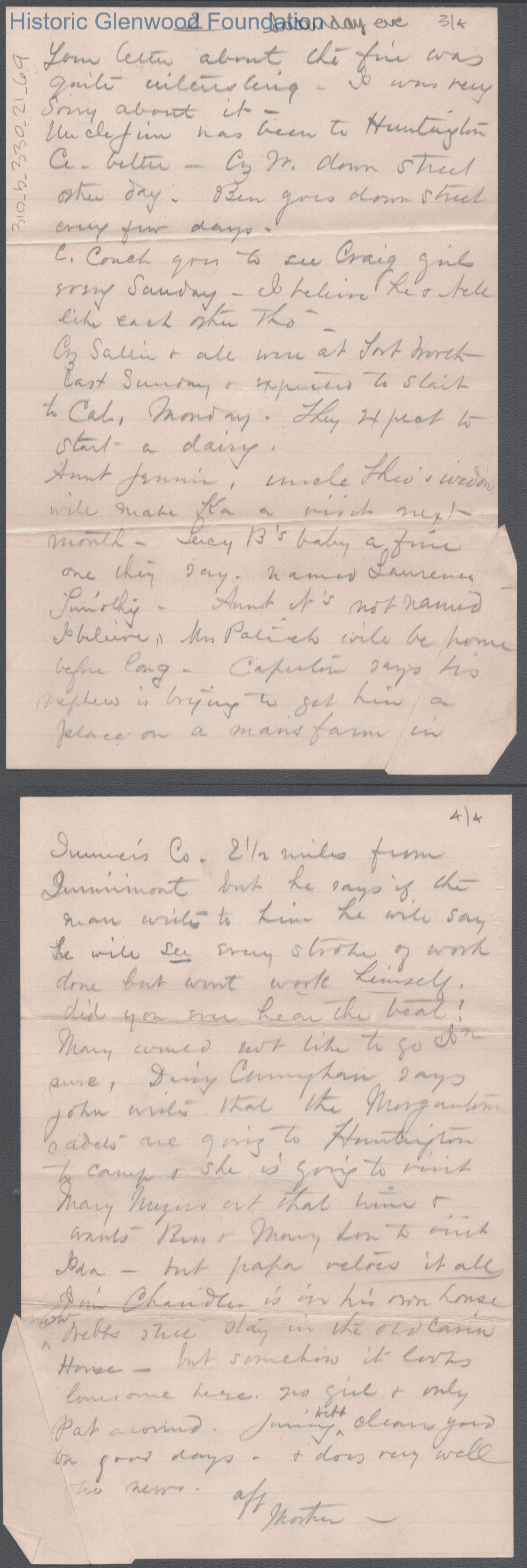 Four-page letter to George W. Summers from his mother Lucy W. Summers, no date.