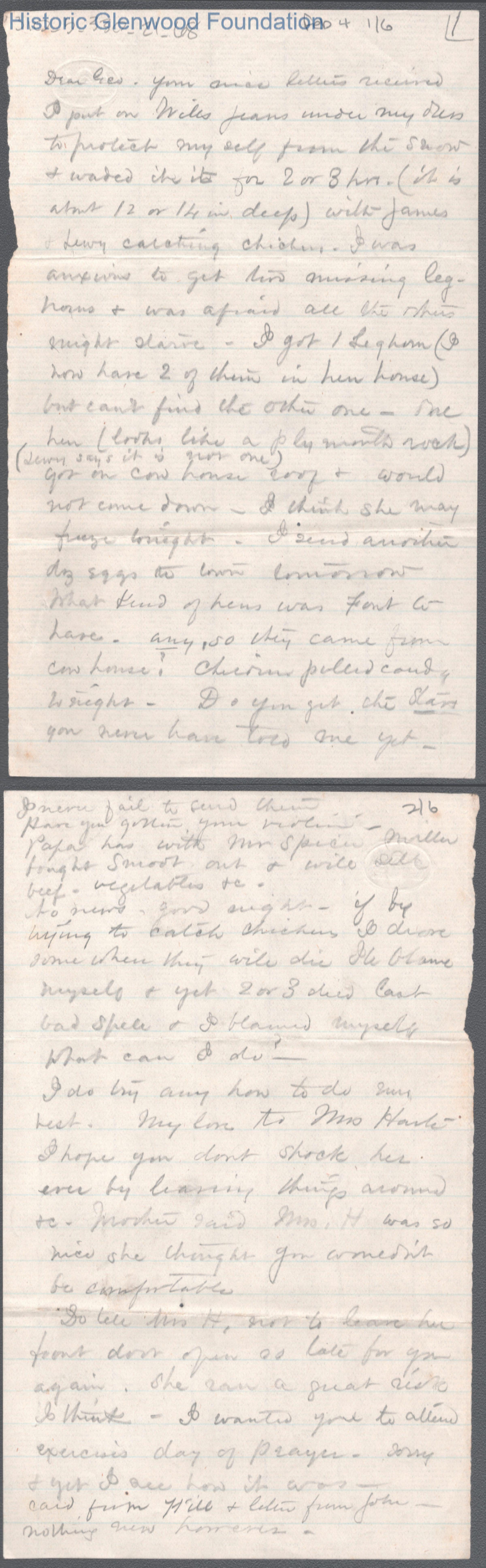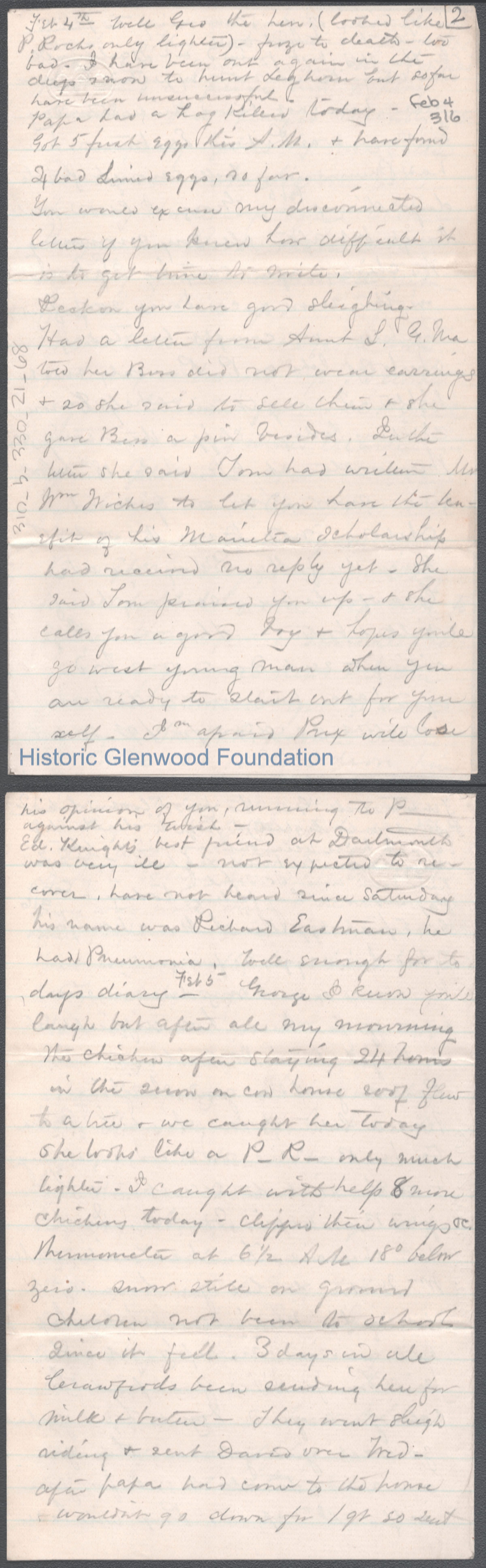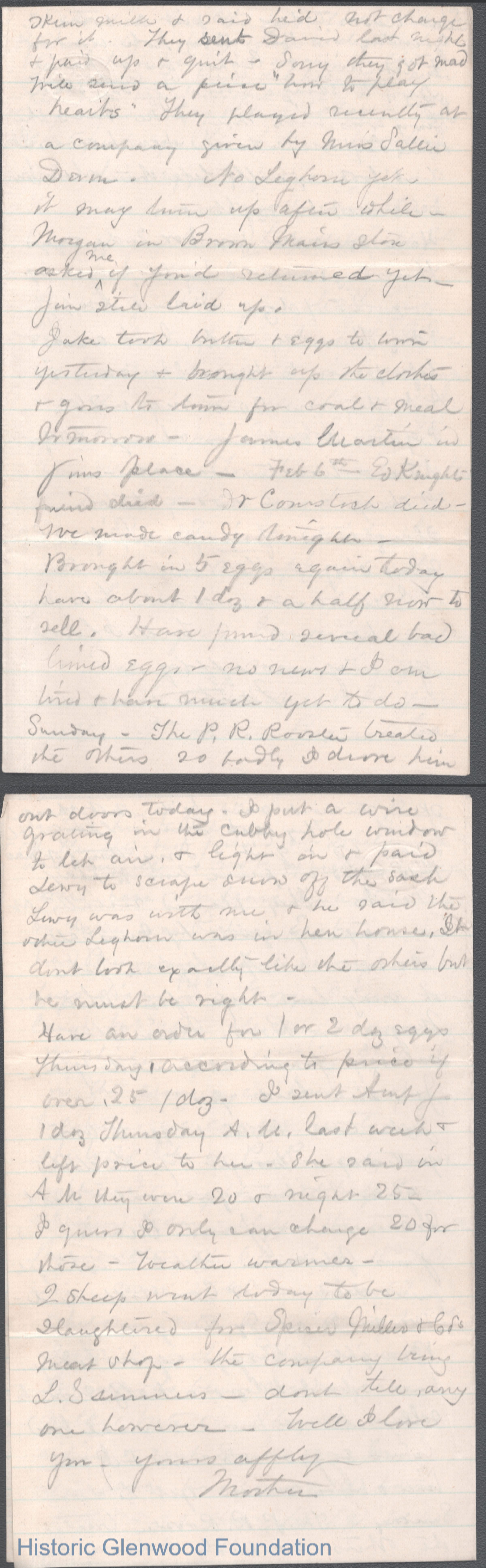 Six-page letter to George W. Summers from his mother Lucy W. Summers. Dated Feb 4, year unknown.