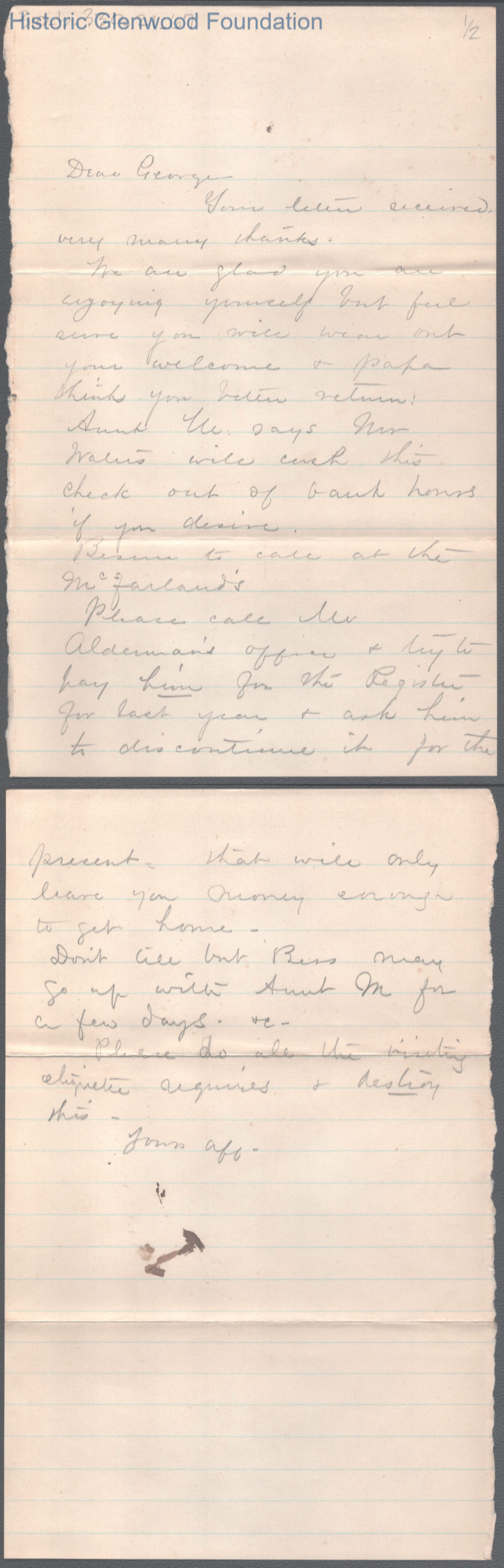 George W. Summers from Lucy W. Summers, no date