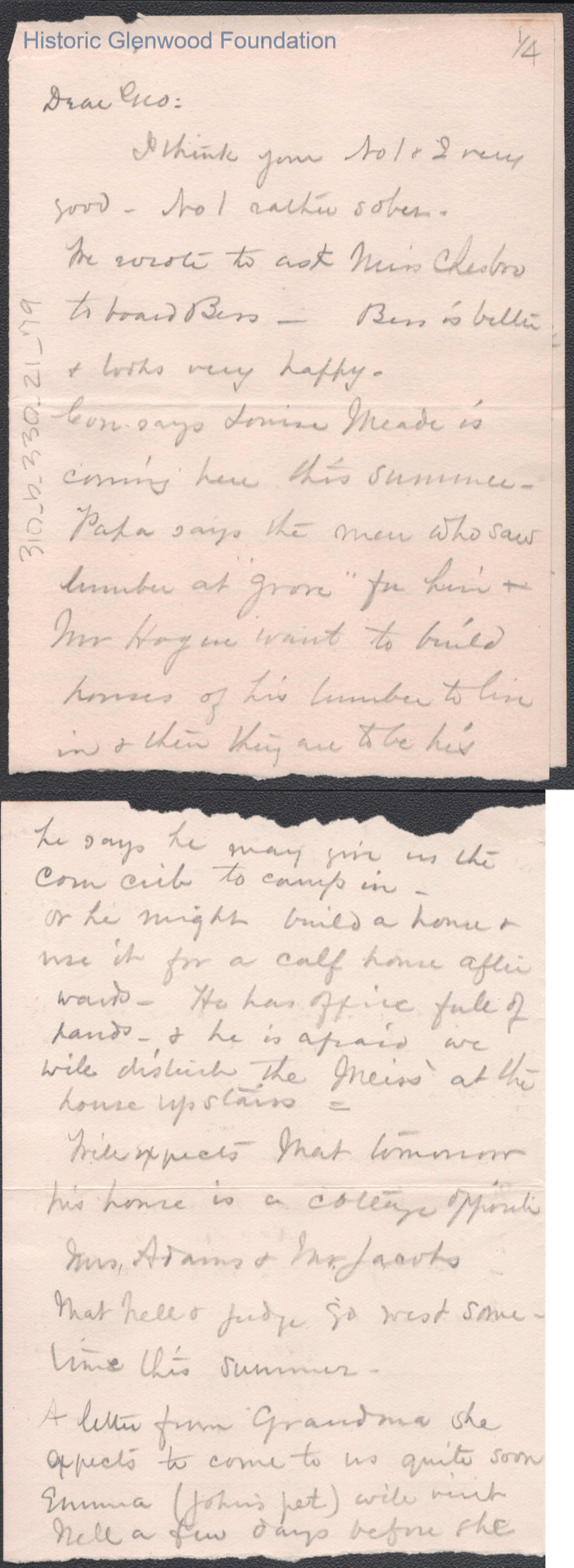 Four-page letter to George W. Summers from his mother Lucy W. Summers, no date.
