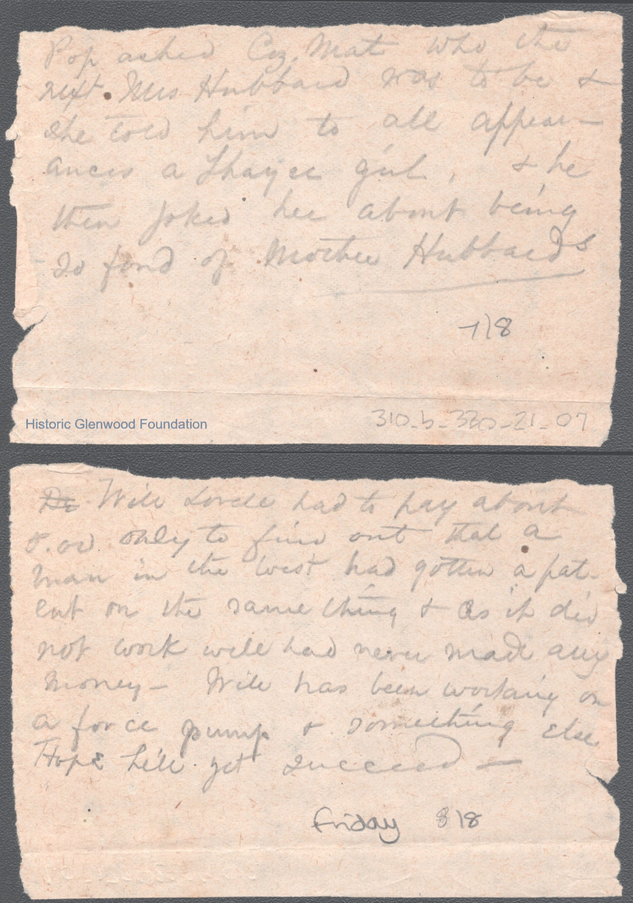 George W. Summers from Lucy W. Summers, no date