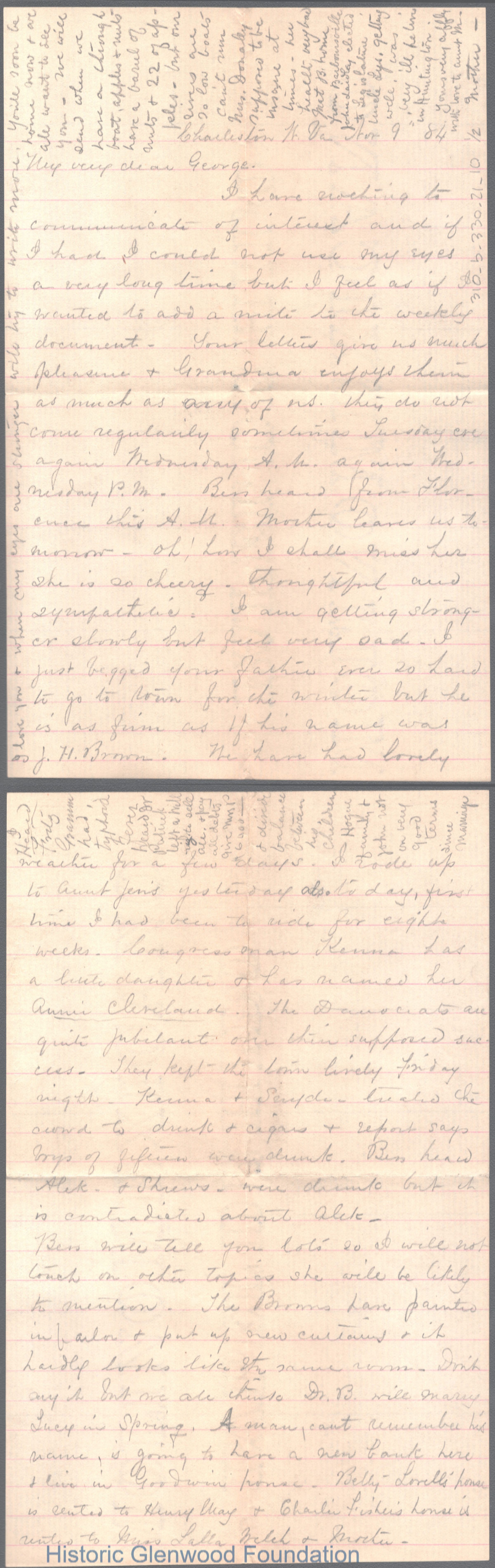 Two-page letter to George W. Summers from his mother Lucy W. Summers, Nov 9, 1884.
