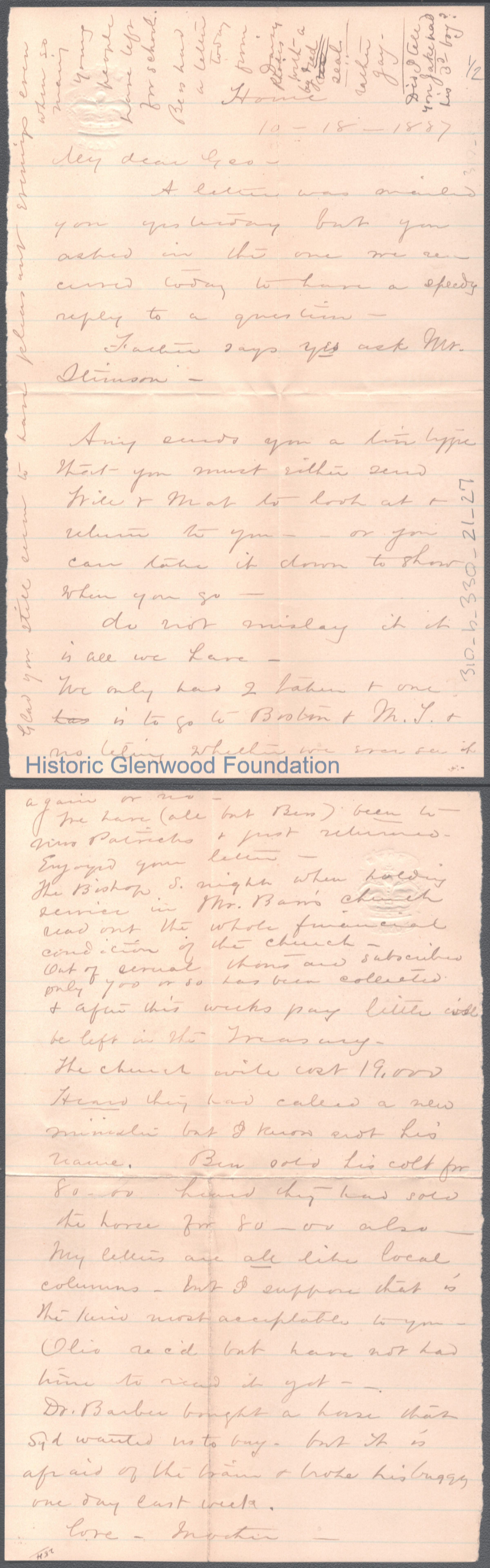 George W. Summers from Lucy W. Summers, Oct 18, 1887