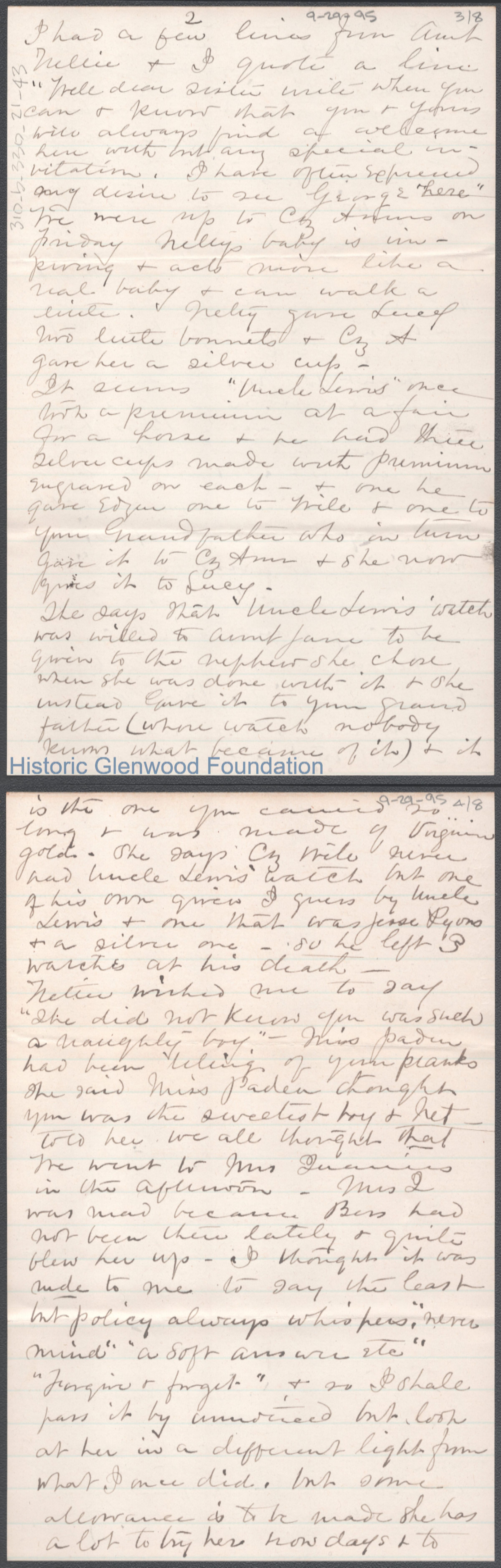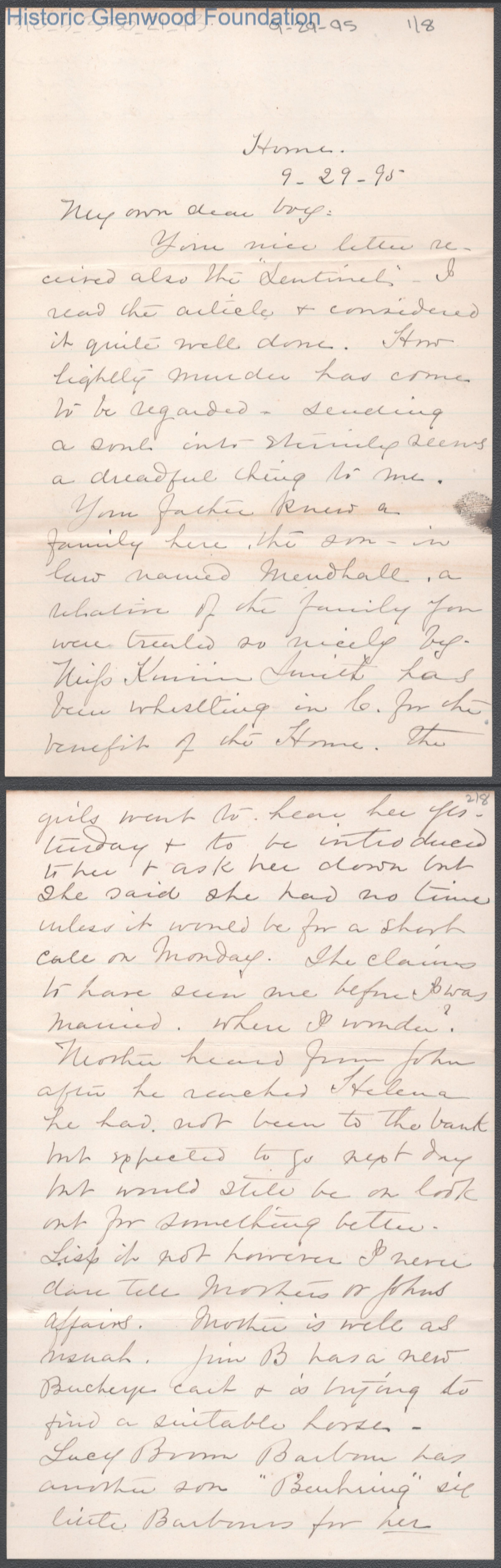 George W. Summers from Lucy W. Summers, Sep 29, 1895