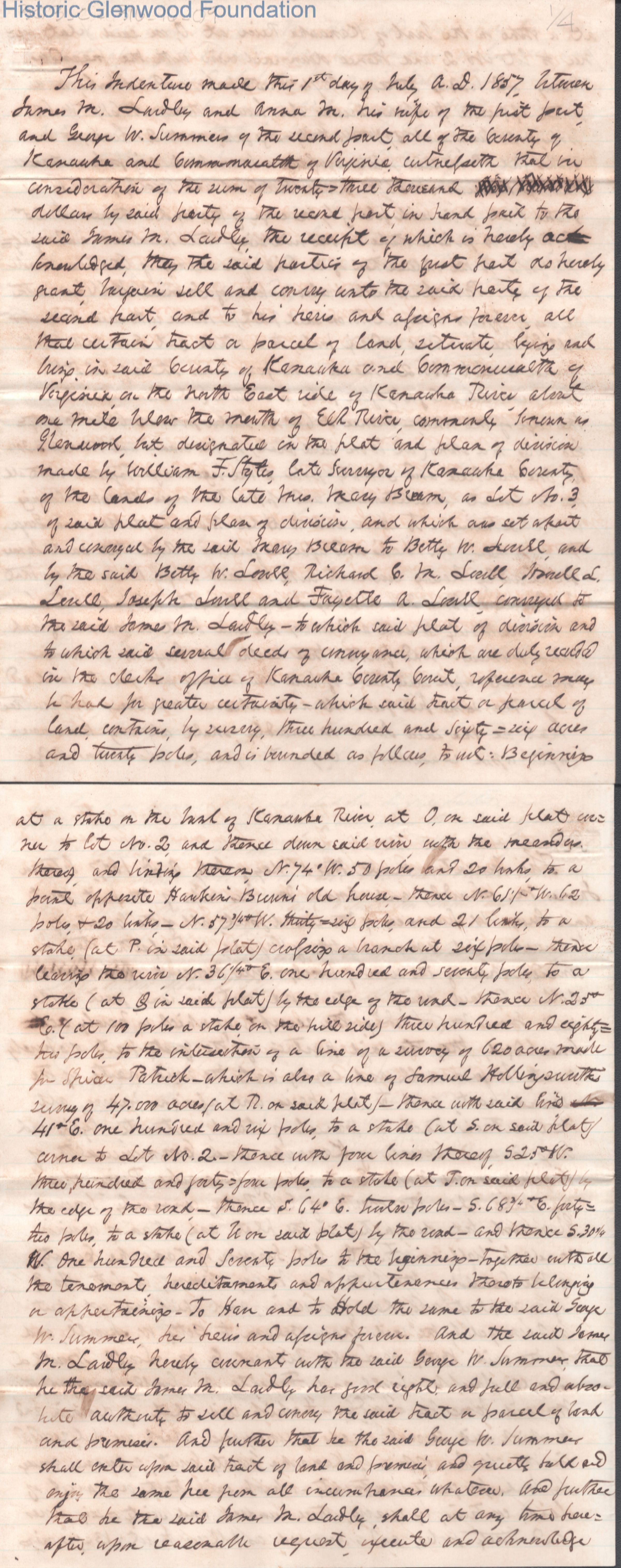 Glenwood Purchase Agreement between Judge George Summers and James M. Laidley and Anna M. Laidley, Jul 1, 1857