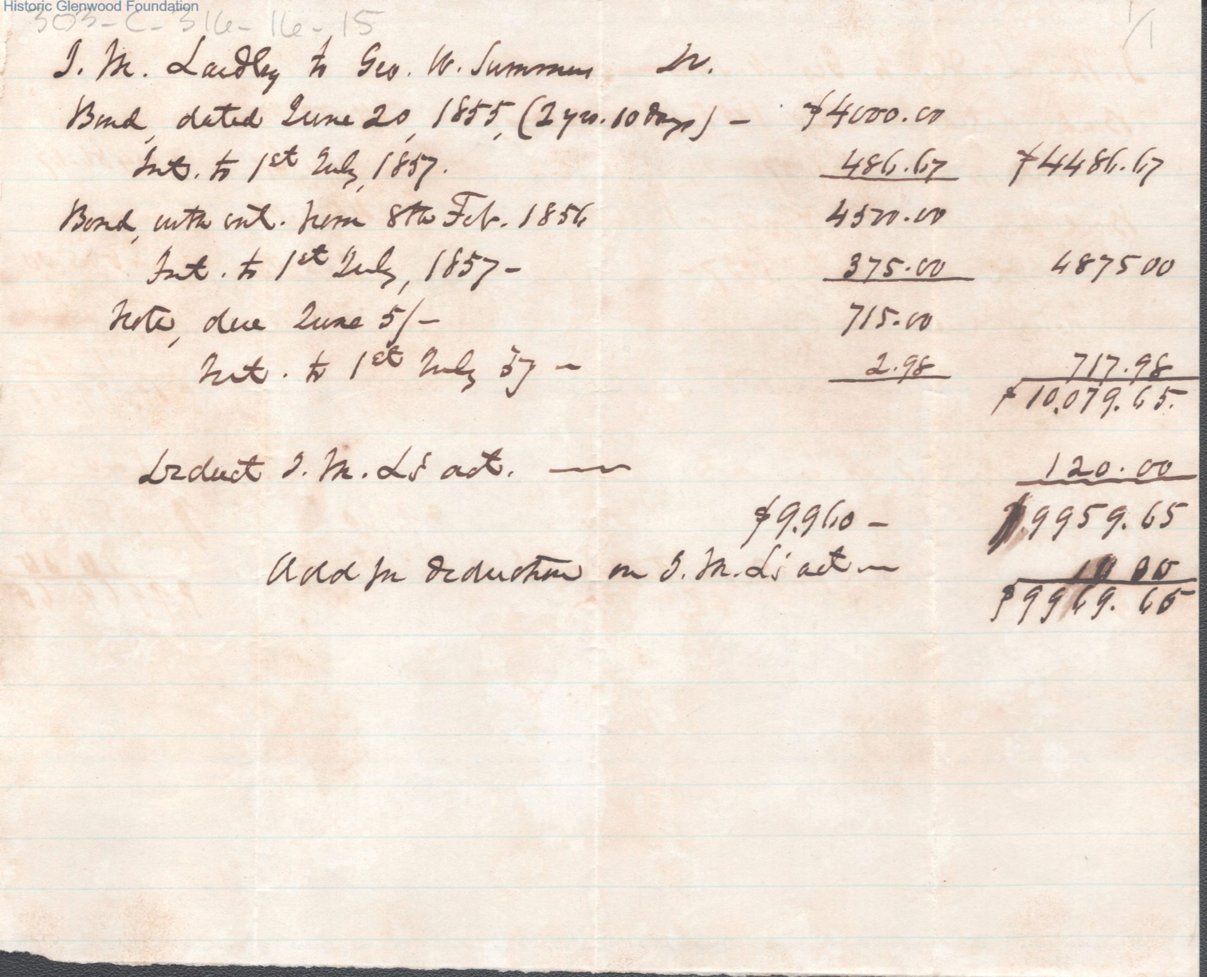 Judge George Summers and James M. Laidley, List of Glenwood Financial Transactions, no date.