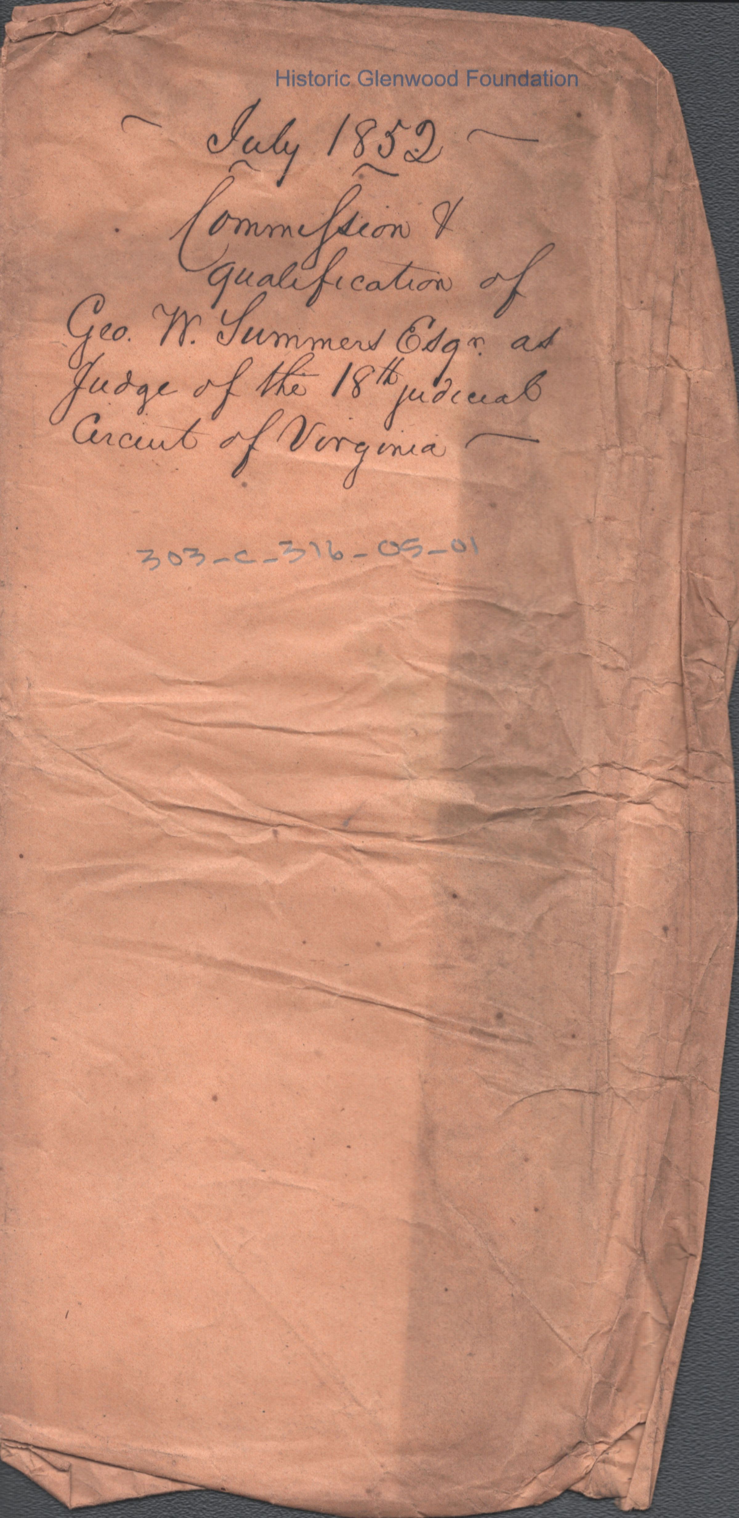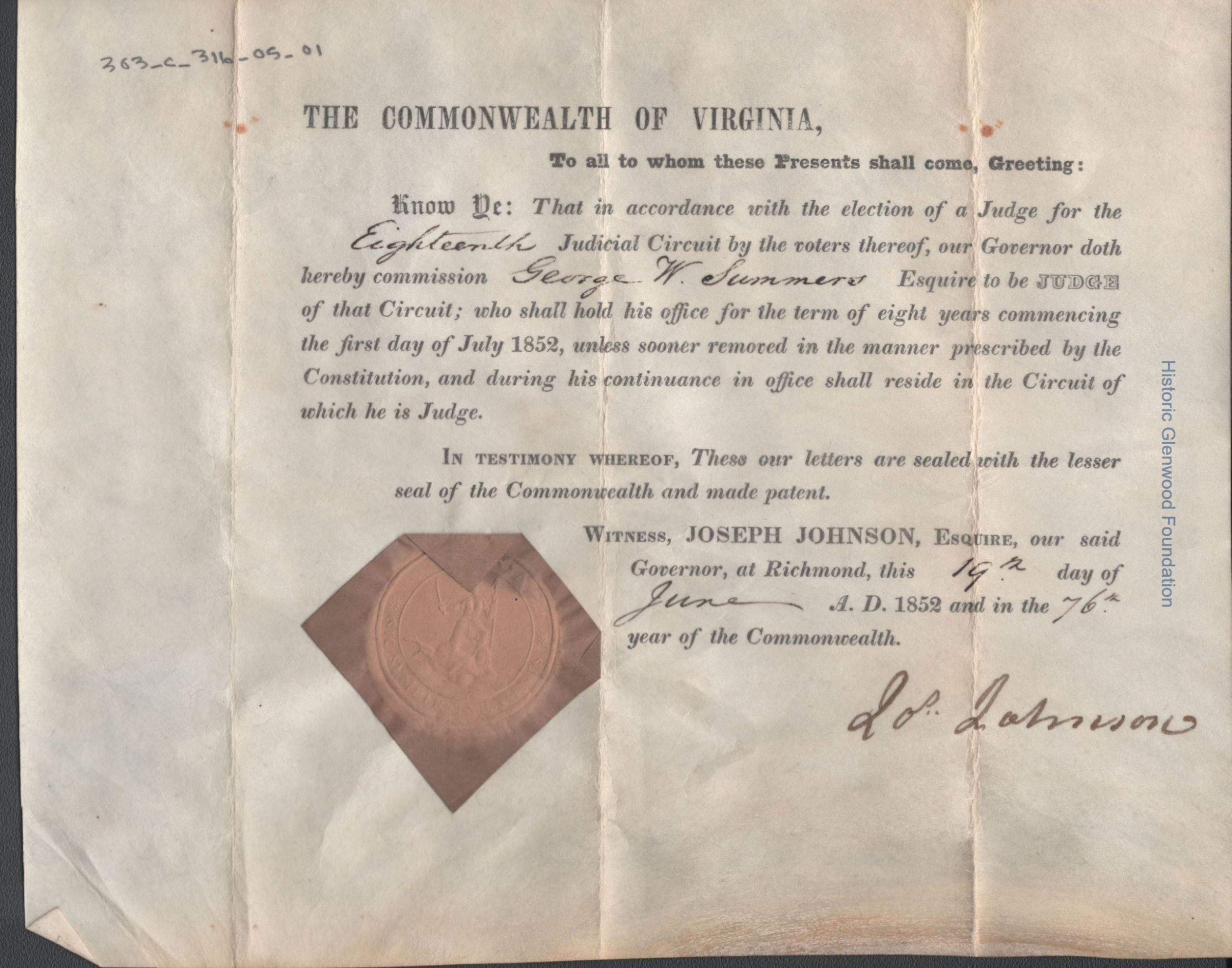 Certificate certifying George W. Summers's election to the 18th Circuit Court from the Commonwealth of Virginia.