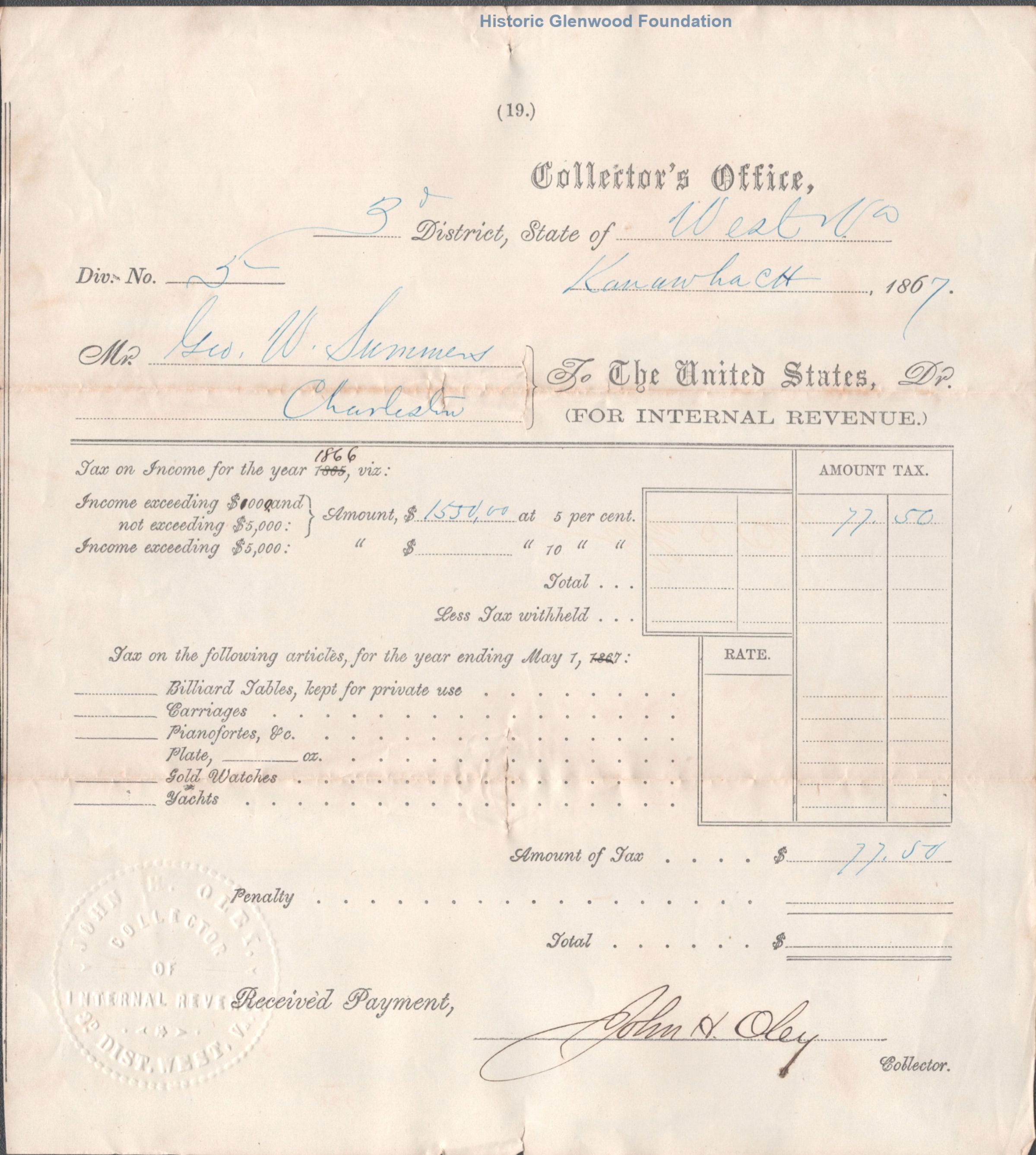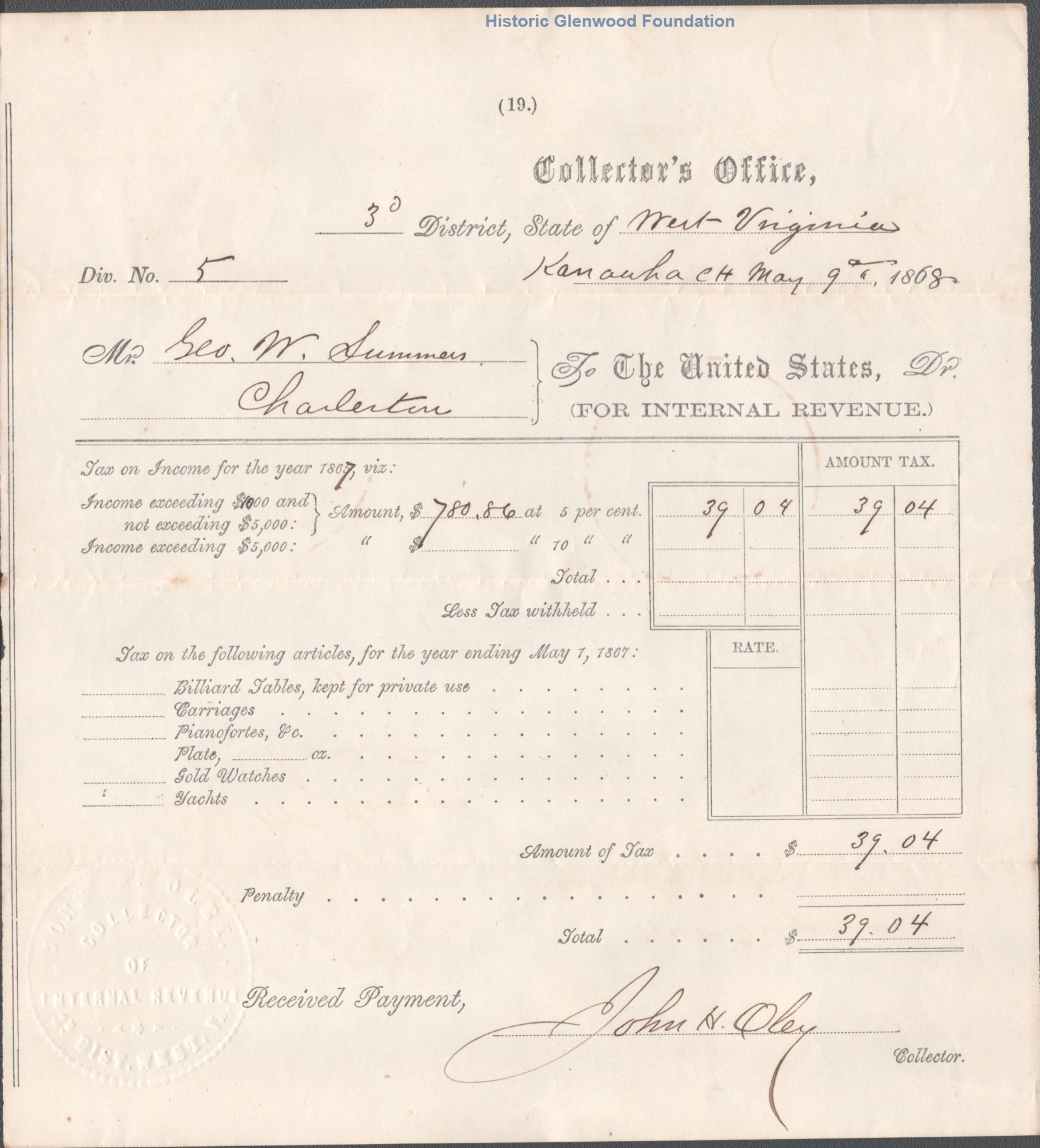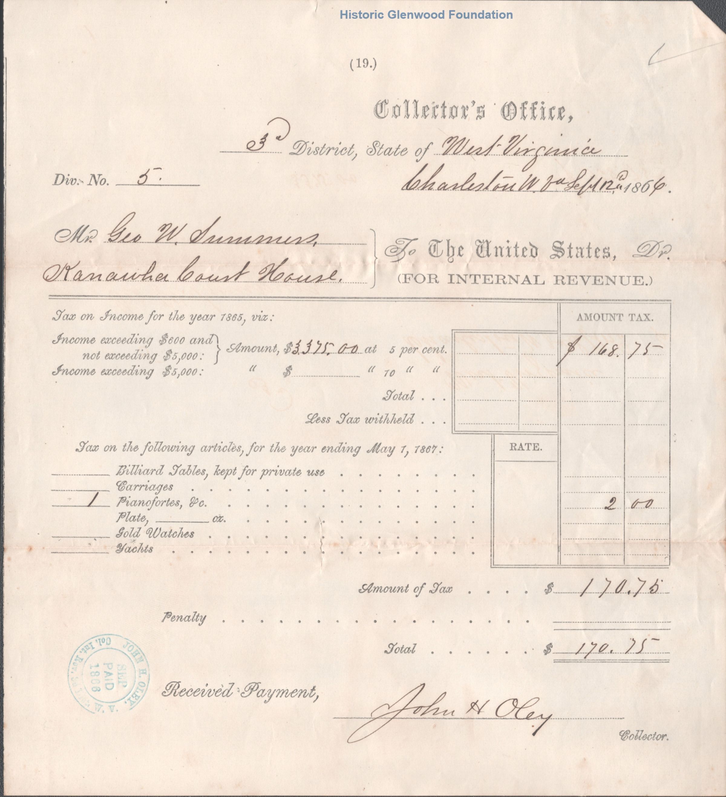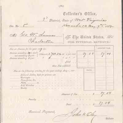 Judge George Summers, federal income tax receipts, 1864-1868