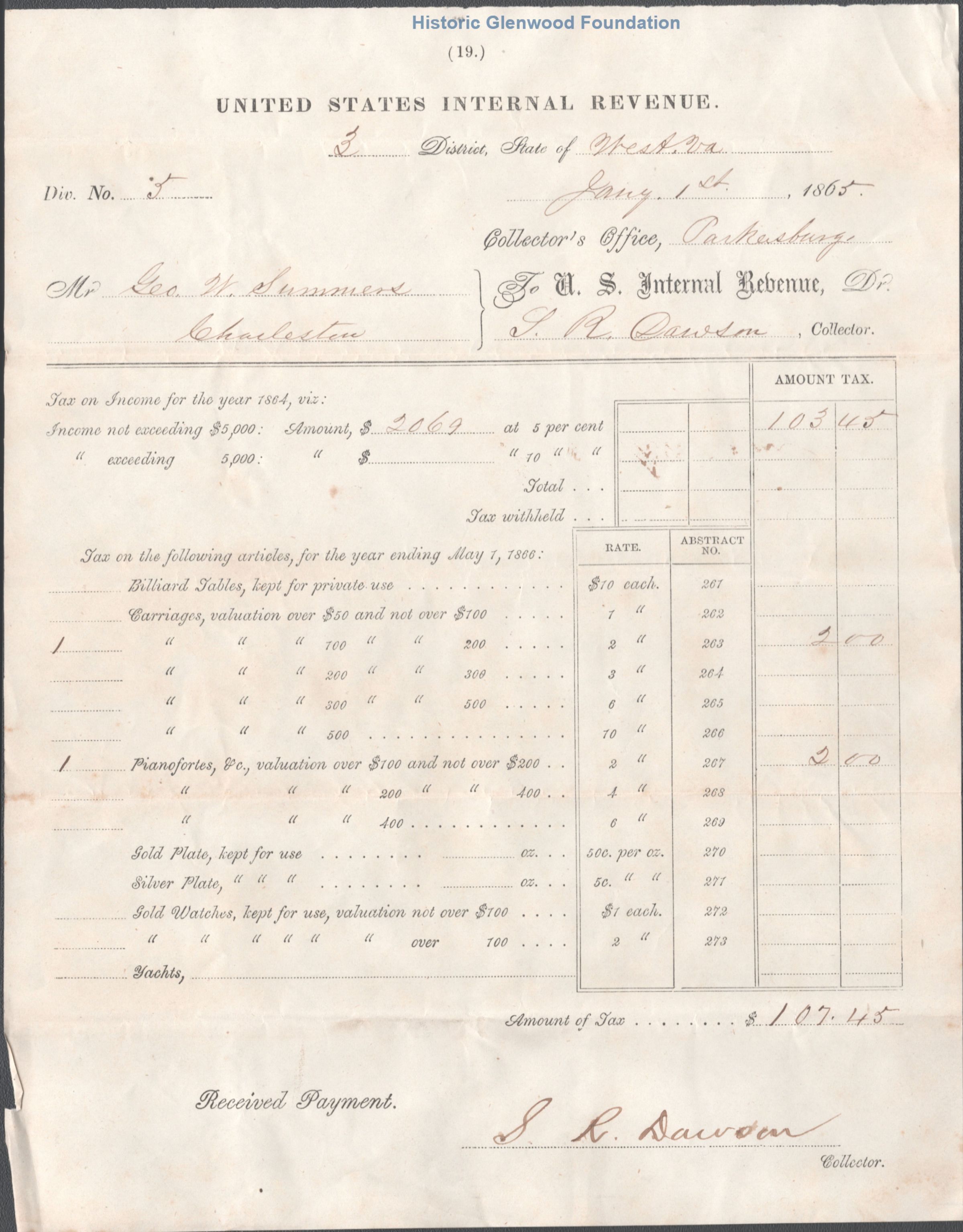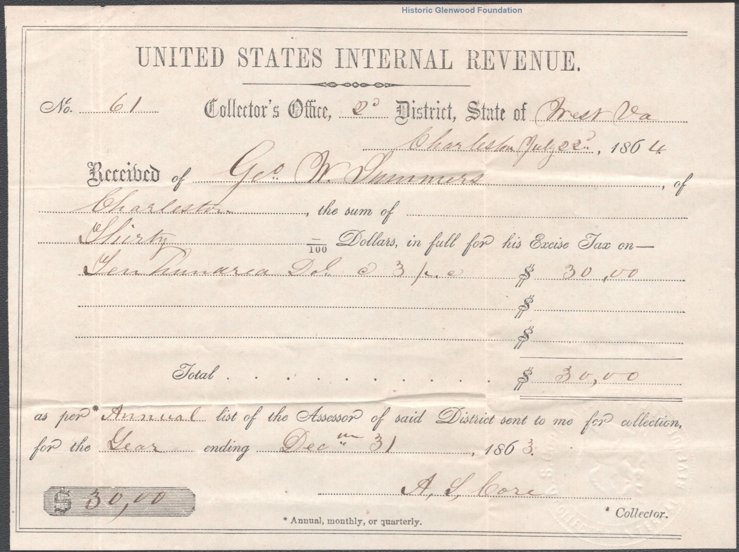 Judge George Summers, federal income tax receipts