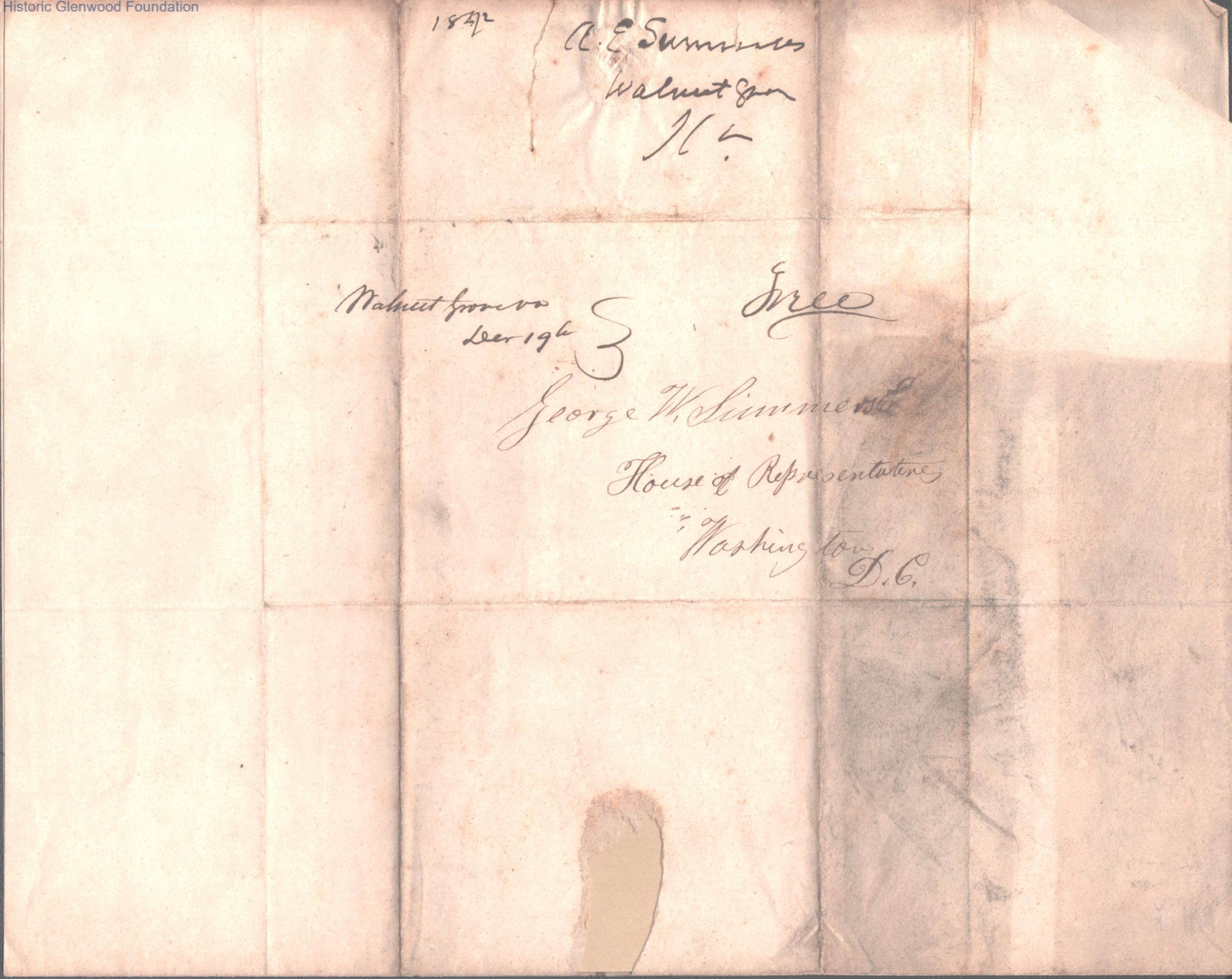 Judge George Summers from A. E. Summers, Dec 18, 1842