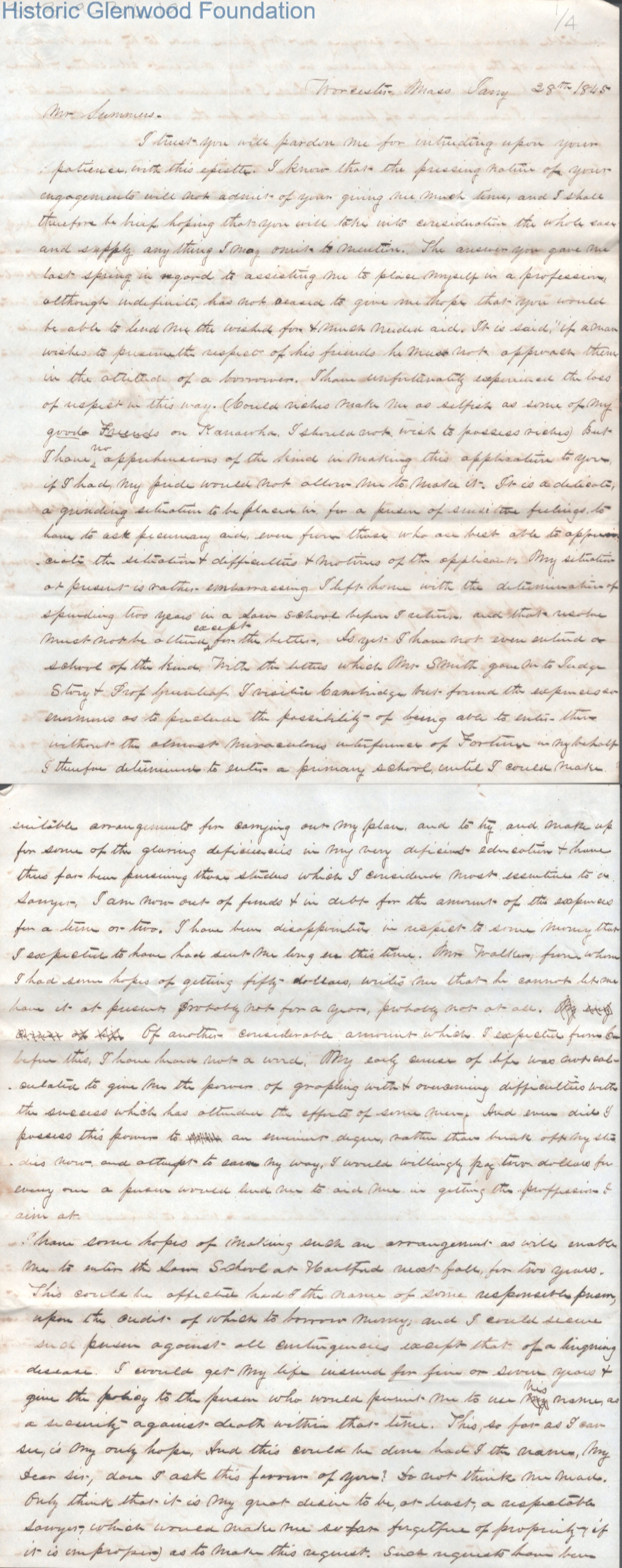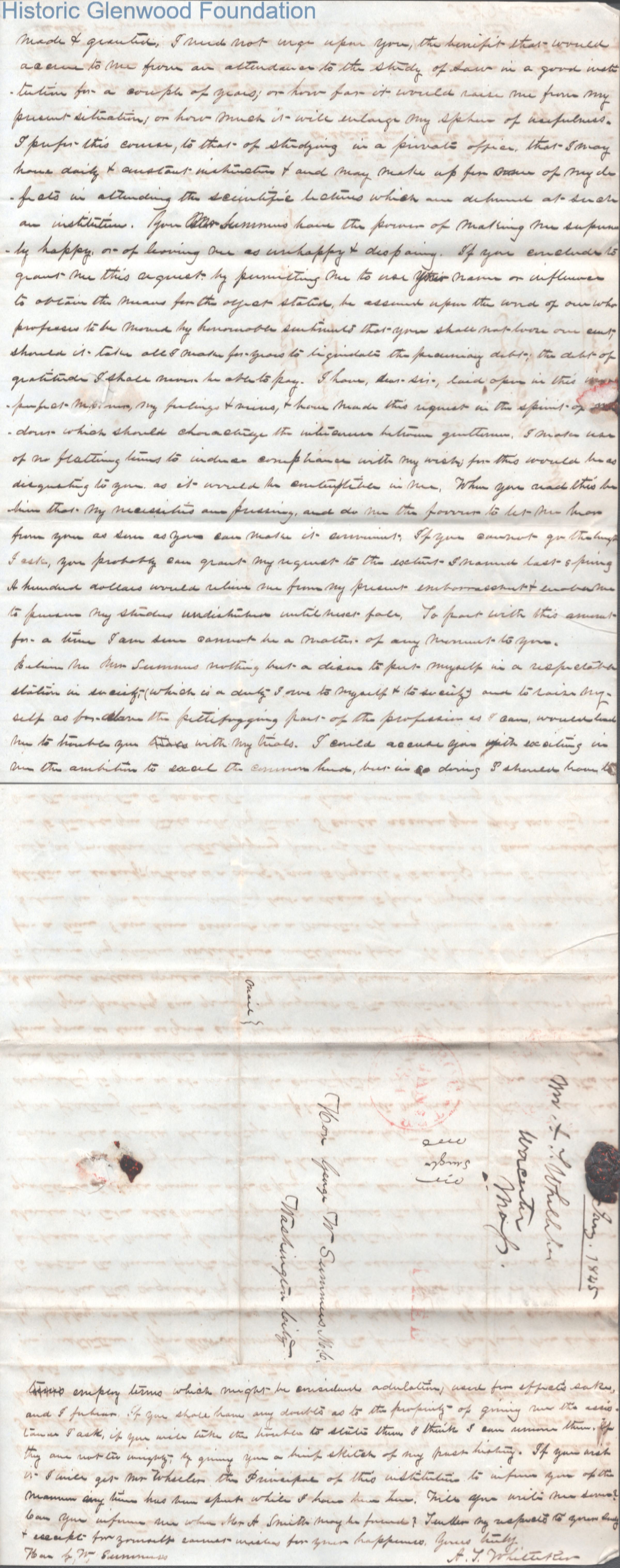 Four-page letter to Judge George Summers from A. J. Whittaker, Jan 28, 1845.