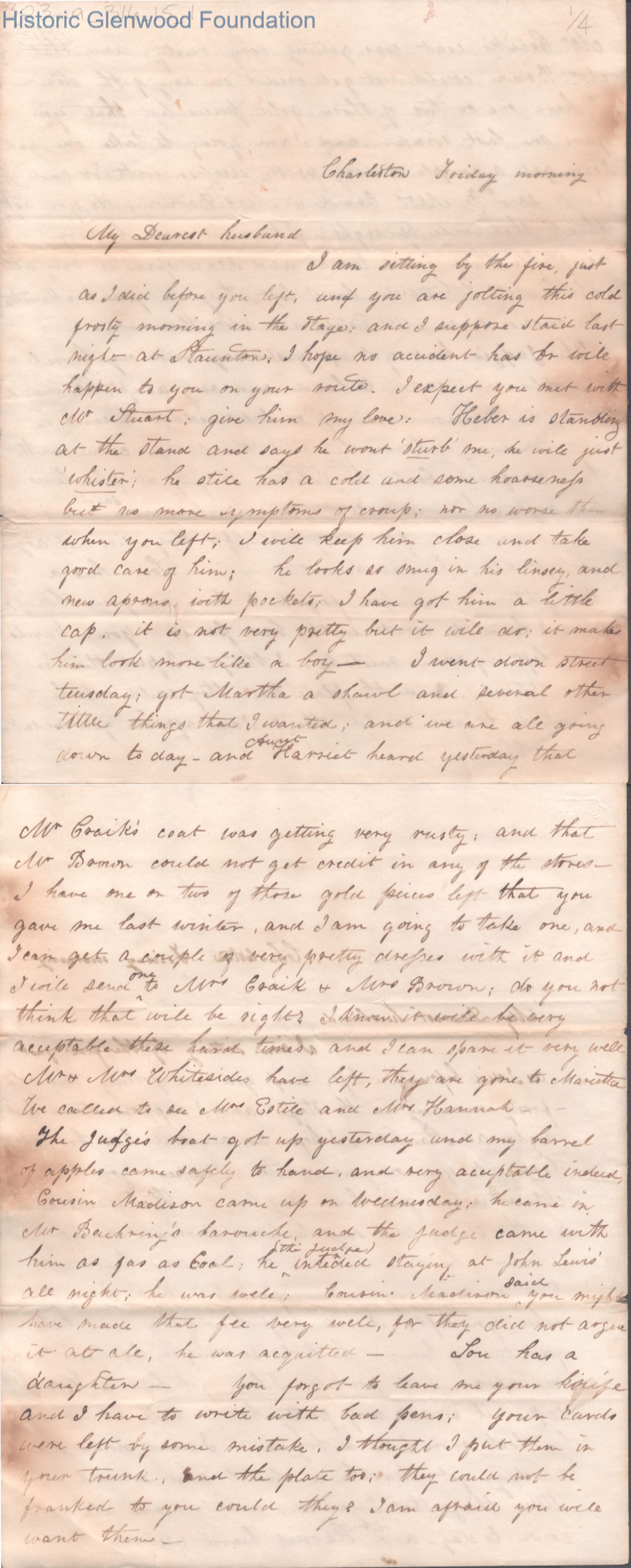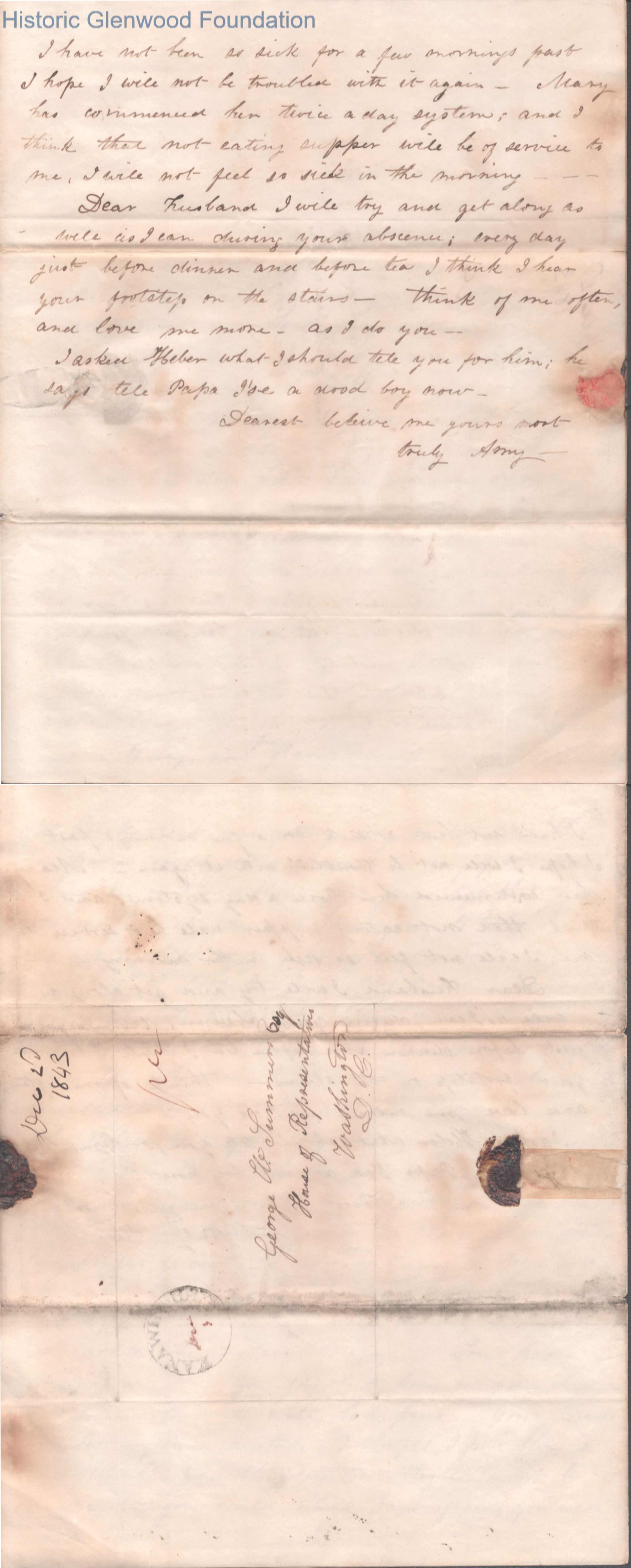 Three-page letter to Judge George Summers from Amacetta Laidley Summers, Dec 20, 1842.