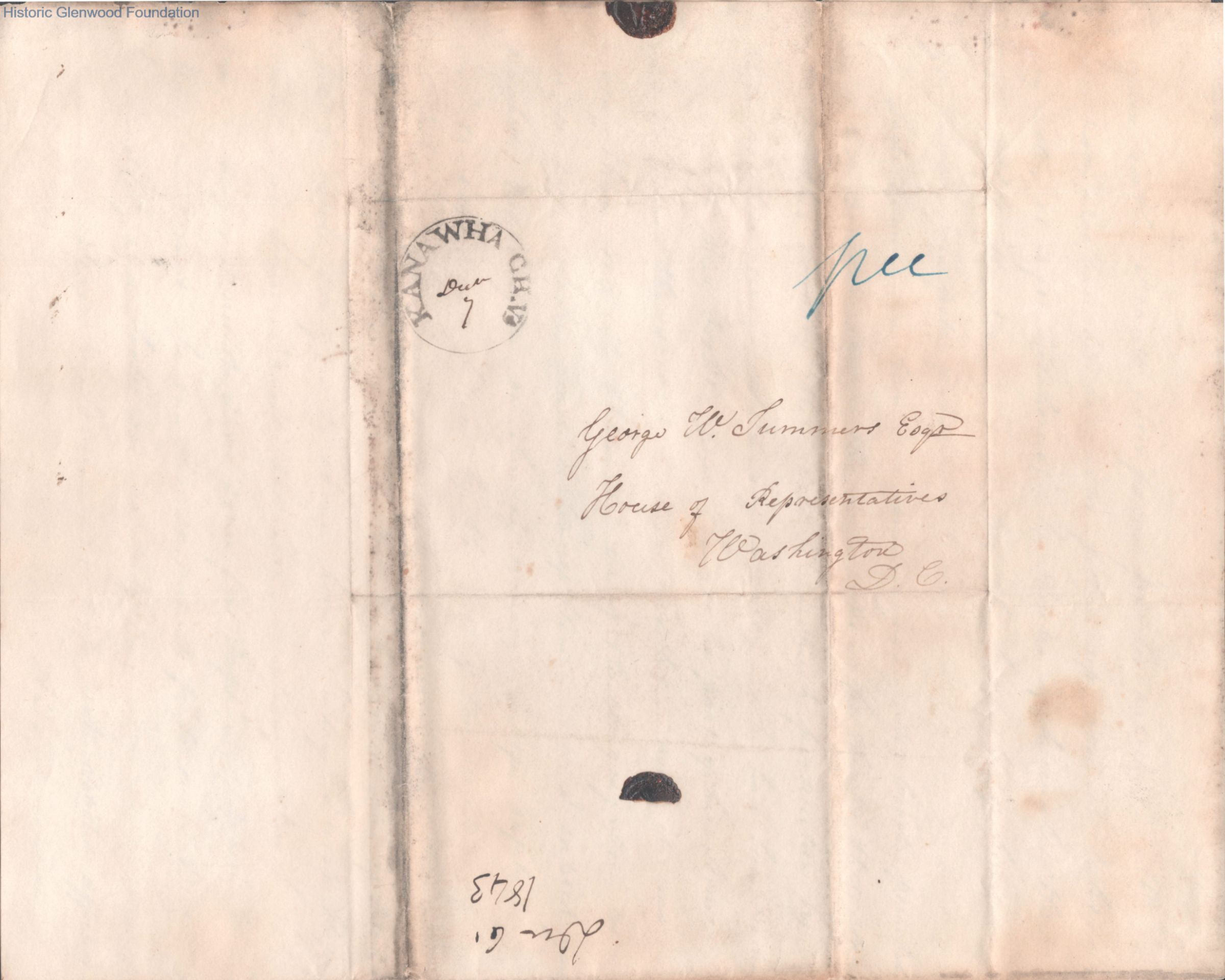 Judge George Summers from Amacetta Laidley Summers, Dec 6, 1842
