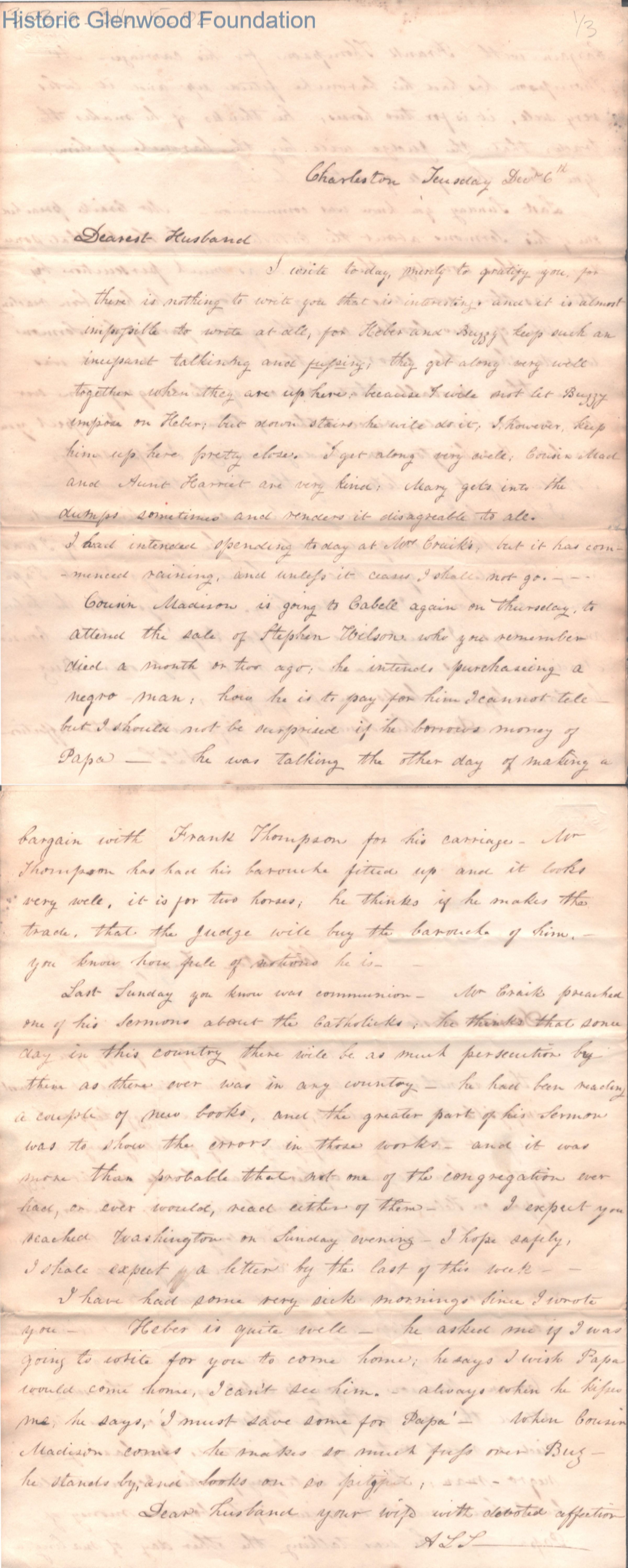 Two-page letter to Judge George Summers from Amacetta Laidley Summers, Dec 6, 1842.