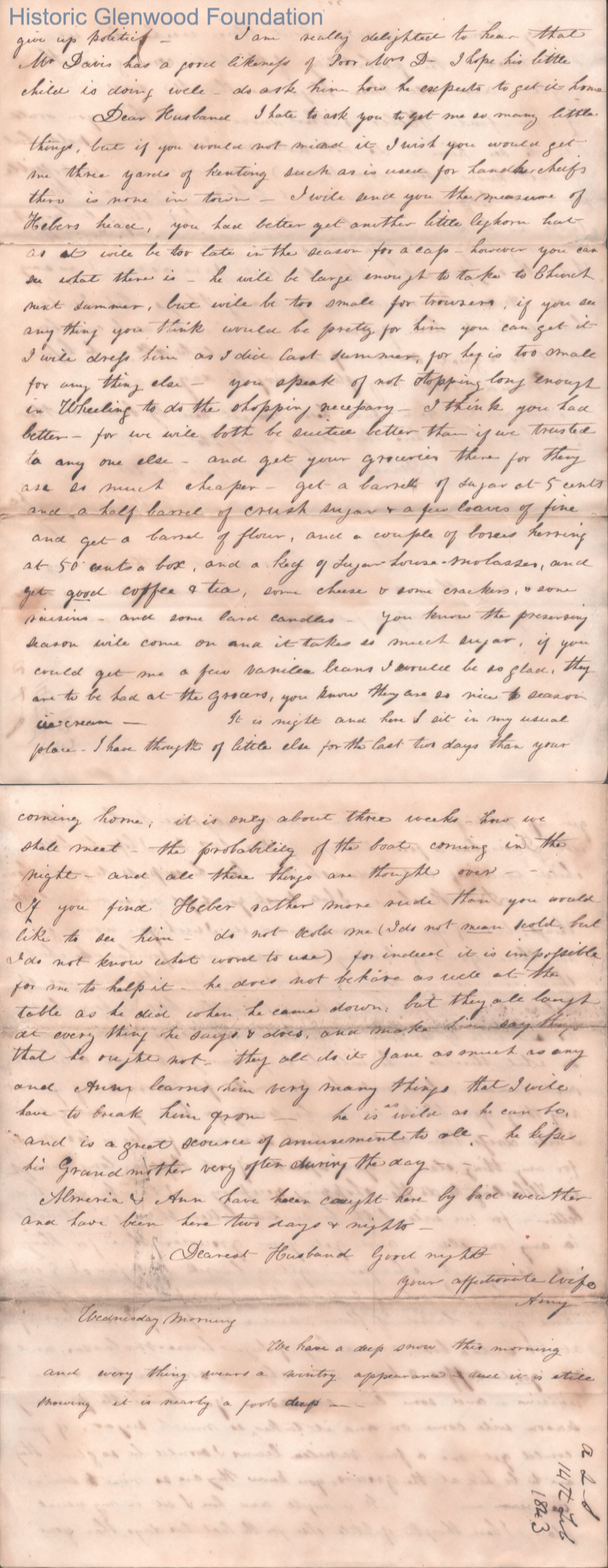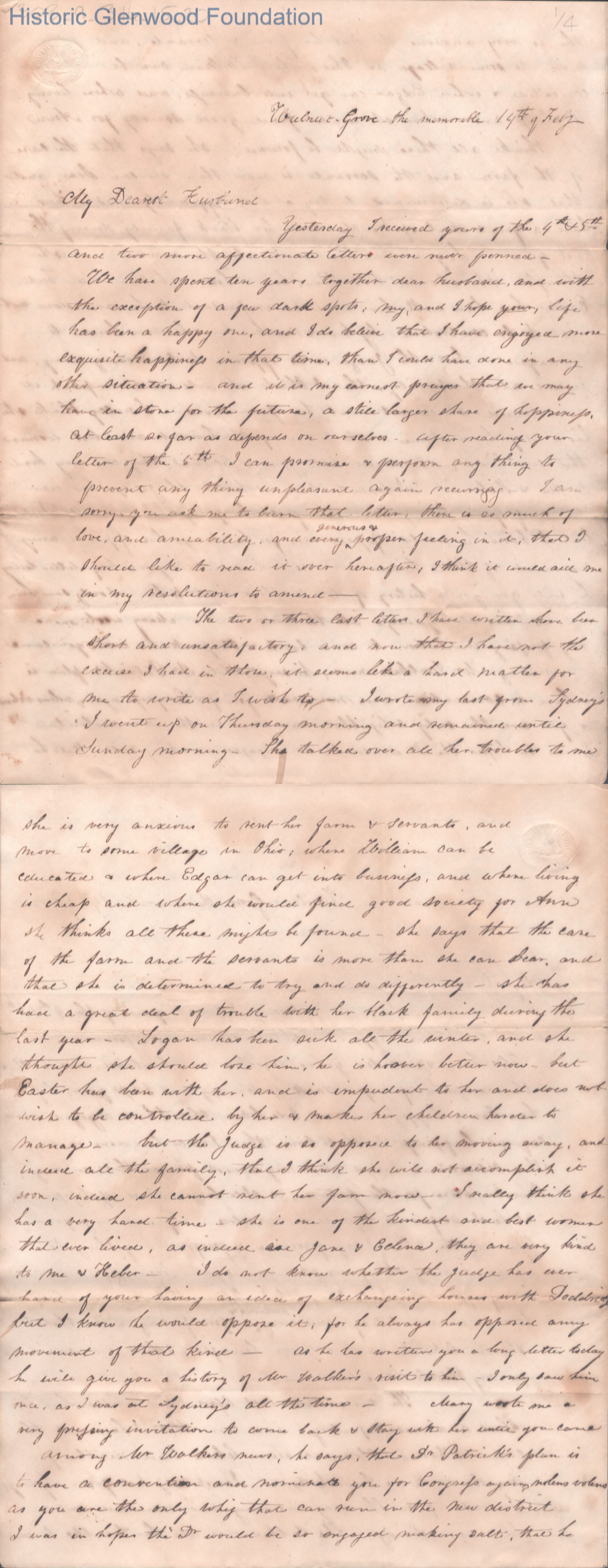 Four-page letter to Judge George Summers from Amacetta Laidley Summers, Feb 14, 1843.