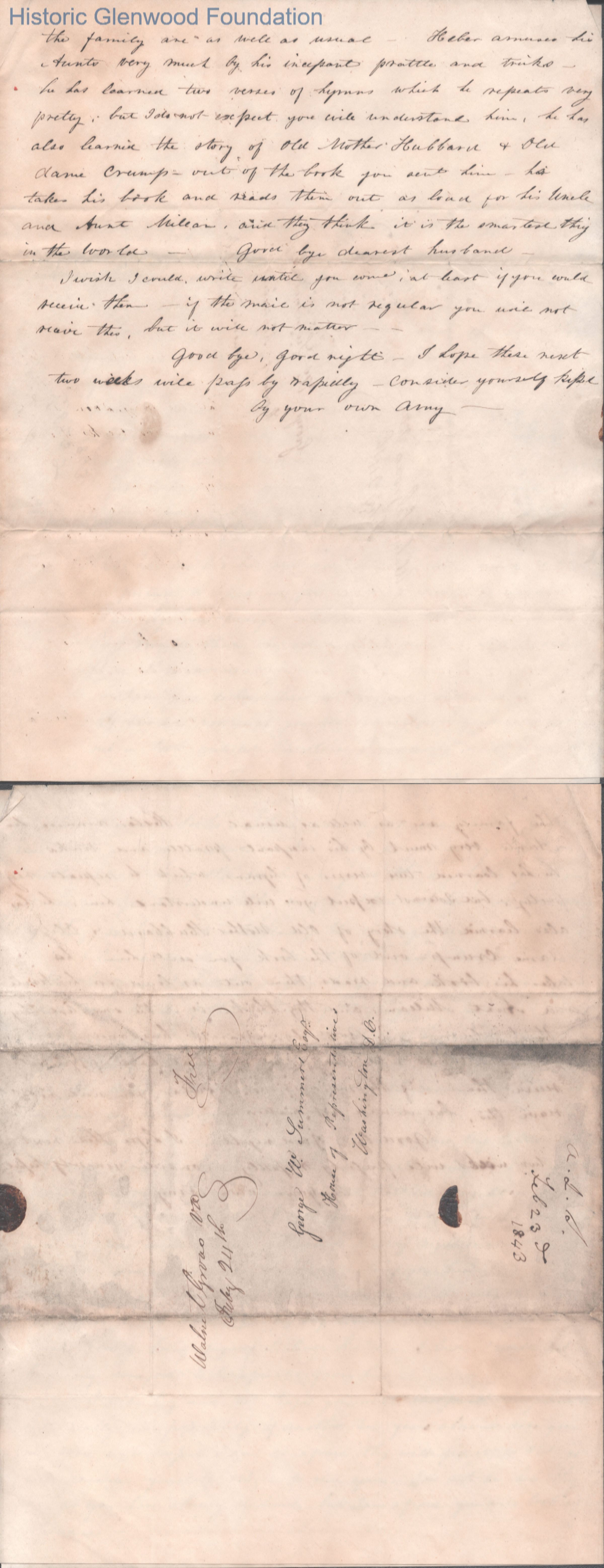 Judge George Summers from Amacetta Laidley Summers, Feb 23, 1843