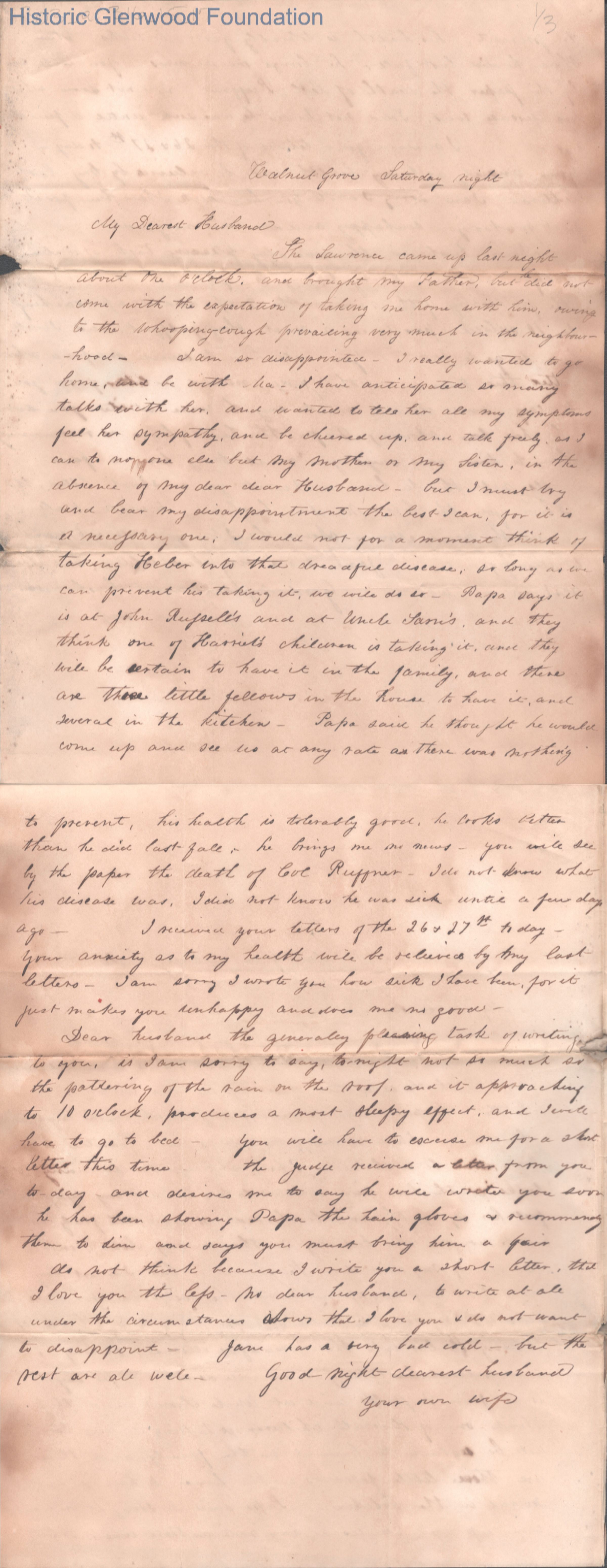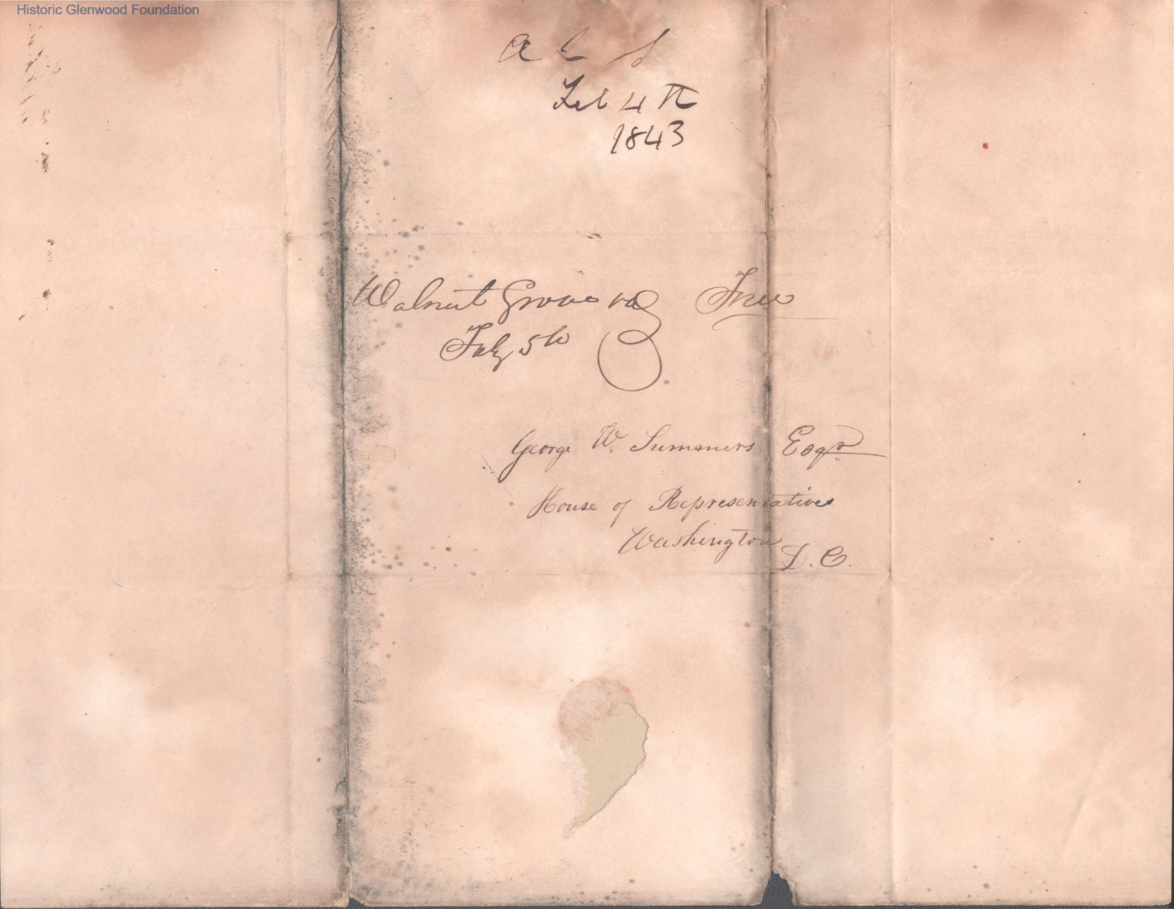 Two-page letter to Judge George Summers from Amacetta Laidley Summers, Feb 4, 1843.