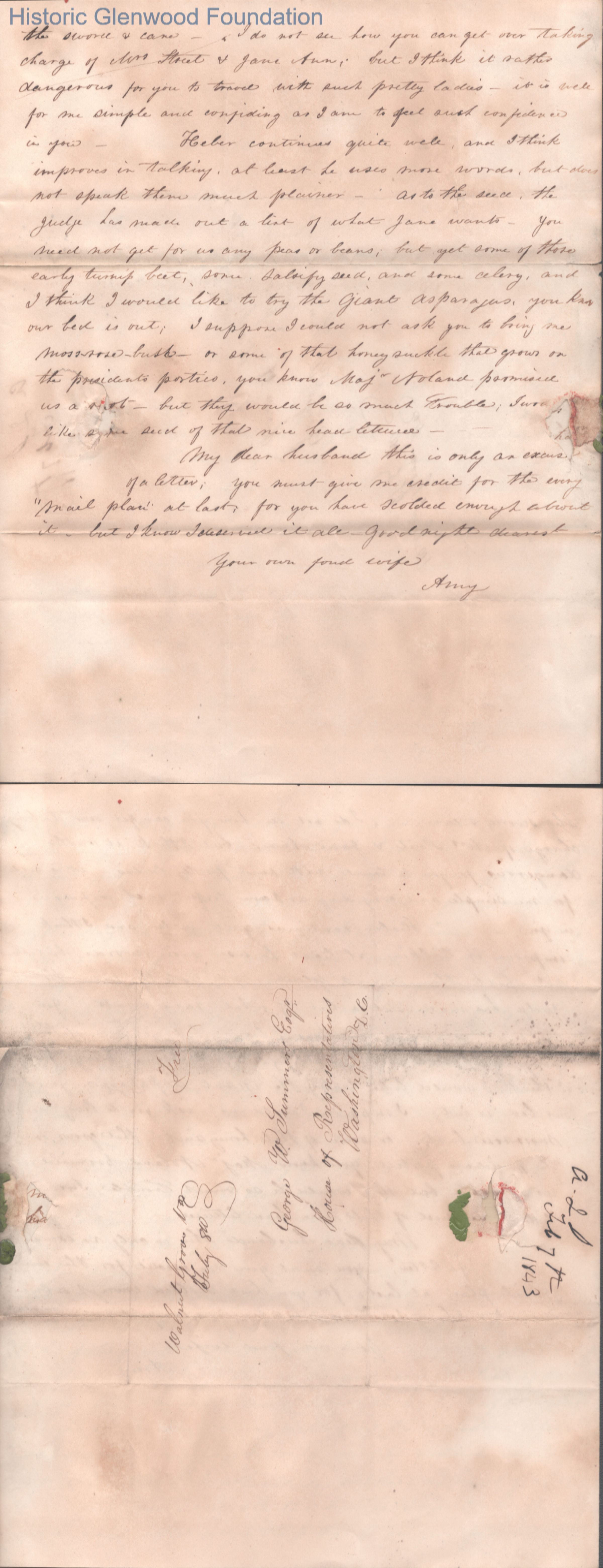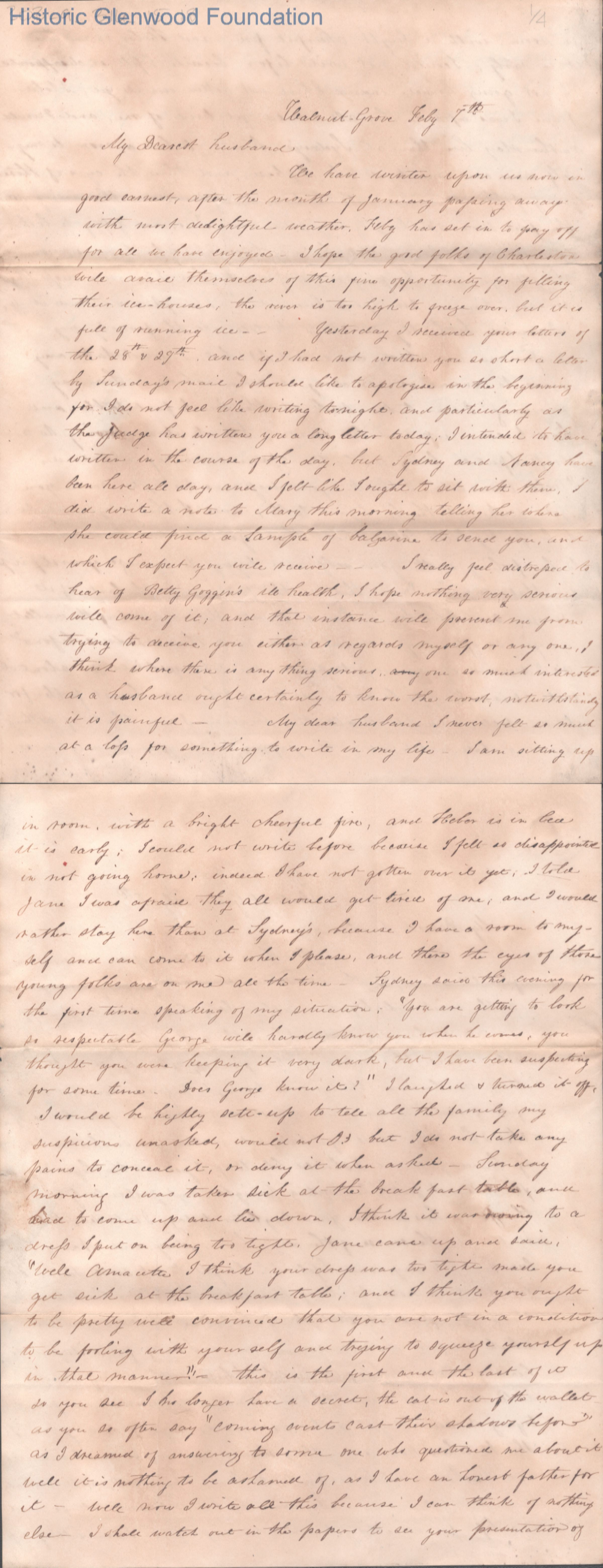 Three-page letter to Judge George Summers from Amacetta Laidley Summers, Feb 7, 1843.