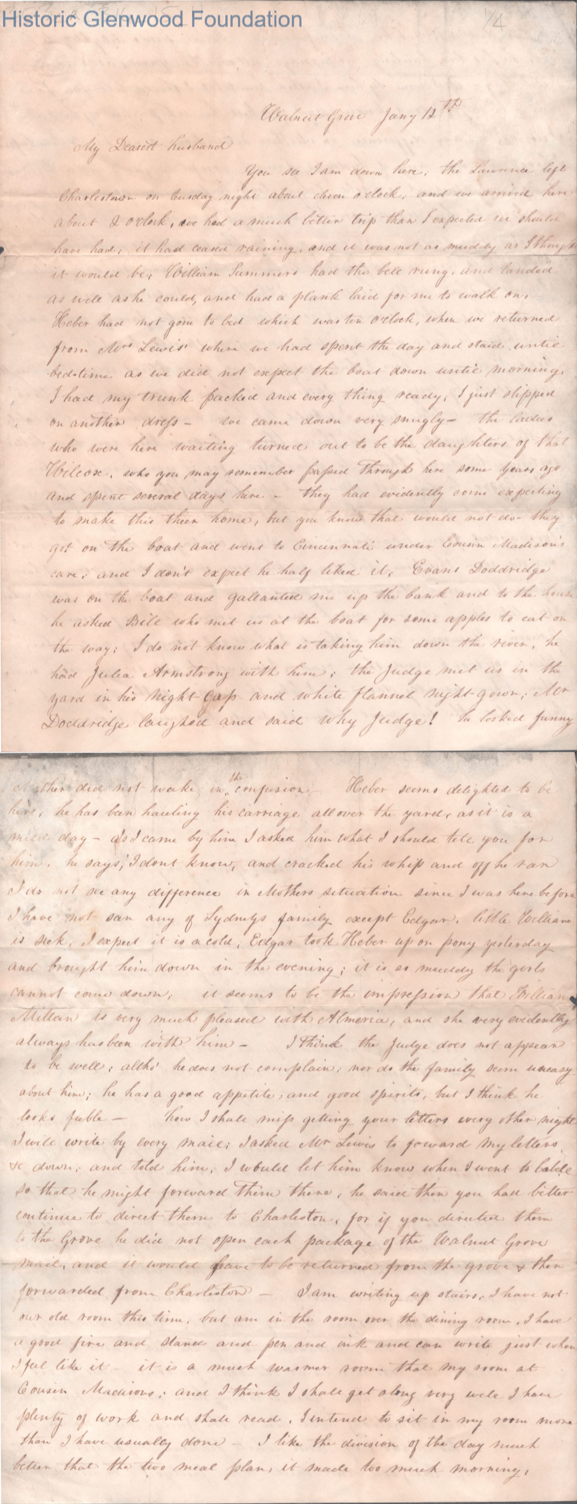 Three-page letter to Judge George Summers from Amacetta Laidley Summers, Jan 12, 1843.