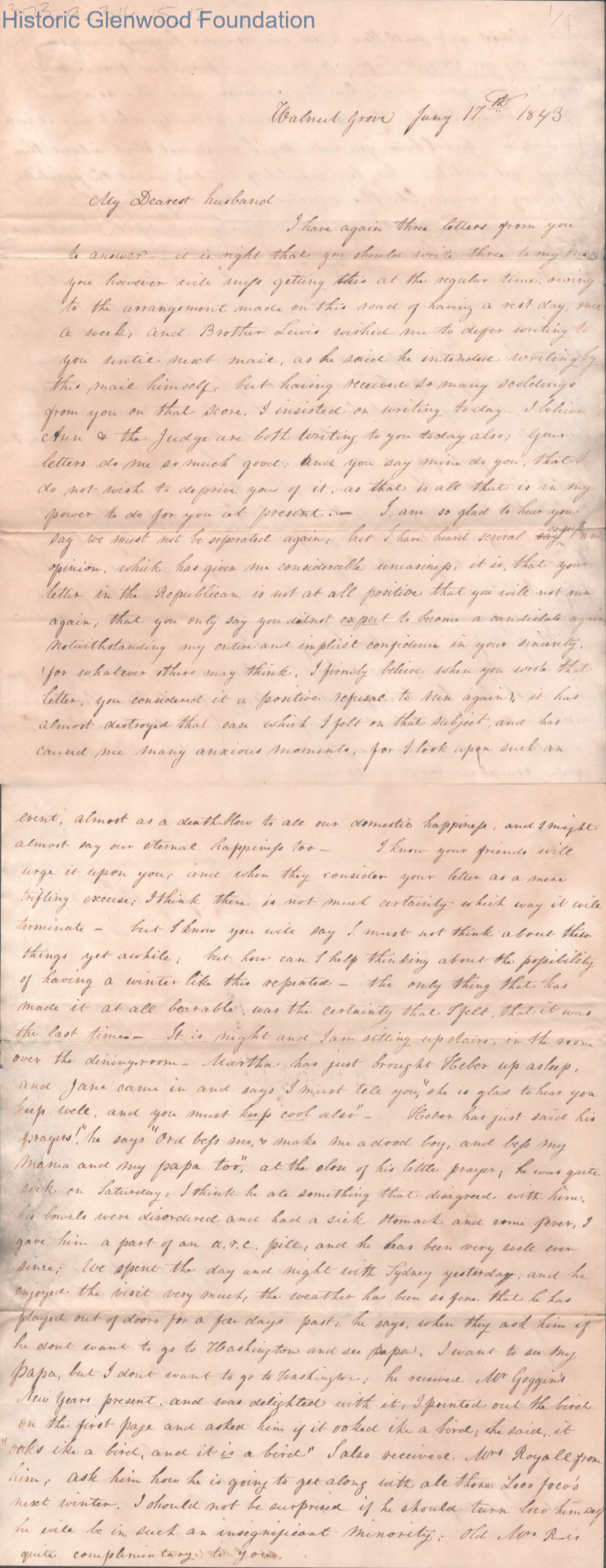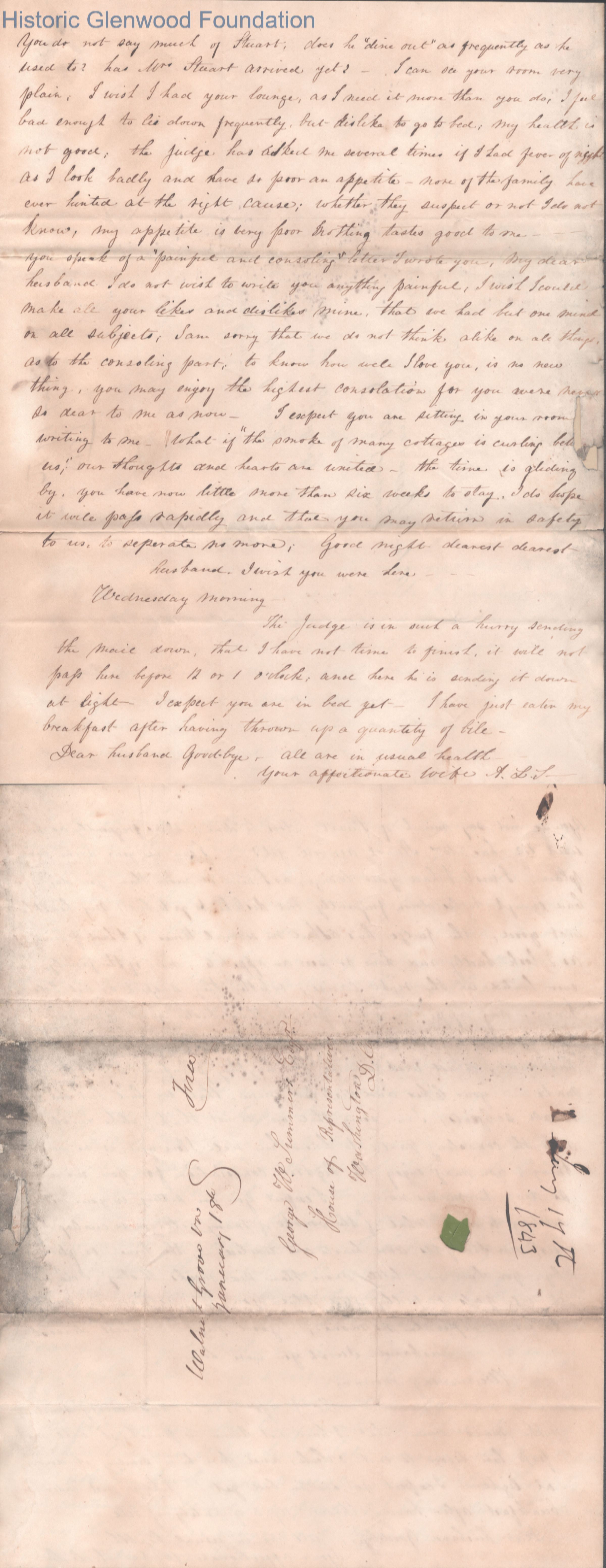 Three-page letter to Judge George Summers from Amacetta Laidley Summers, Jan 17, 1843.