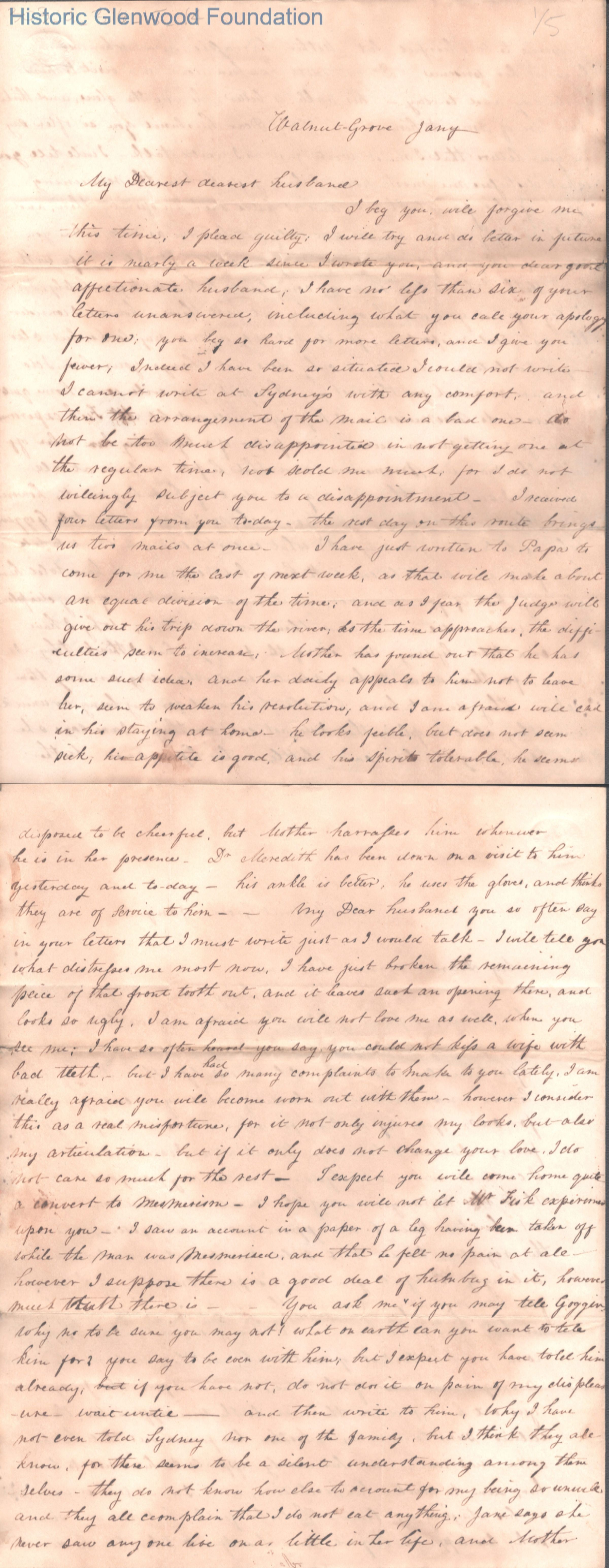 Judge George Summers from Amacetta Laidley Summers, Jan 1843