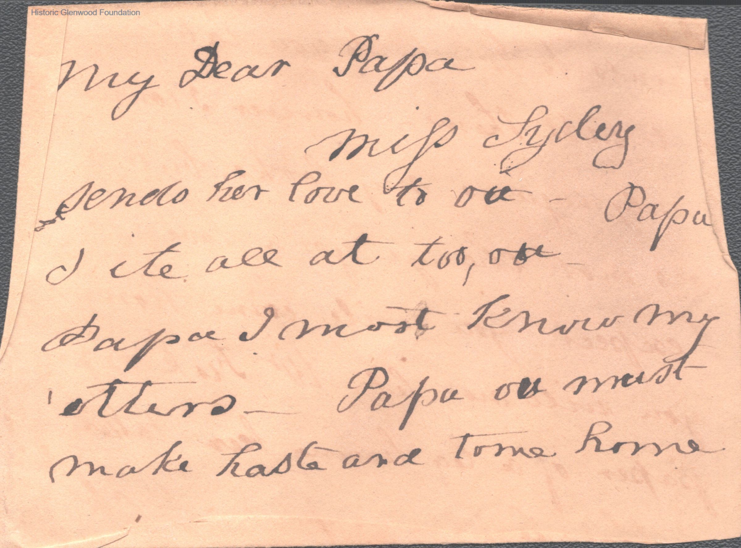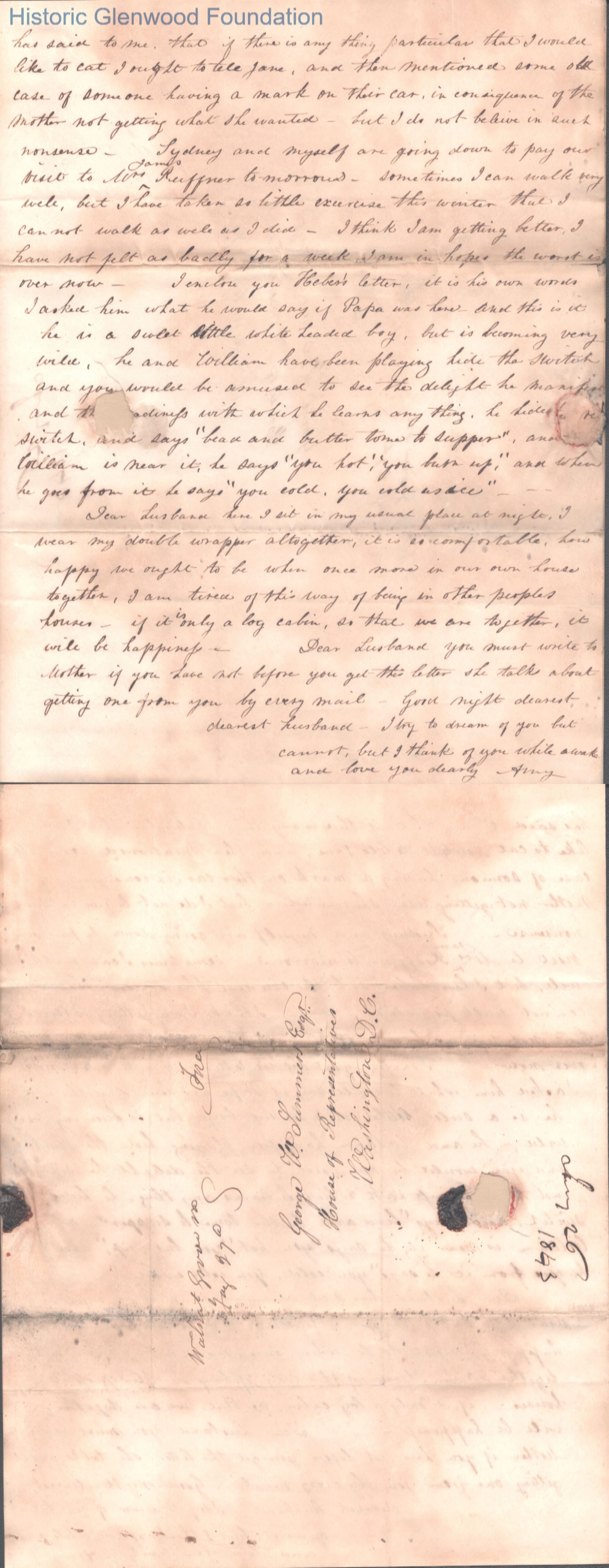 Three-page letter to Judge George Summers from Amacetta Laidley Summers, Jan 1843 with enclosed note from child.