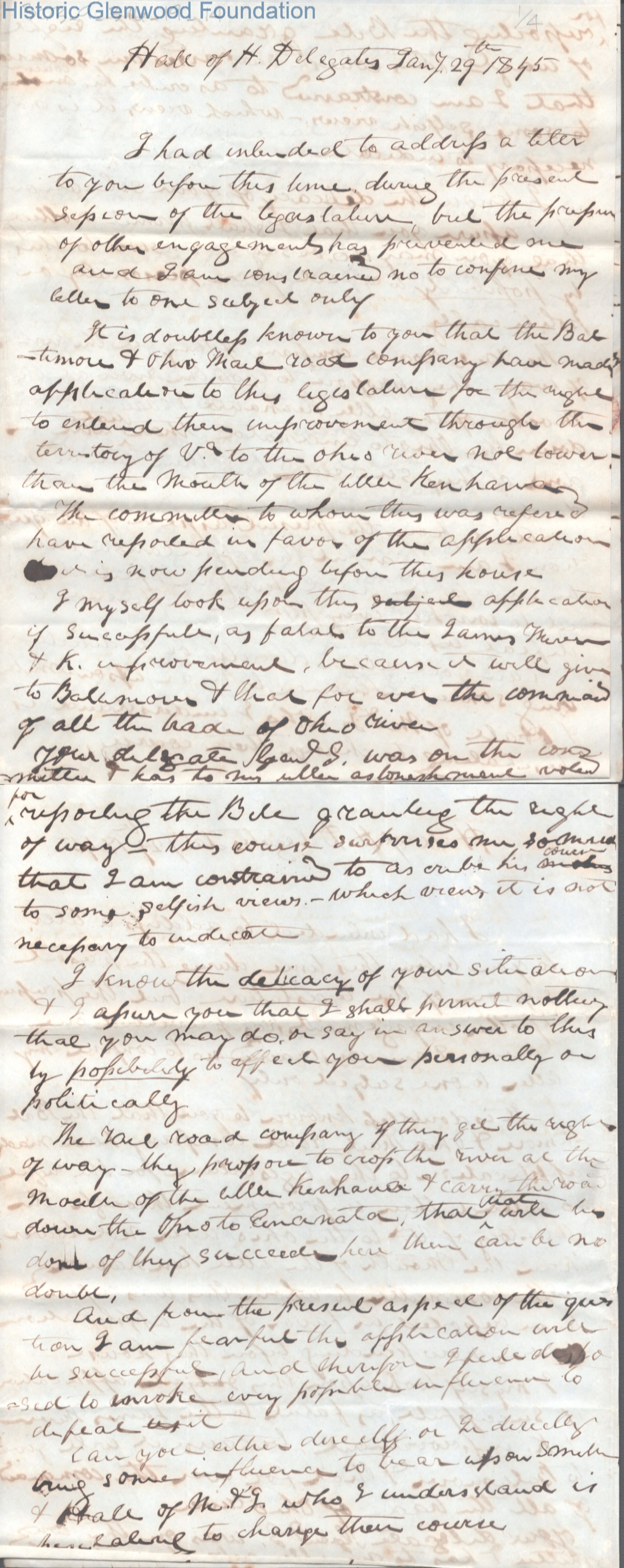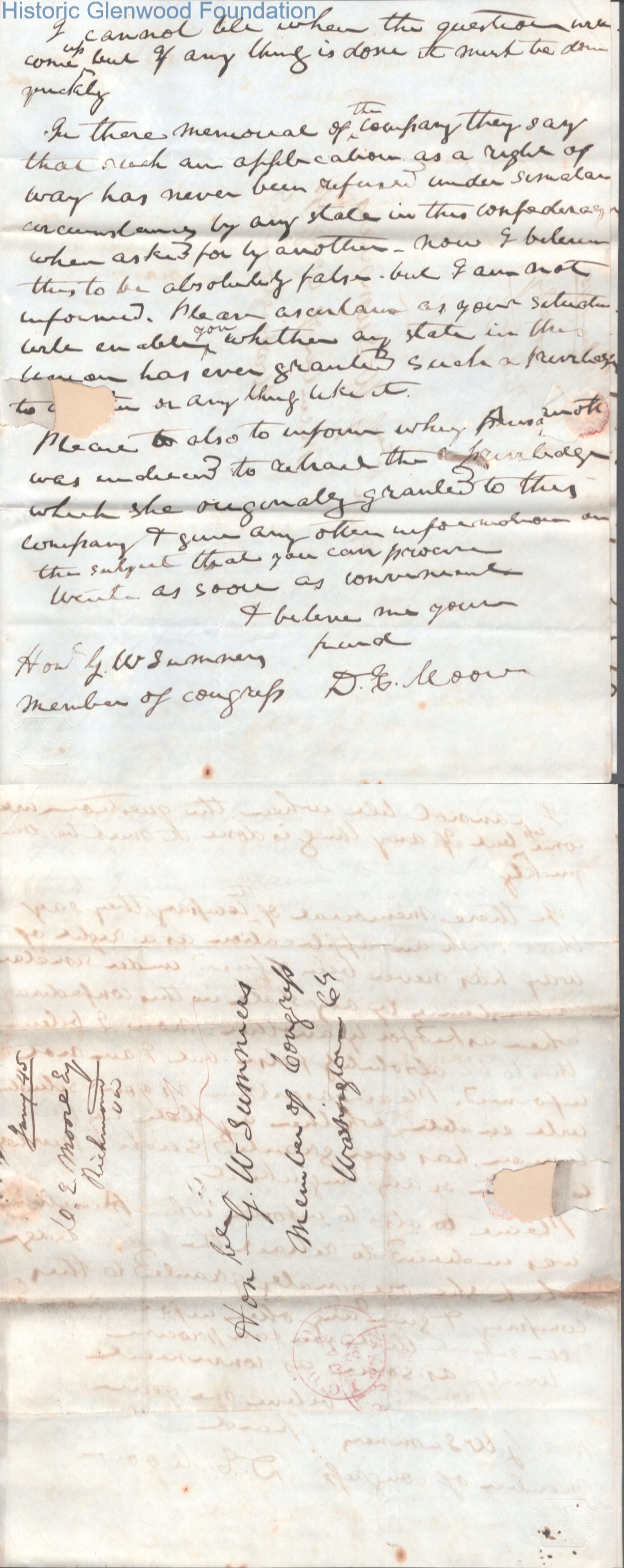 Three-page letter to Judge George Summers from D. E. Moore, Jan 29, 1845.