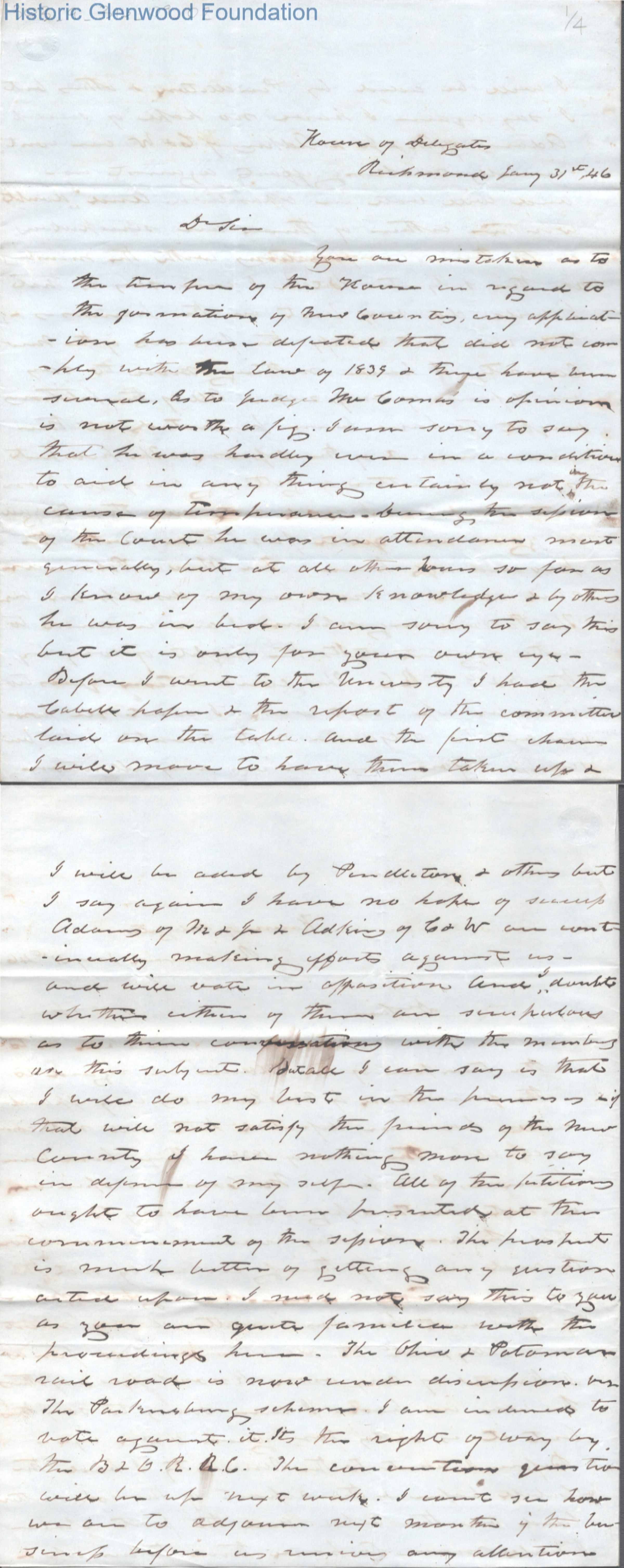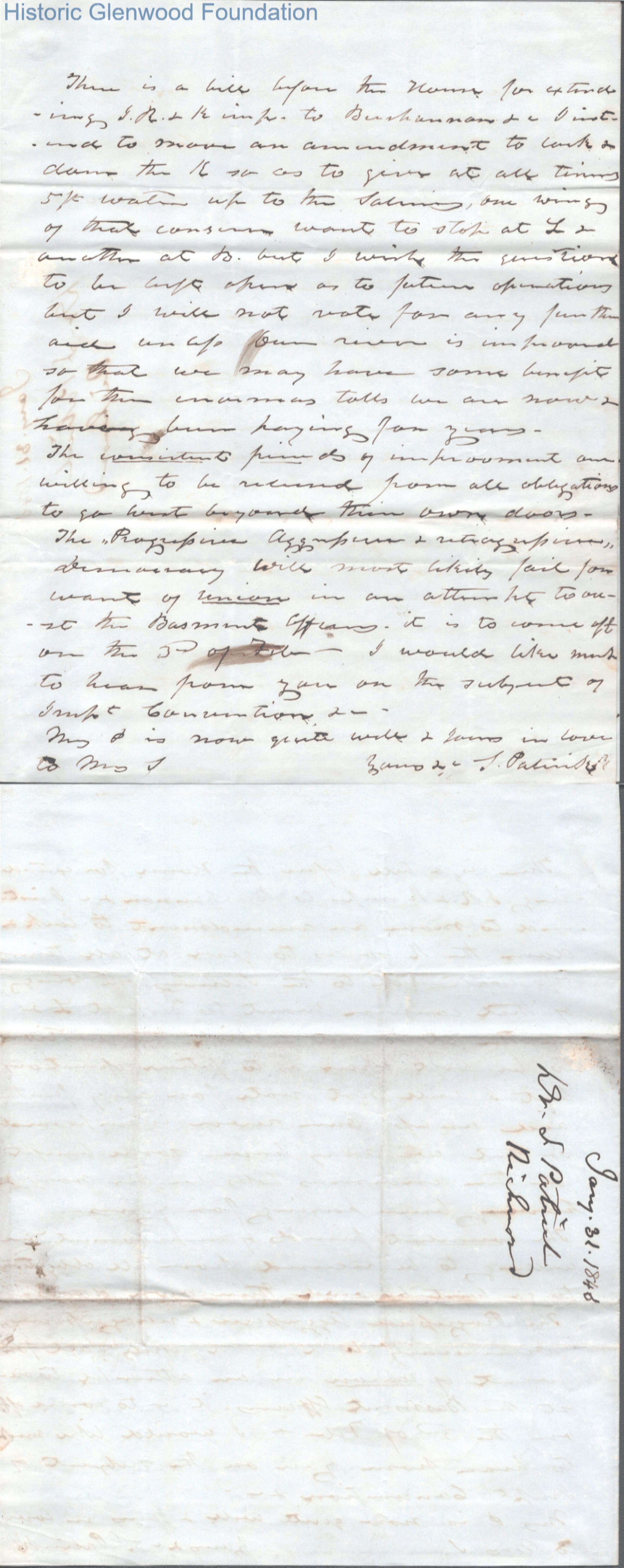 Three-page letter to Judge George Summers from Dr. Spicer Patrick, Jan 31, 1846.