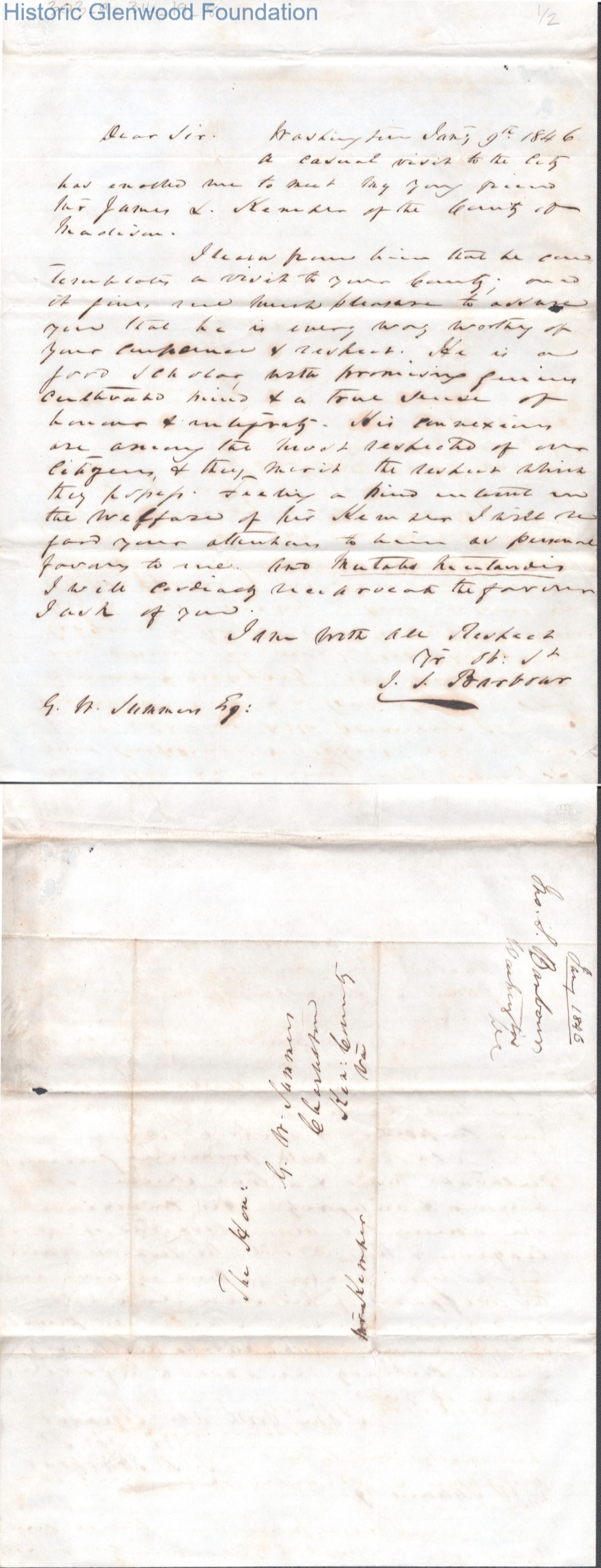 Single page letter to Judge George Summers from J. S. Barbour, Jan 9, 1846.