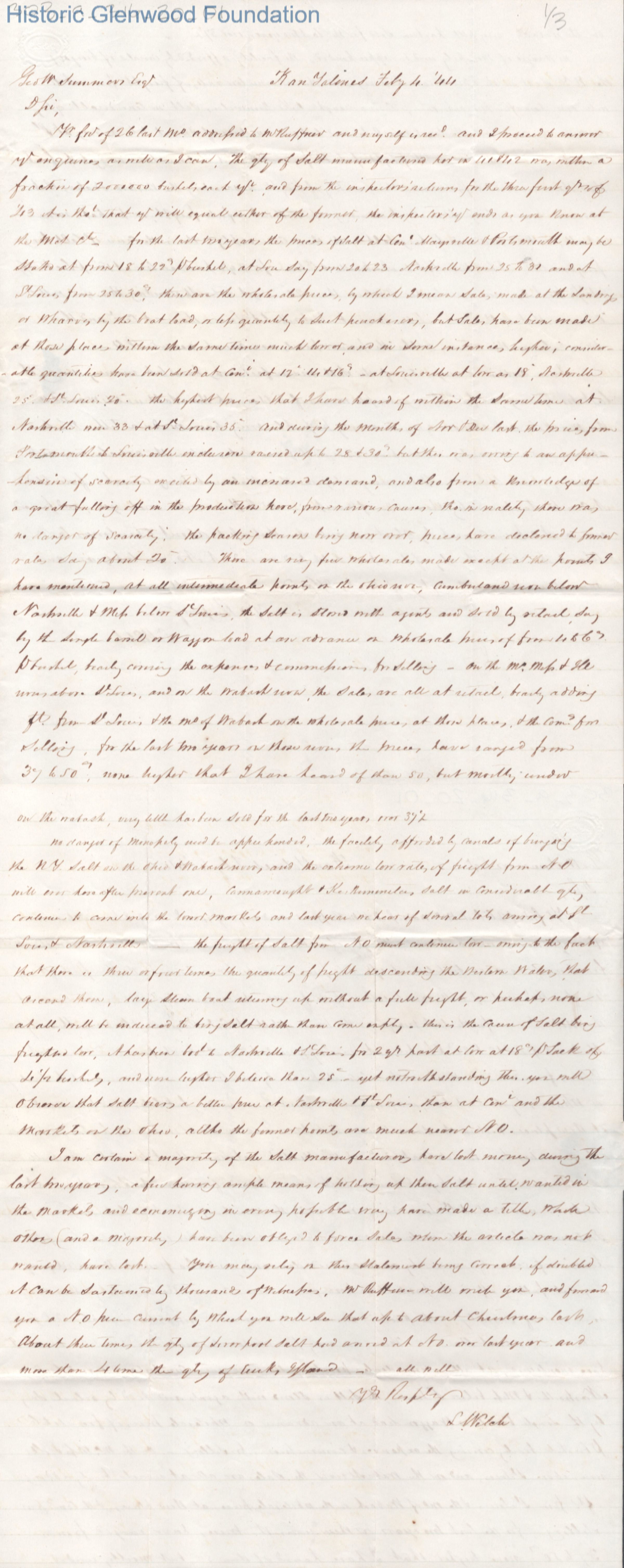 Judge George Summers from L. Welch, Feb 4, 1844