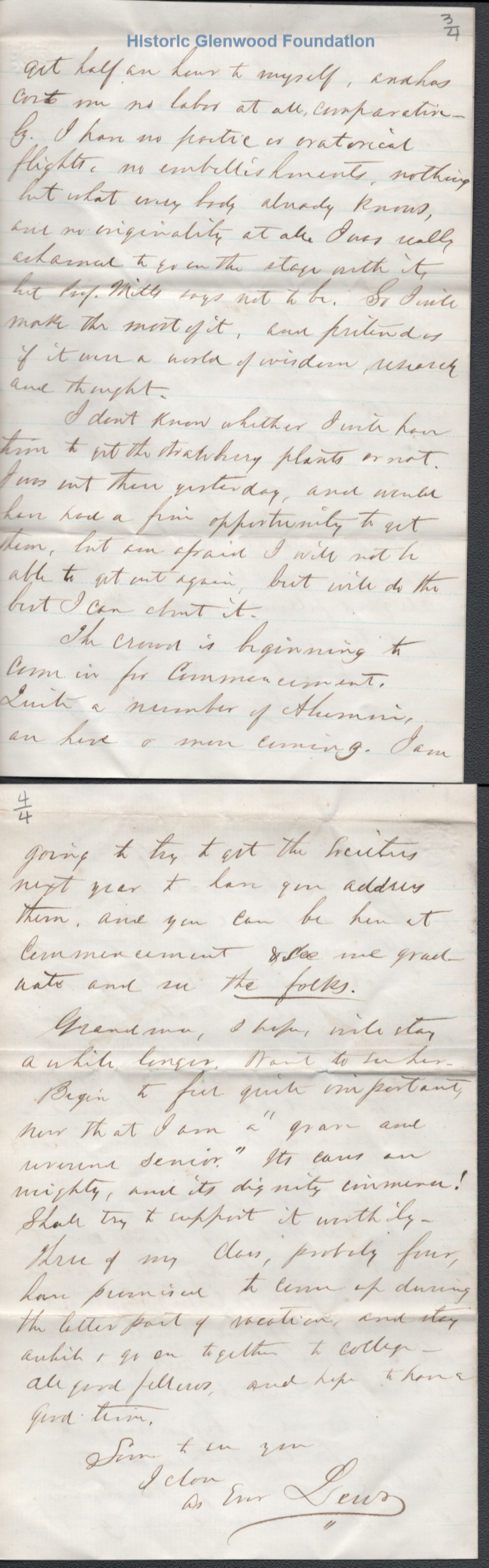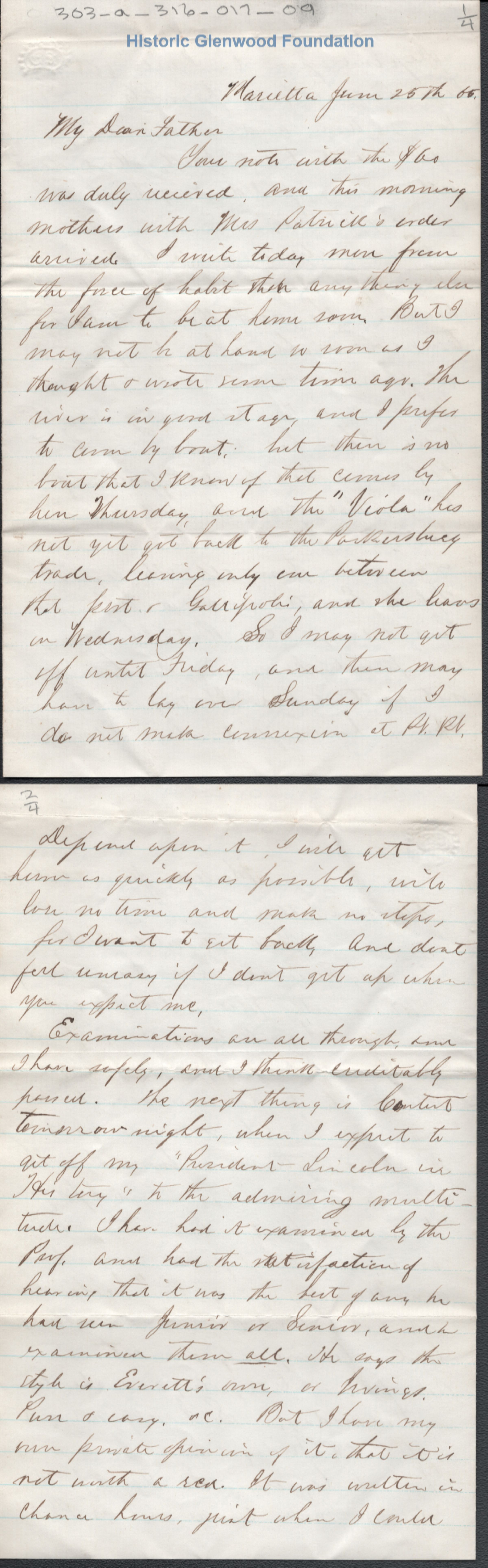 Letter to Judge George Summers from his son Lewis Summers. Written at Marietta, OH, presumably while a student at Marietta College.Creator