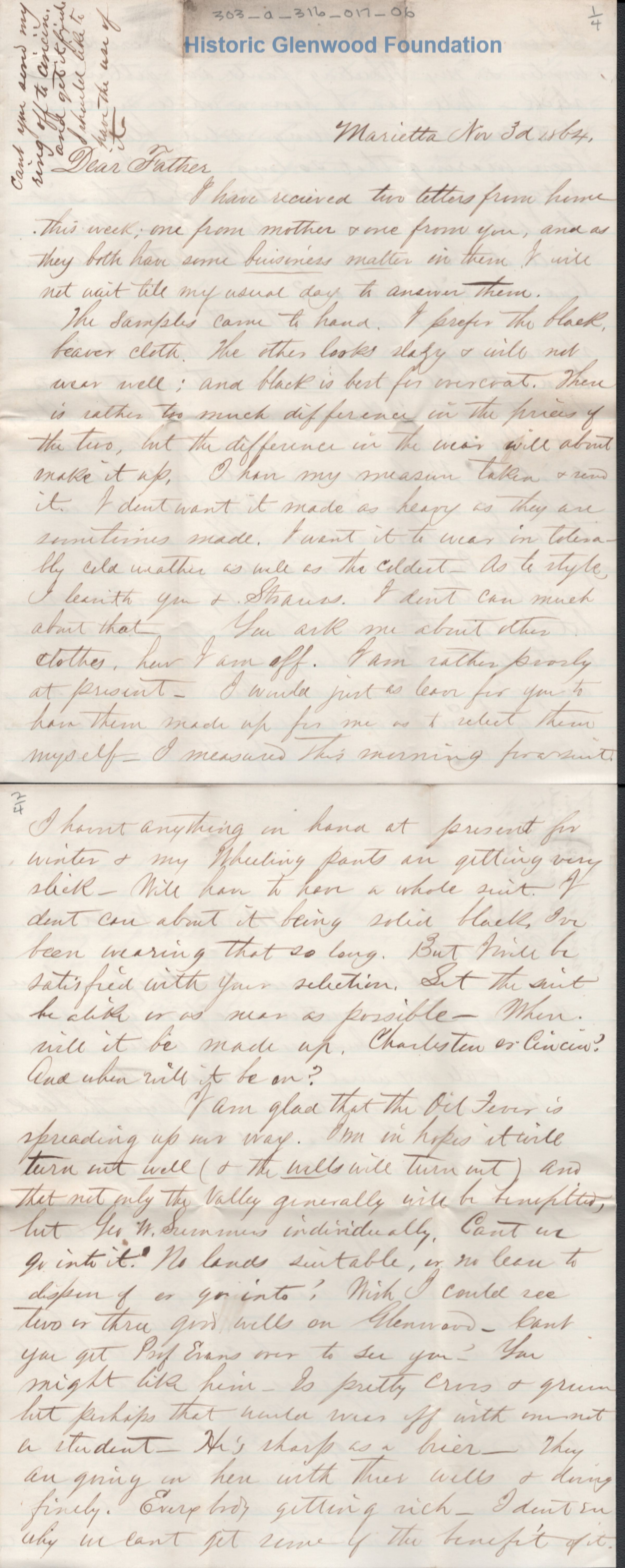 Letter to Judge George Summers from Lewis Summers at Marietta, OHCreator