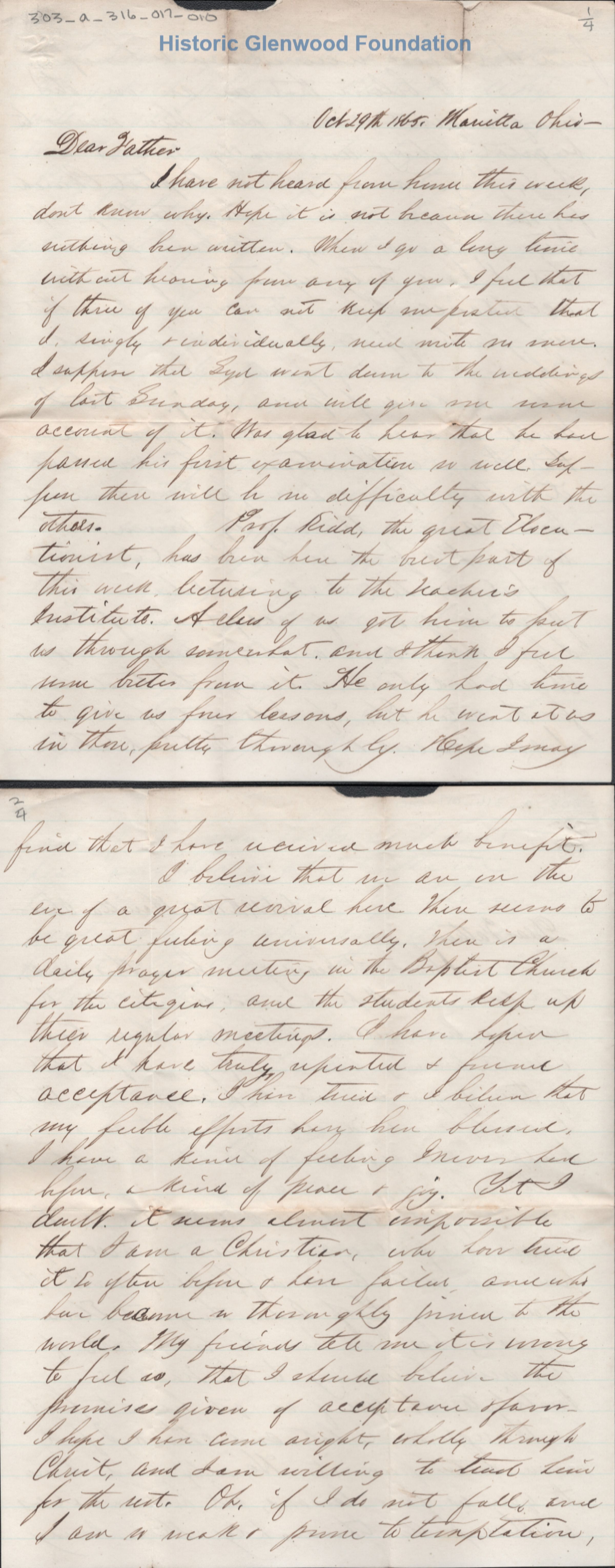 Letter to Judge George Summers from son Lewis Summers written at Marietta, OH, presumably while a student at Marietta CollegeCreator