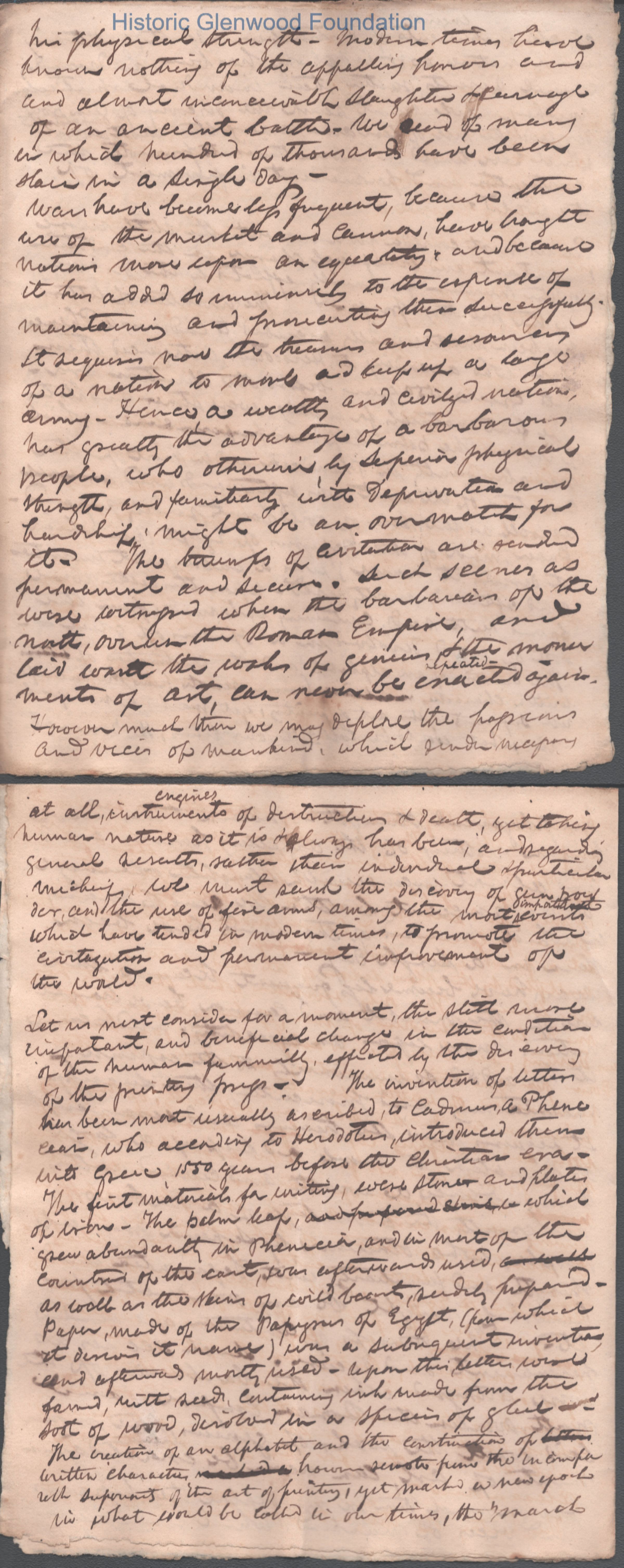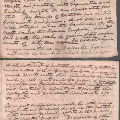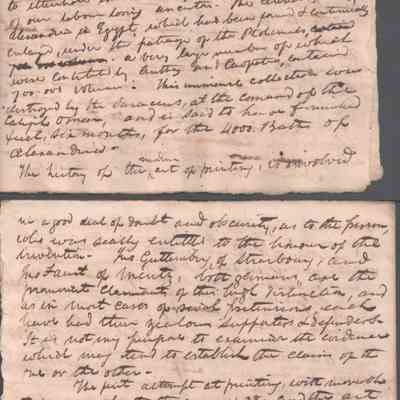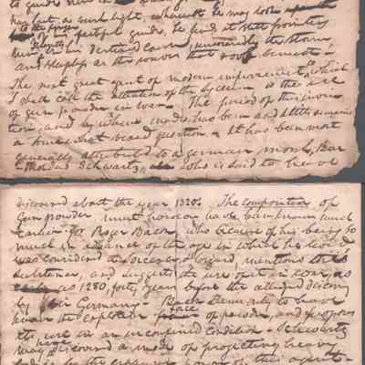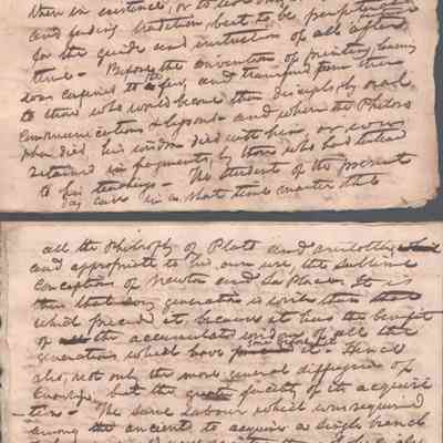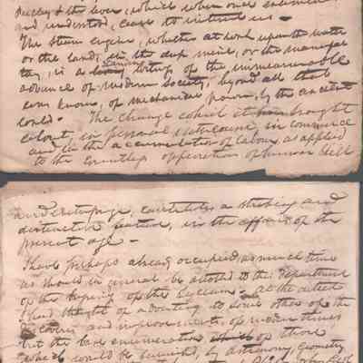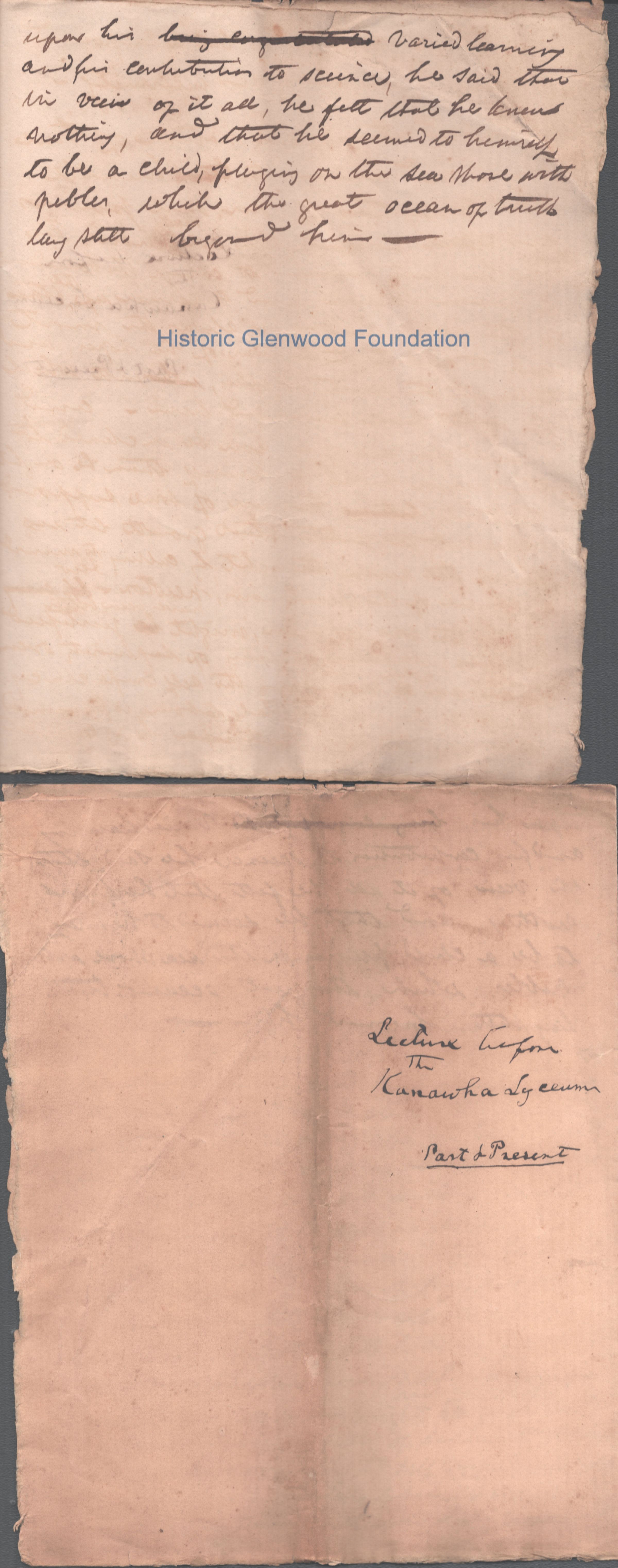 A lengthy manuscript filing detailing complex legal arguments regarding property rights, debt obligations, and inheritance shares among heirs. The document outlines specific land holdings, fiduciary responsibilities, and claims made by various parties regarding the estate’s assets. It reflects the intricate probate and real estate law of the era, focusing on reconciling competing financial claims. Noted on reverse of cover page that this was a presentation to the Kanawha Lyceum.Date(s) of Creation