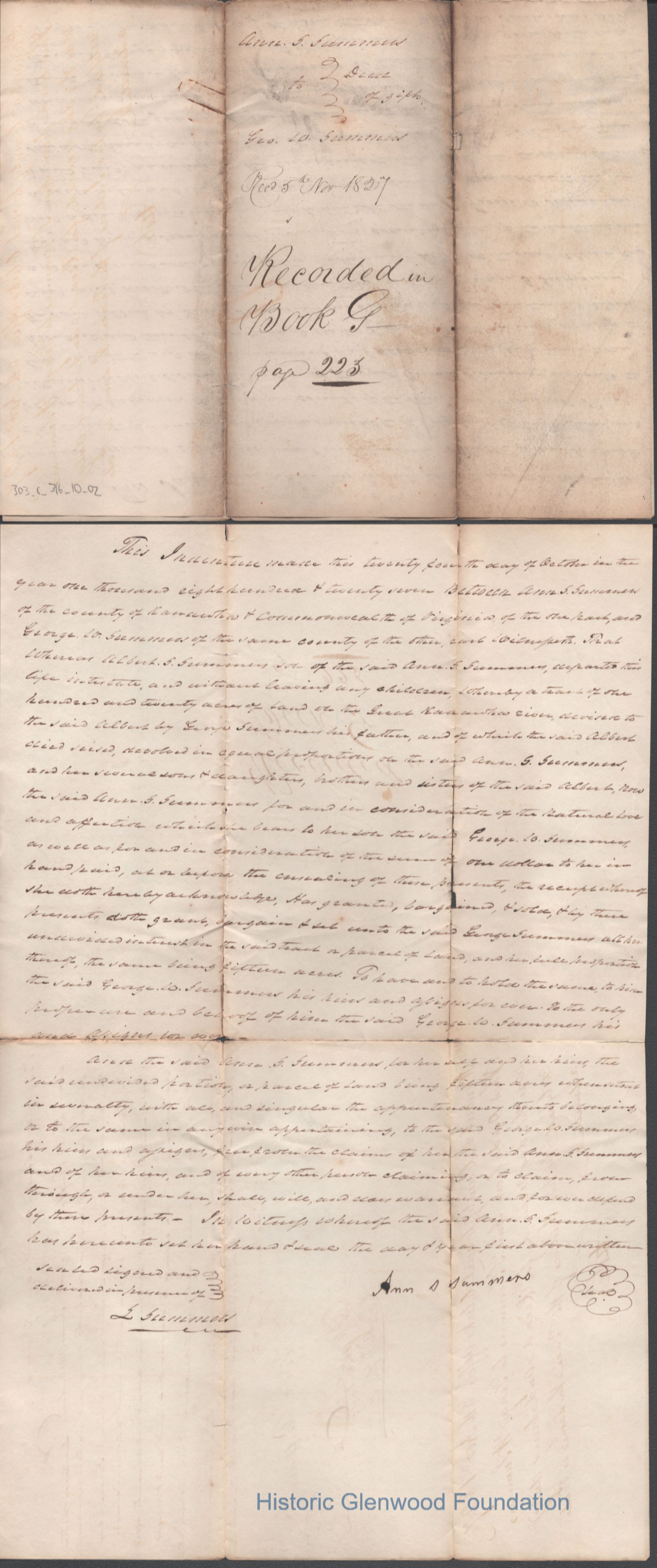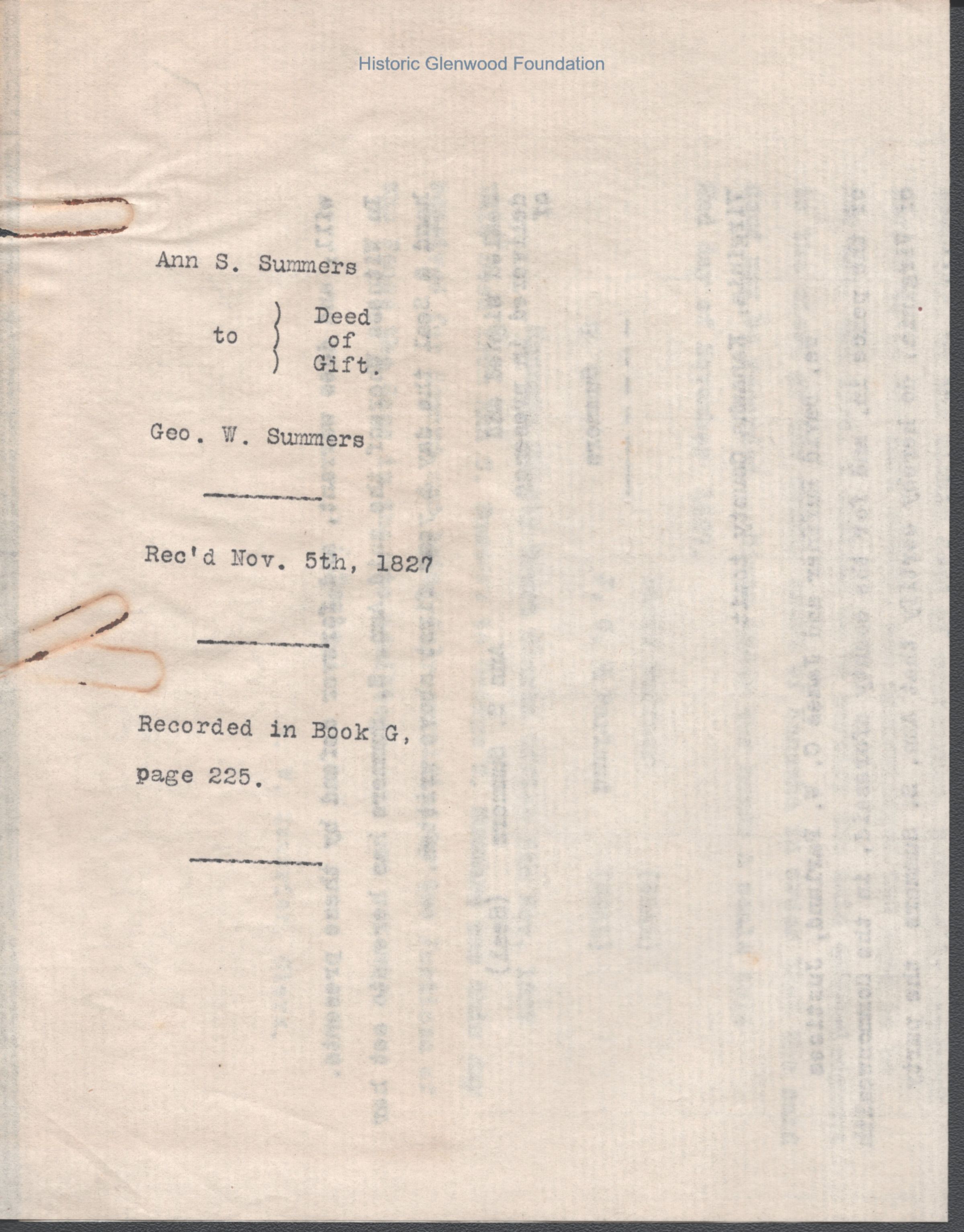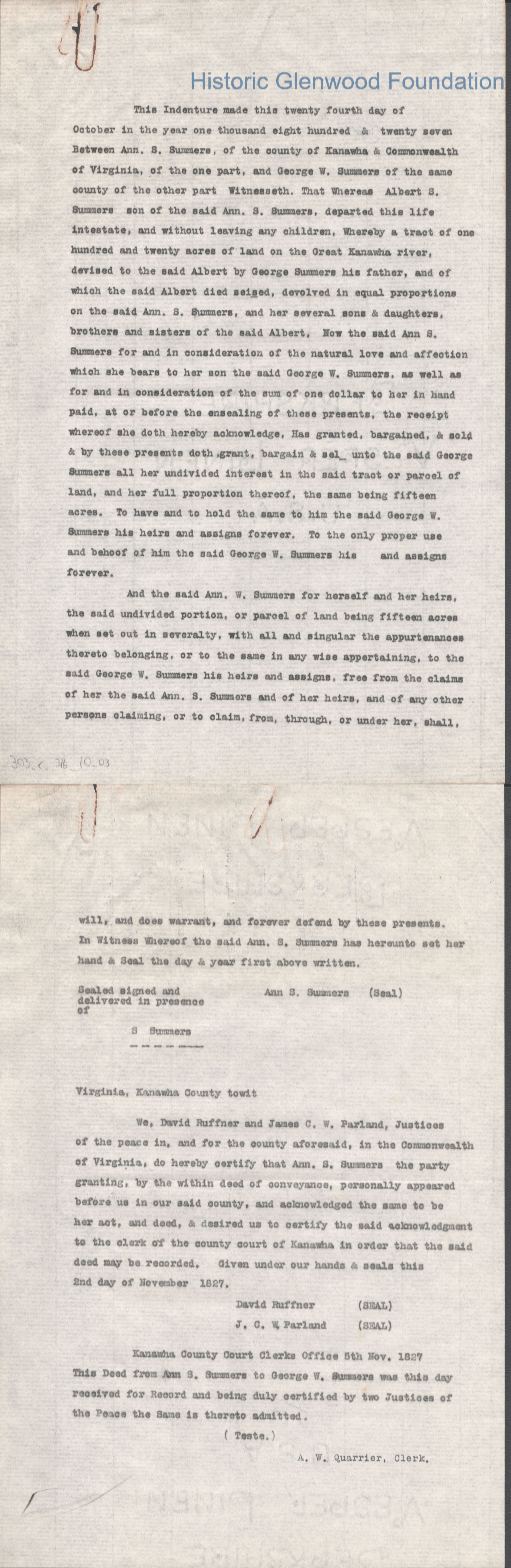 Deed to show the legal transfer of property from Ann Summers to her son, Judge George Summers.