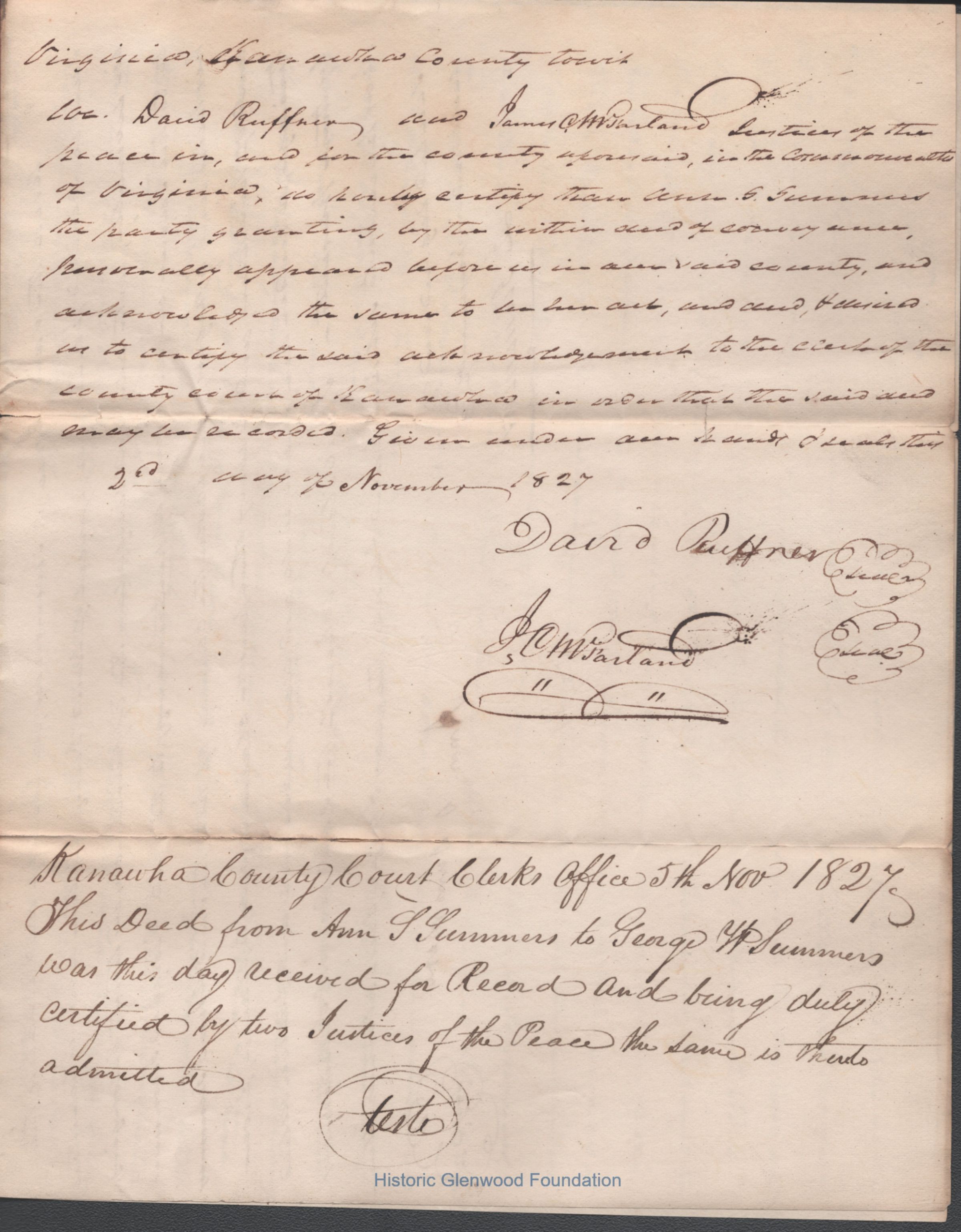 Judge George Summers: Property of Transfer from Ann Summers, 1827